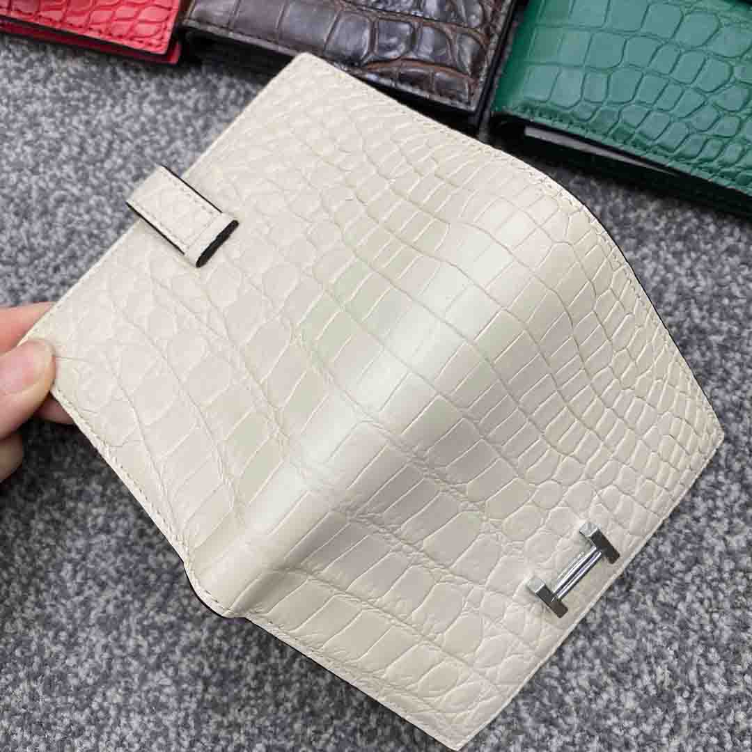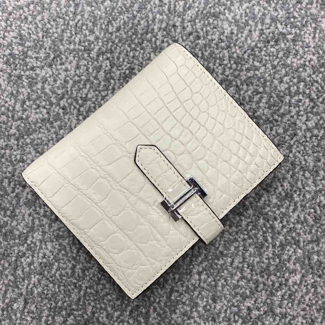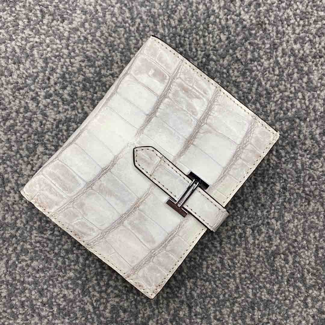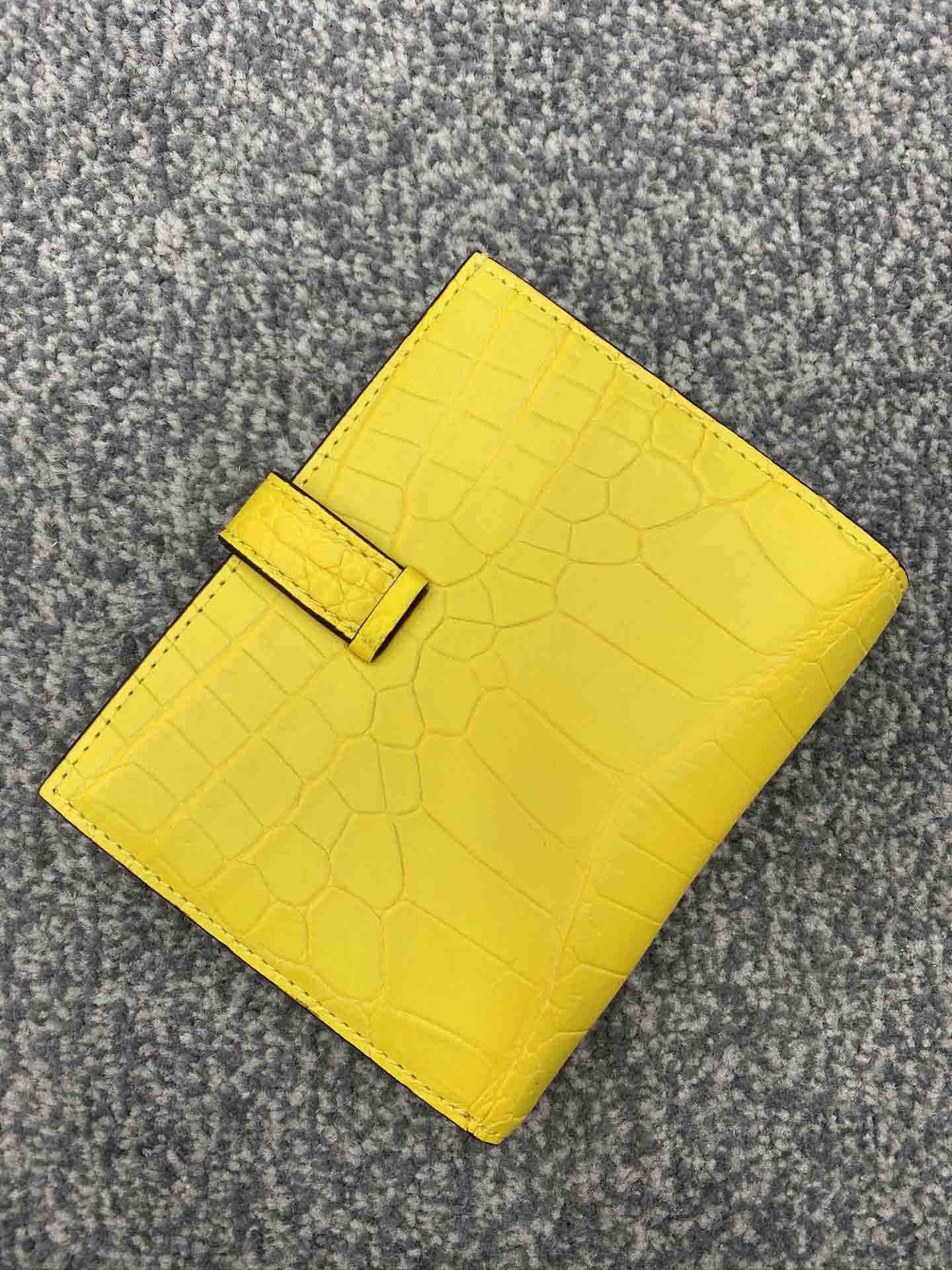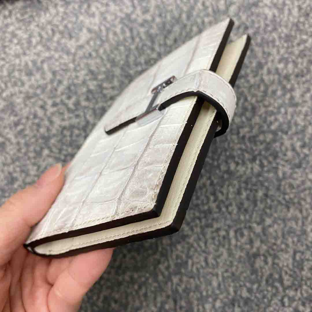 钱包系列沿用其造型,展露精巧的H形锁扣:中央横杆可向上抬起,松开翻盖,从而打开钱包。