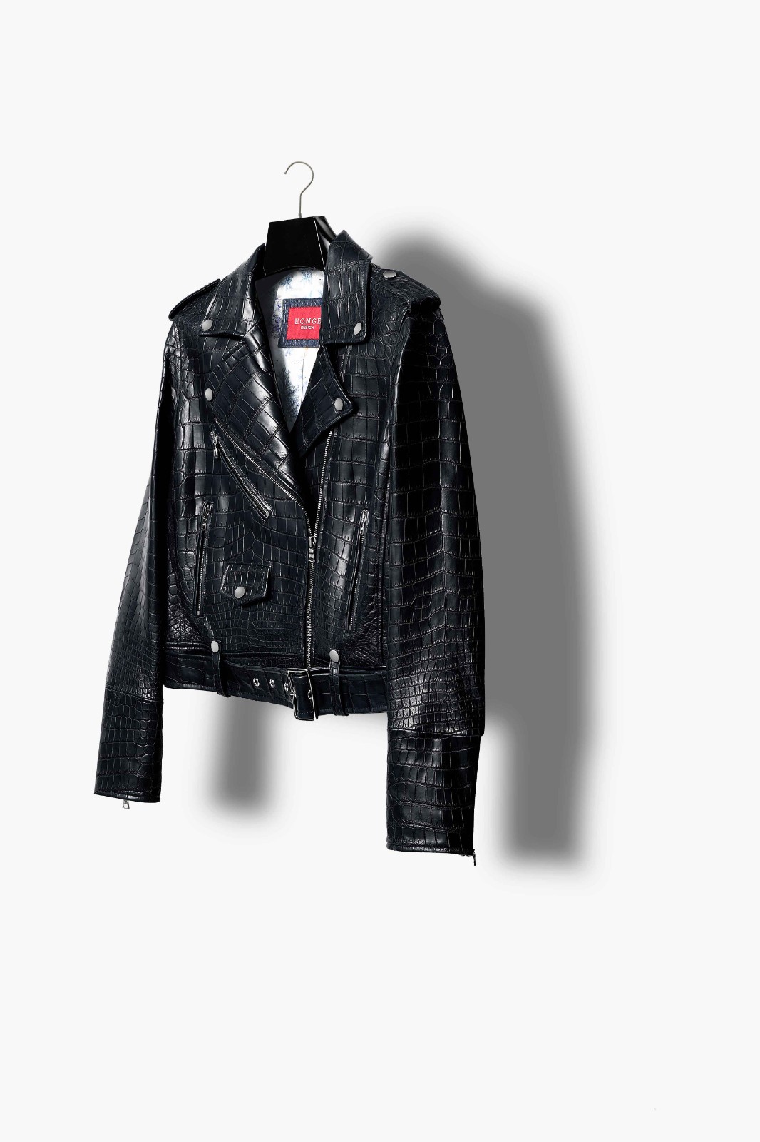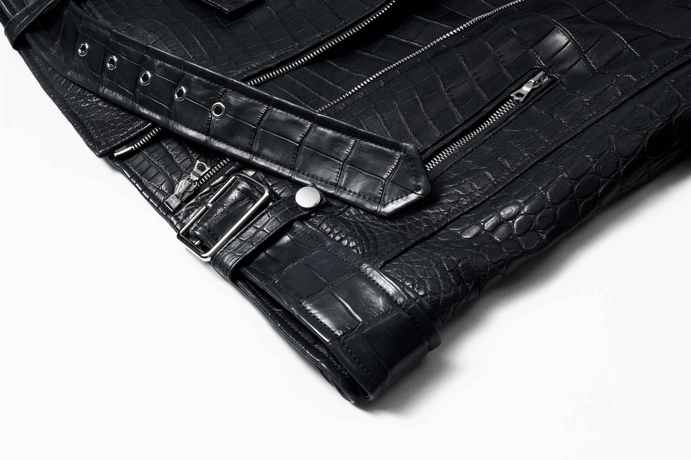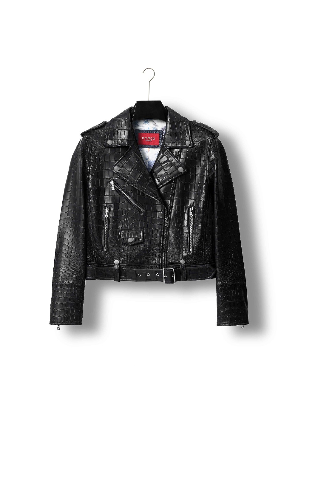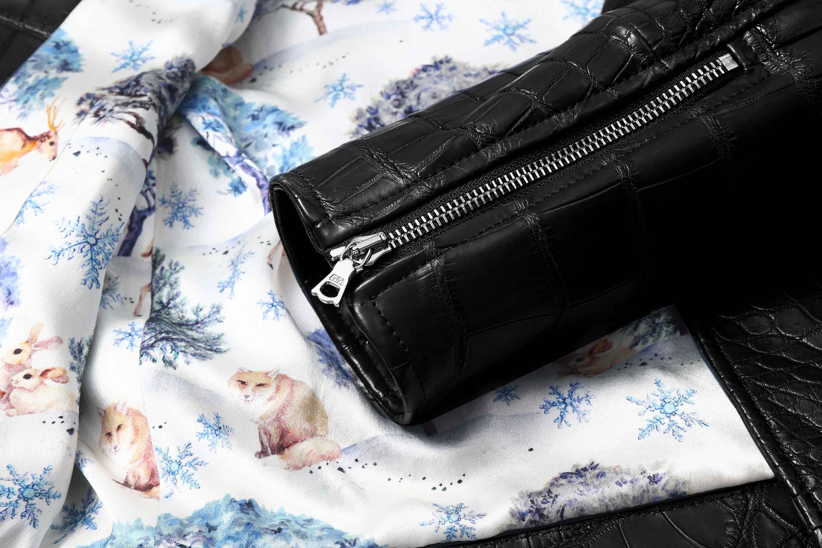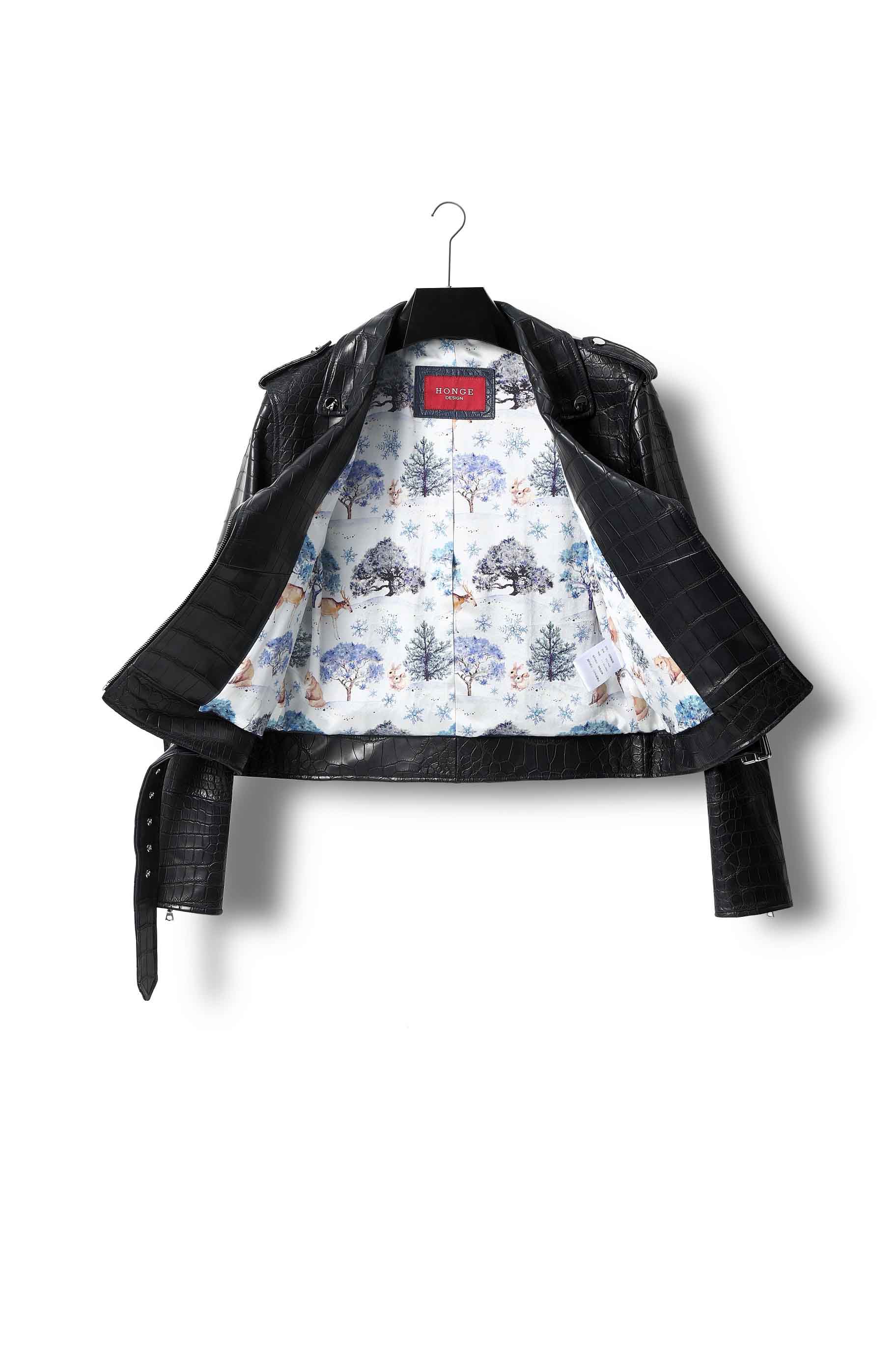 尼罗鳄水染女款机车服黑色夹克,100/100桑蚕丝内里,现货S,M,L,XL齐全码