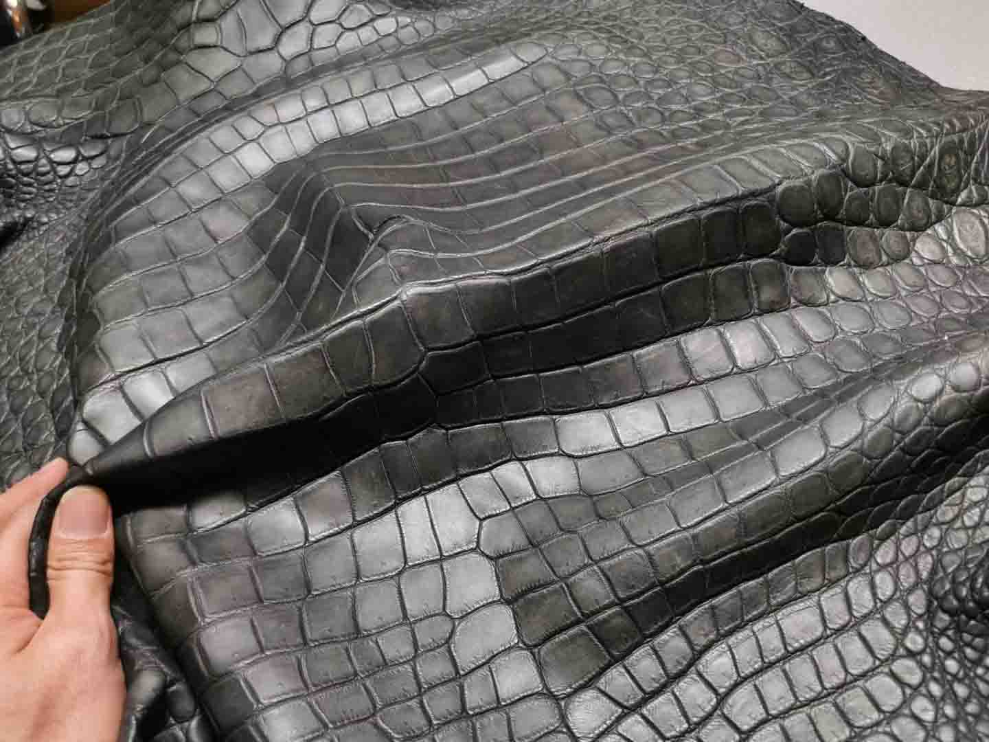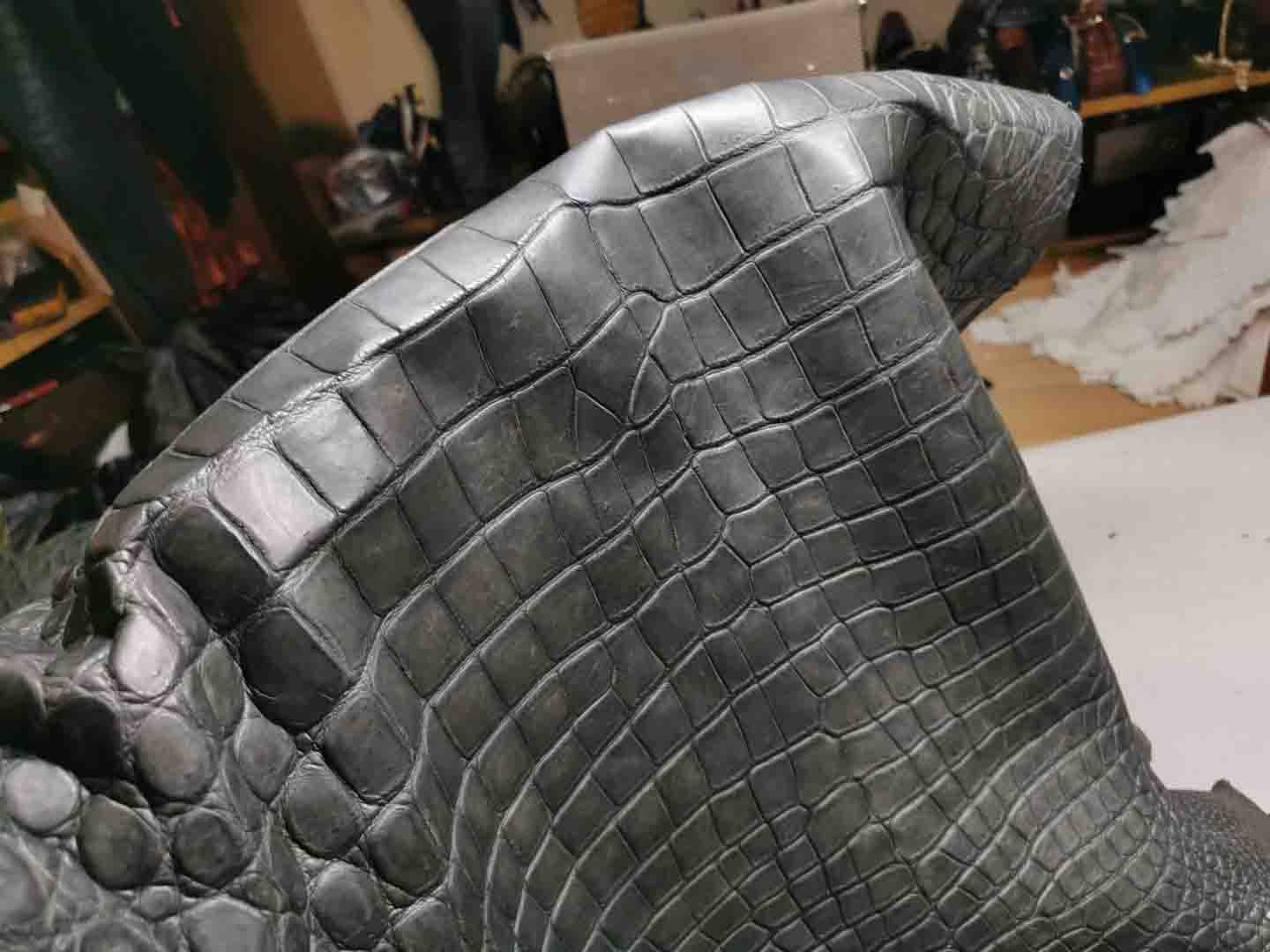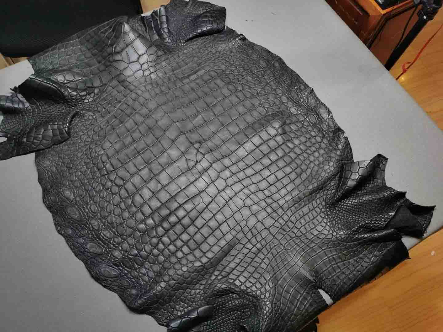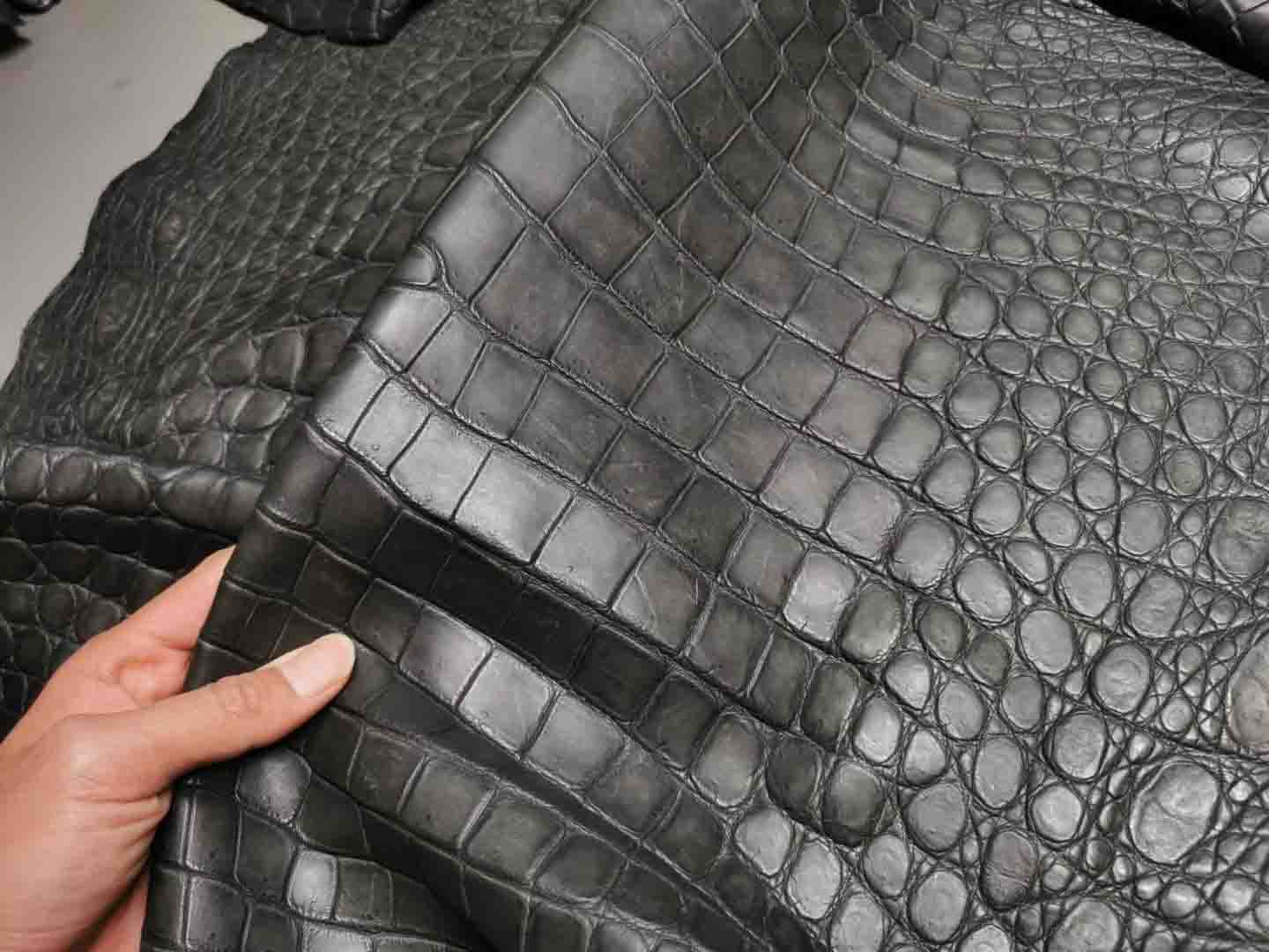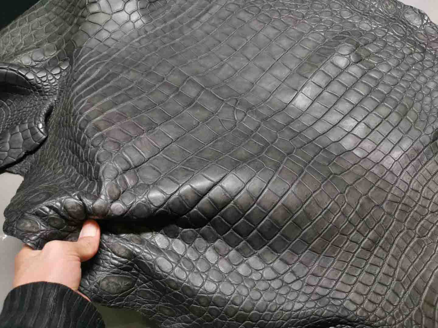 鳄鱼皮超大服装革50到60厘米,客定深灰色皮料,黑中泛灰的效果,很独特。定制联系微信 95506803
