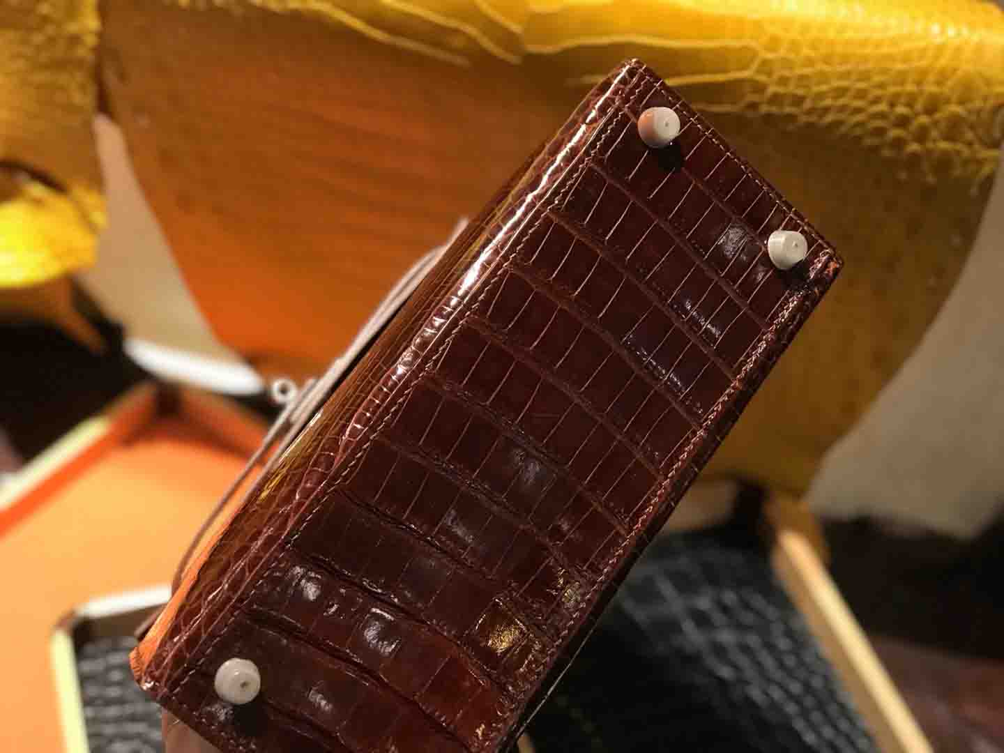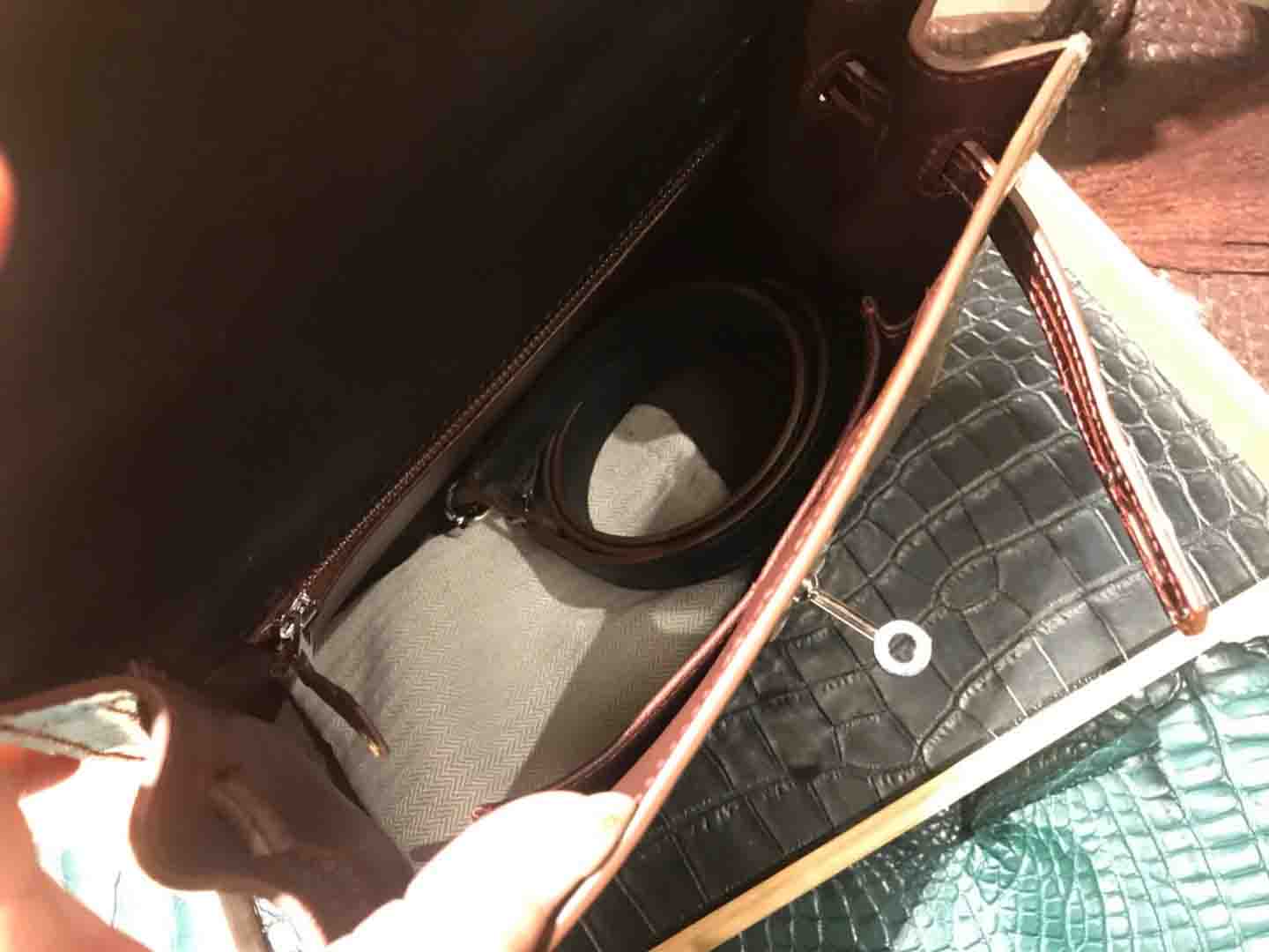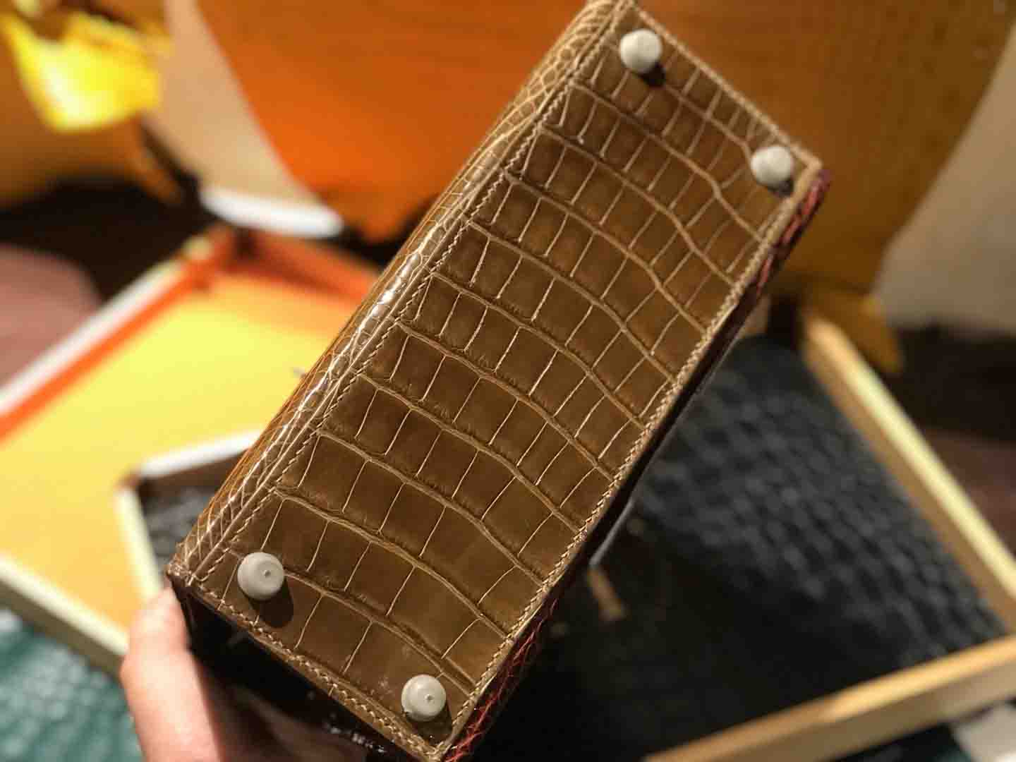 这是全手工高端HCP美洲鳄亮面美洲鳄鳄鱼皮迷你拼色 Kelly25代。
