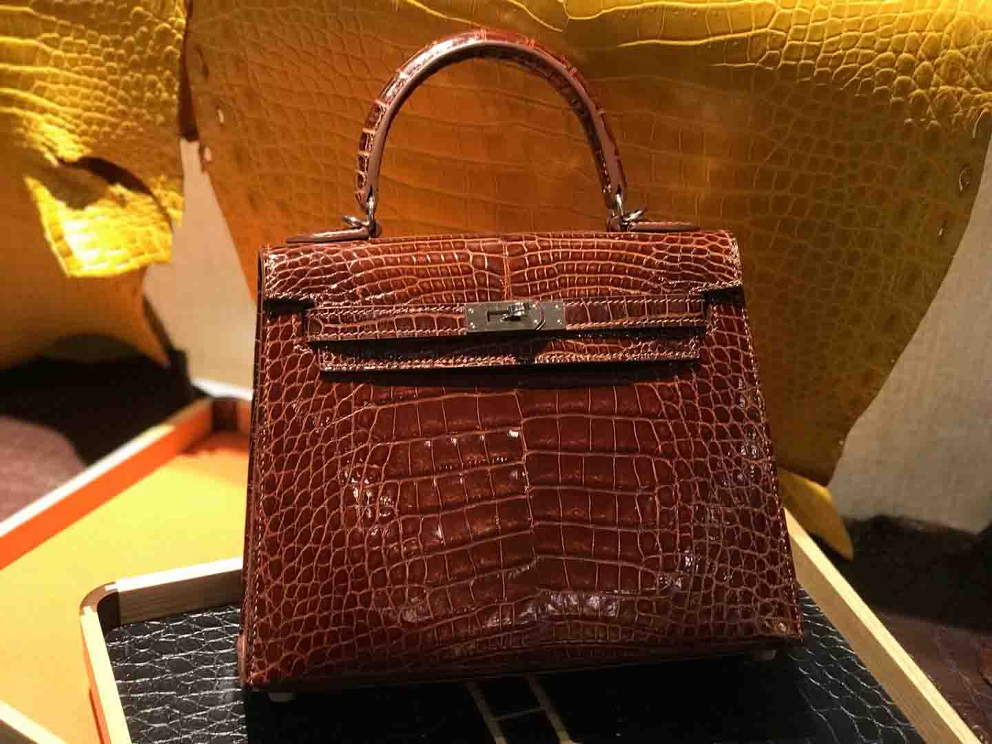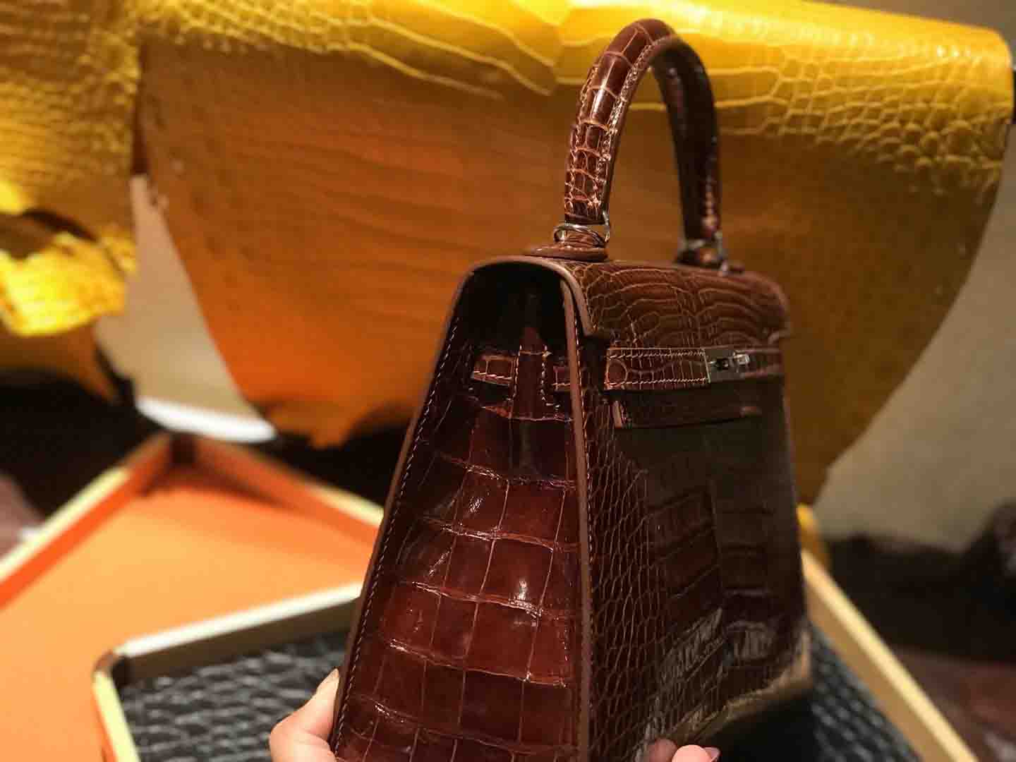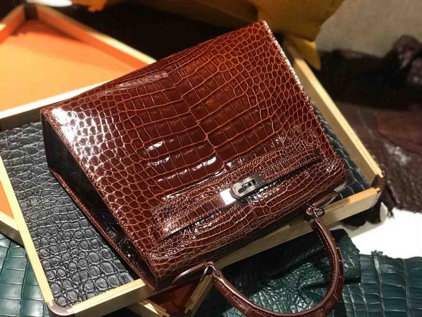 这是全手工高端HCP美洲鳄亮面美洲鳄鳄鱼皮迷你拼色 Kelly25代。