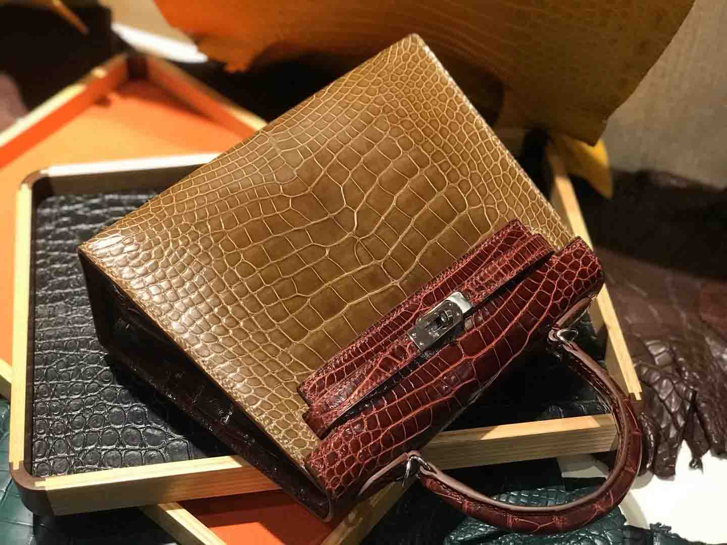 亮面美洲鳄 拼色 Kelly25,凯莉包25寸价格多少钱 凯丽25国内专柜价格 h款2021春夏新色。美洲鳄鱼皮女士手提包定制联系 95506803