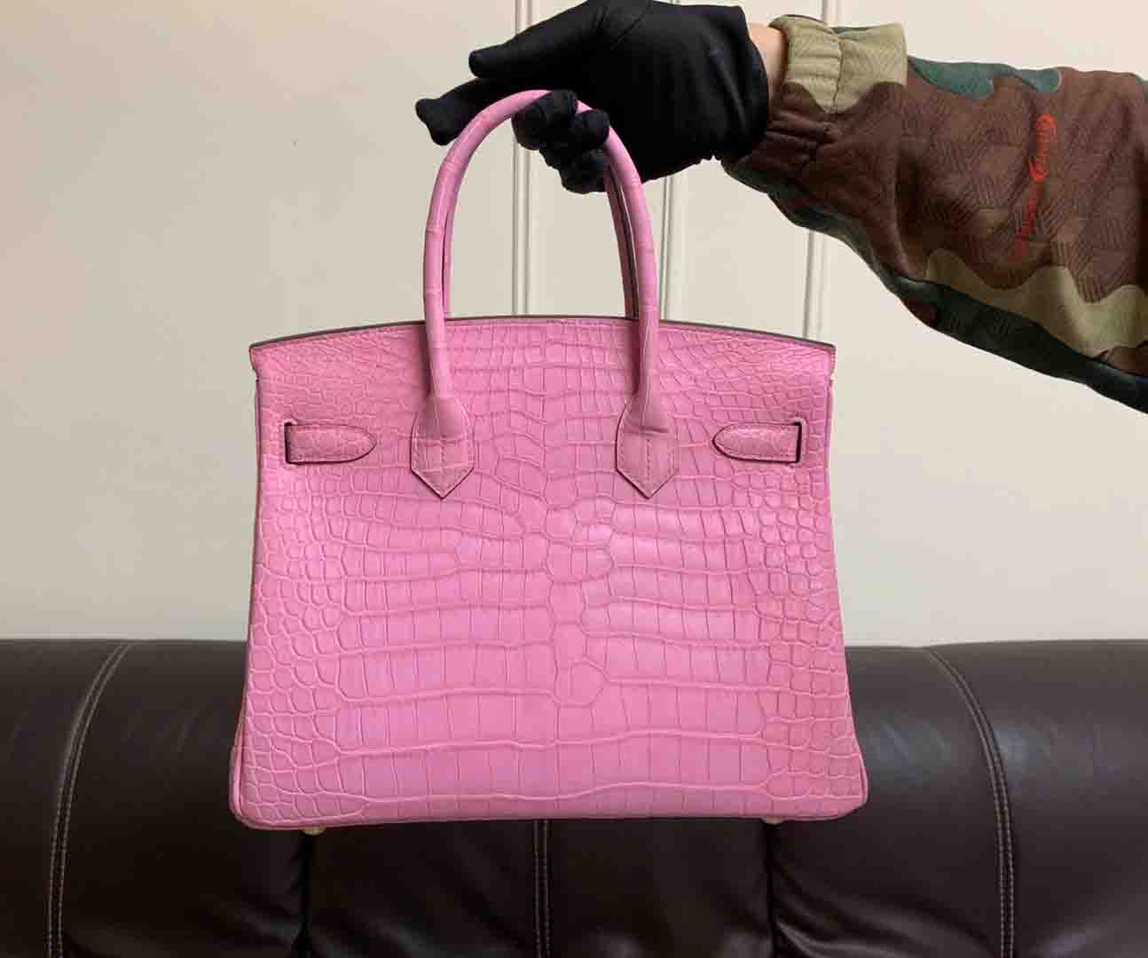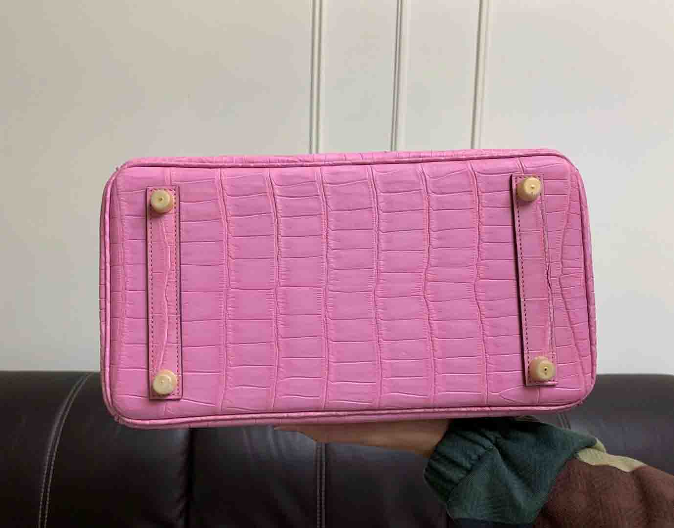 新出铂金30,哑光湾鳄倒V,三张皮制作,半手缝蜡线定制鳄鱼女包微信联系 95506803