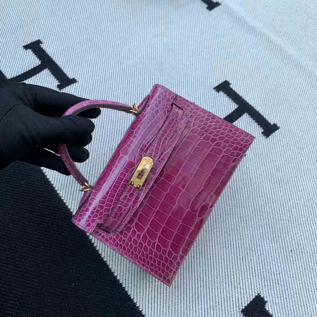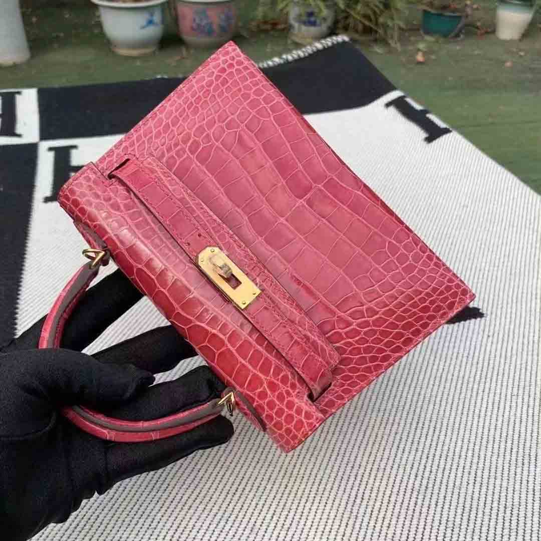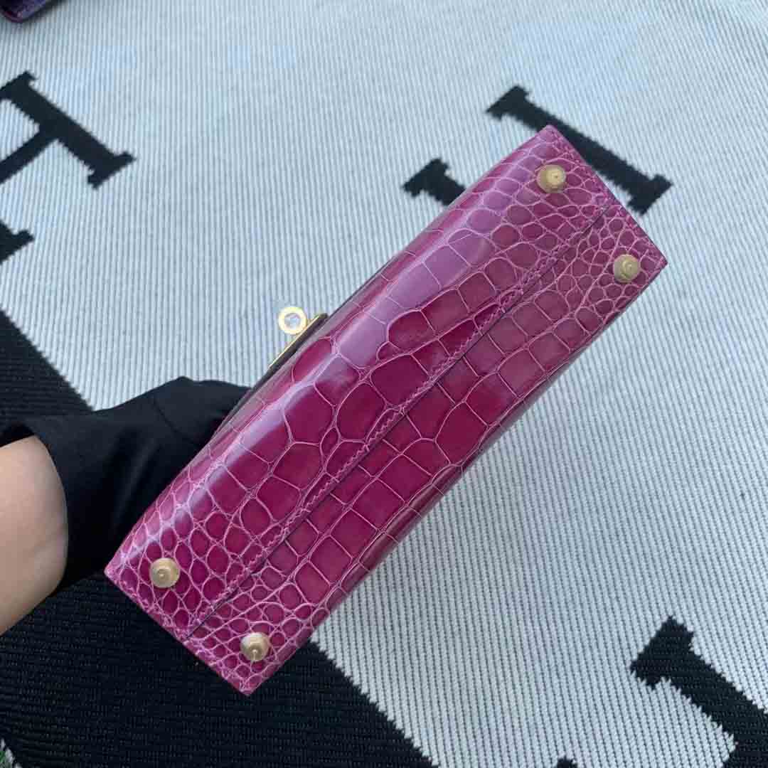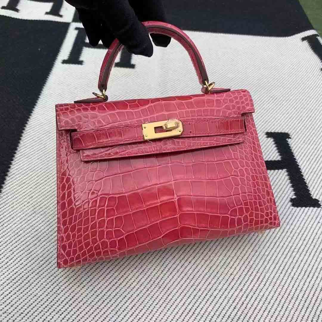 Mini 2代 19cm进口亮面美洲鳄鱼 G5玫瑰木粉纯手缝 一级皮面 顶级品质 现货金扣 ,水墨蓝现货银扣实物拍摄