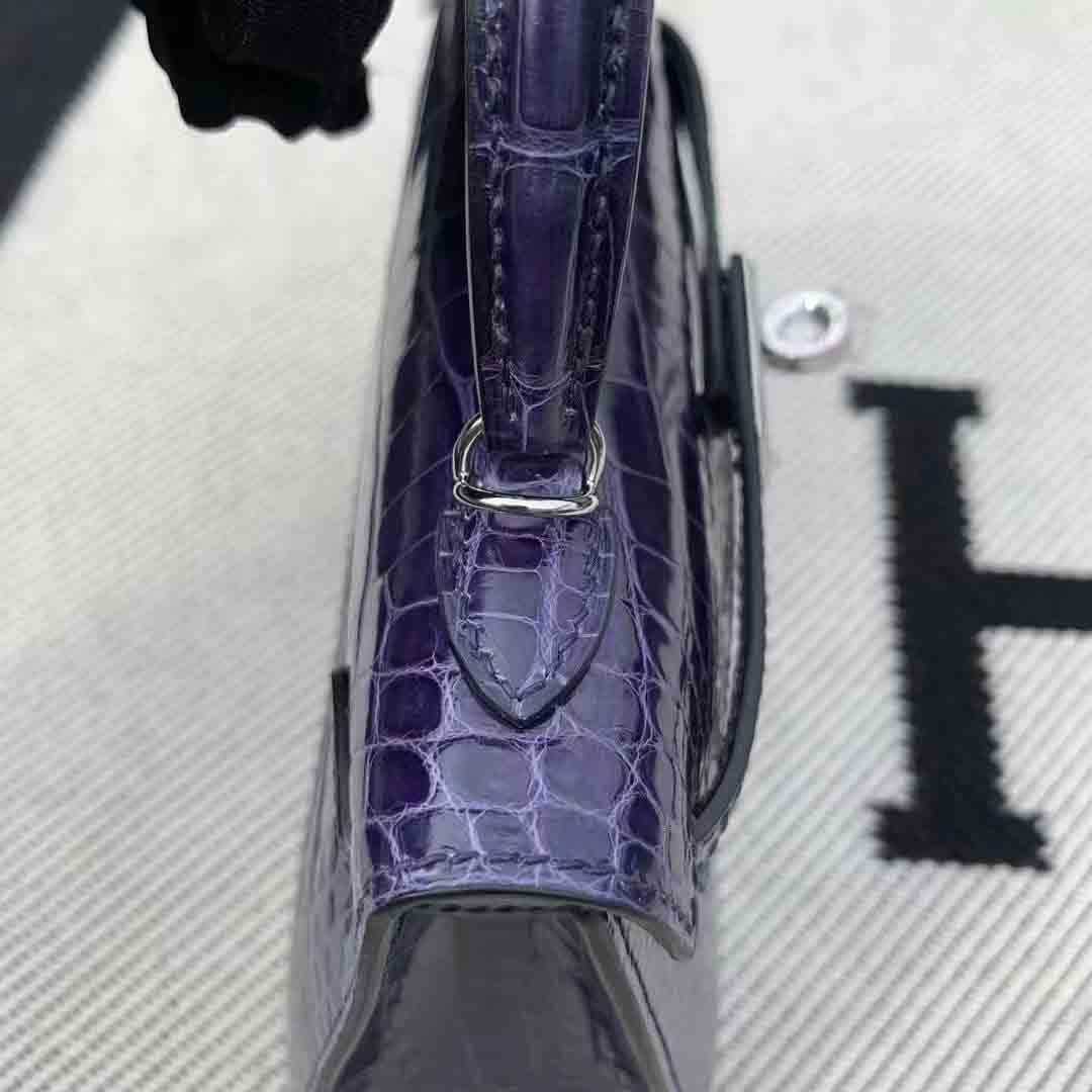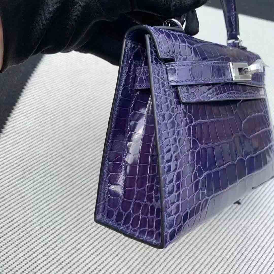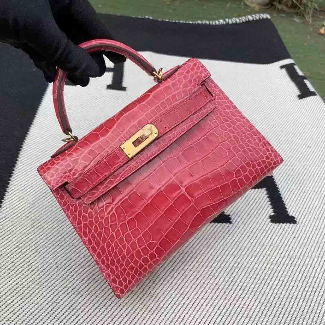 Mini 2代 19cm进口亮面美洲鳄鱼 G5玫瑰木粉纯手缝 一级皮面 顶级品质 现货金扣 ,水墨蓝现货银扣实物拍摄