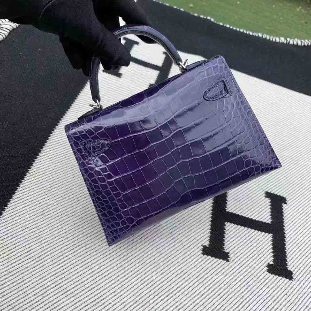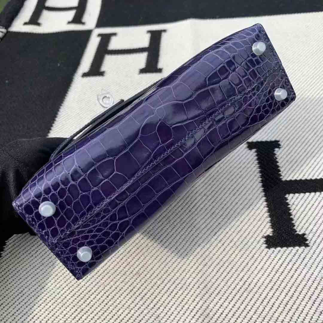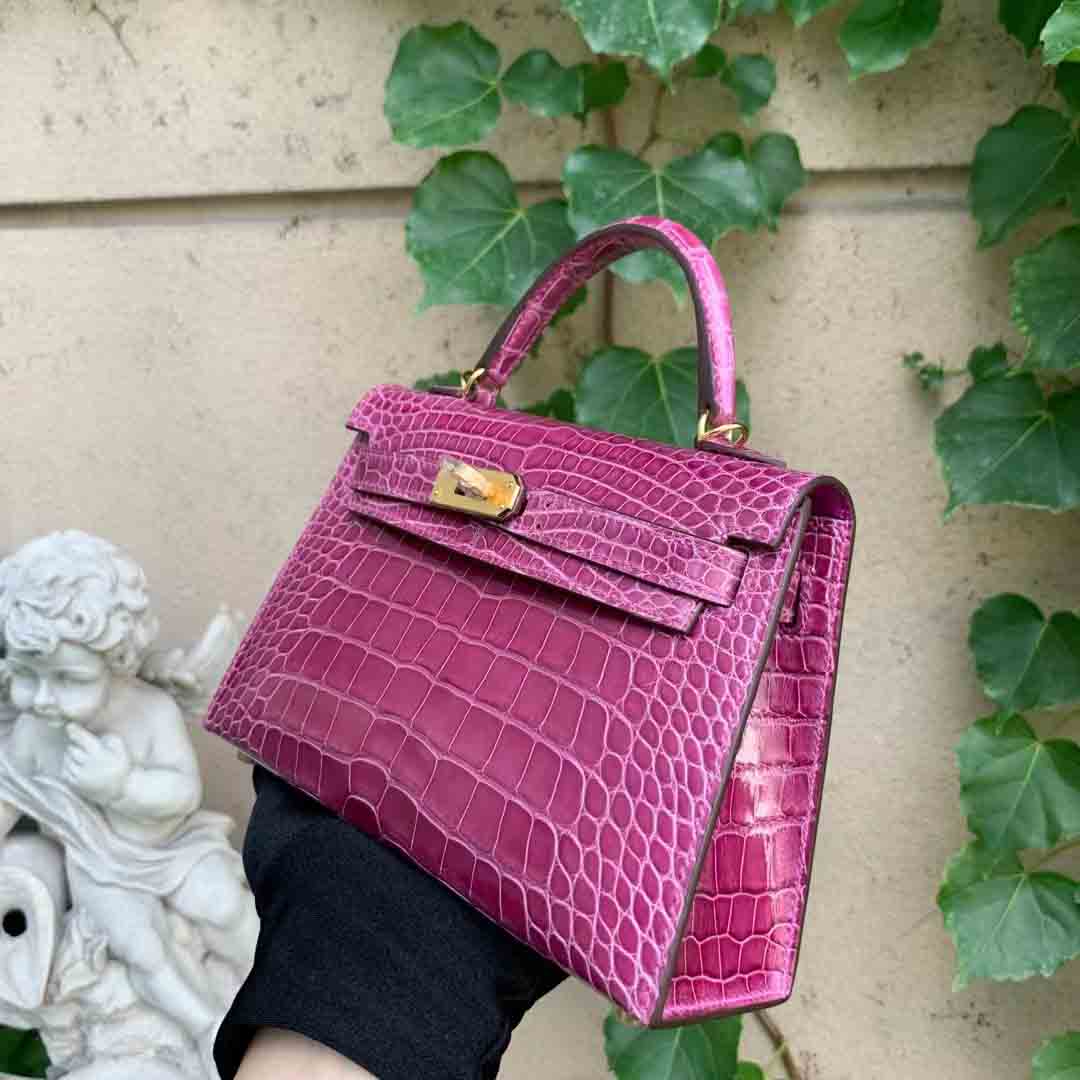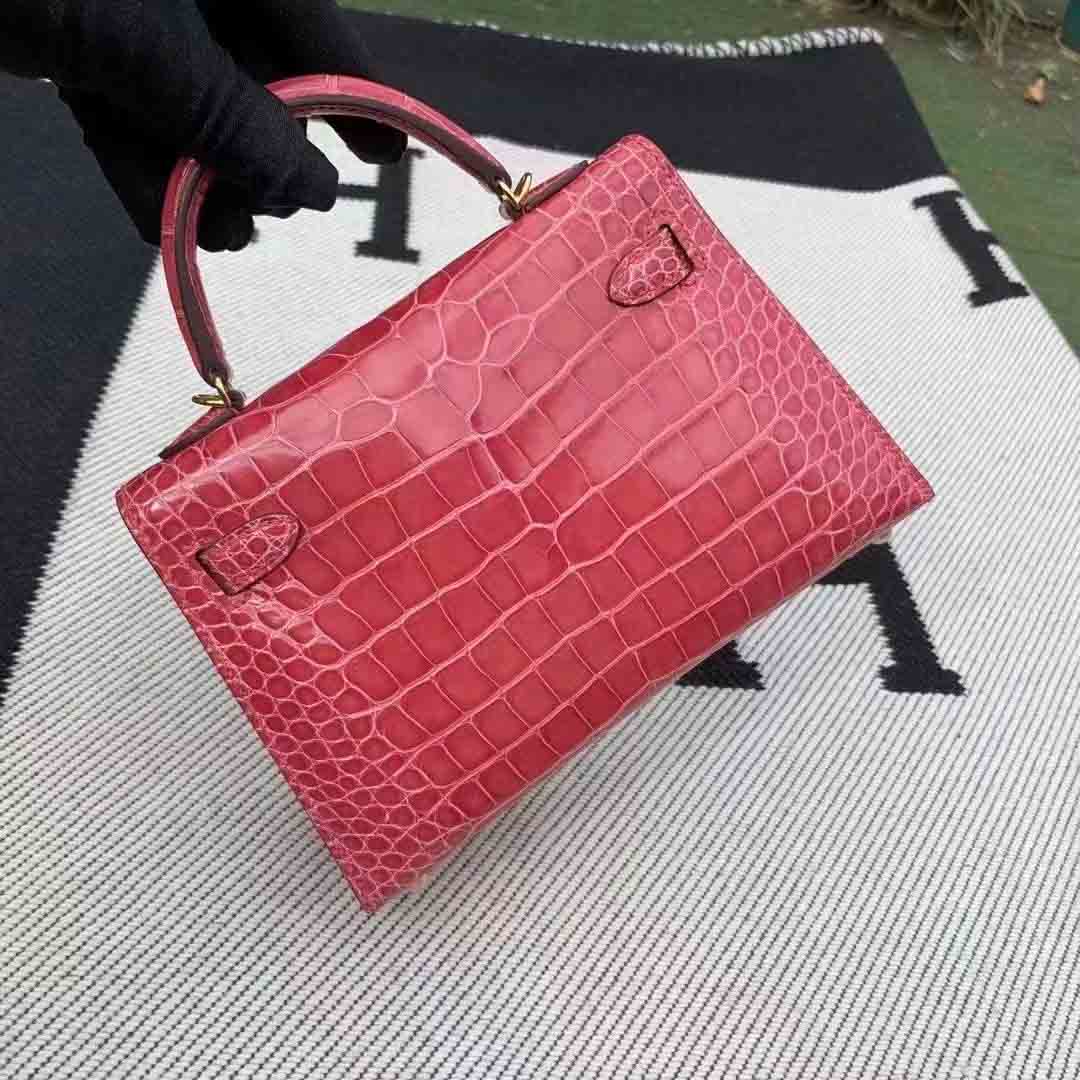 Mini 2代 19cm进口亮面美洲鳄鱼 G5玫瑰木粉纯手缝 一级皮面 顶级品质 现货金扣 ,水墨蓝现货银扣实物拍摄