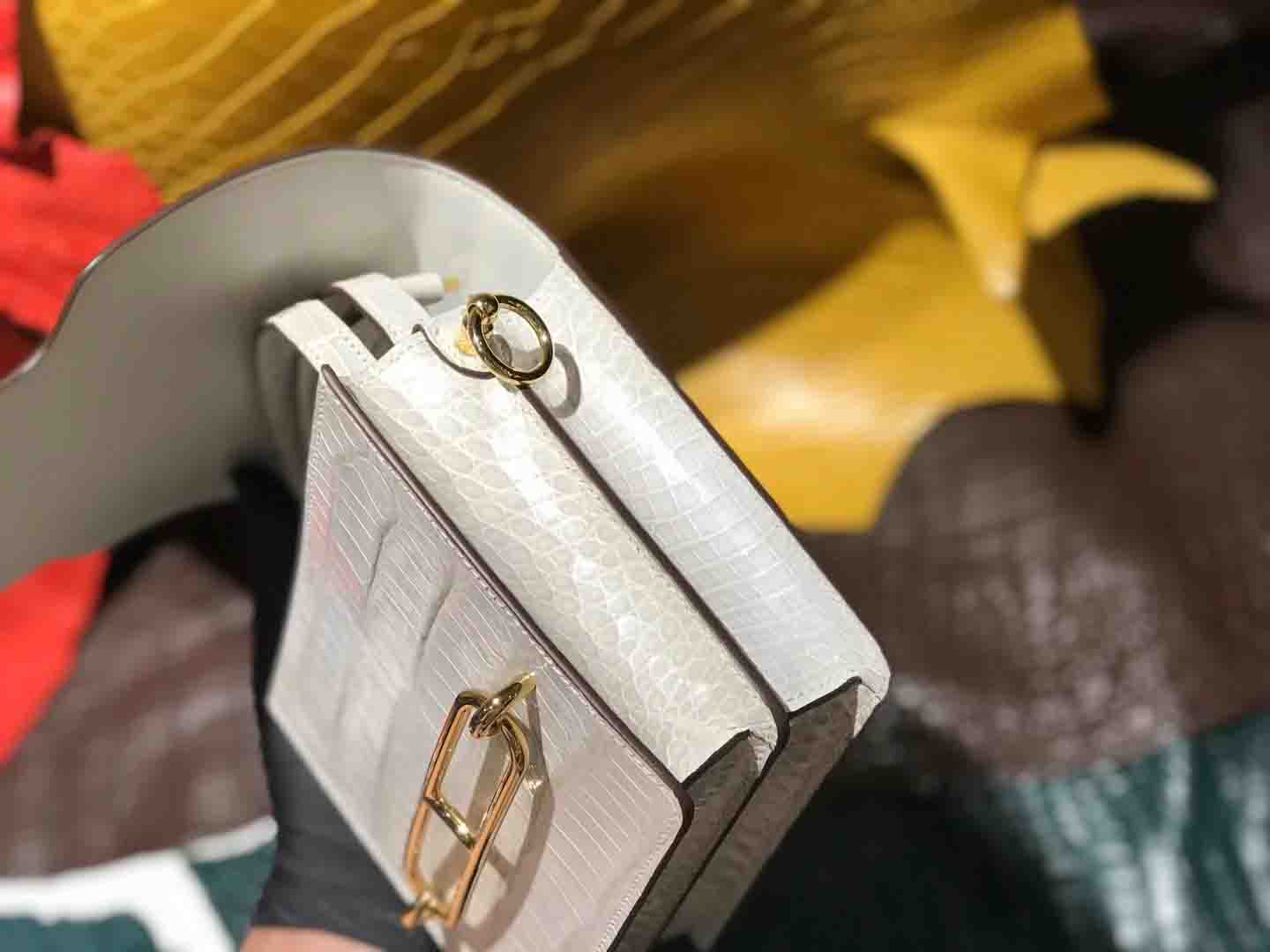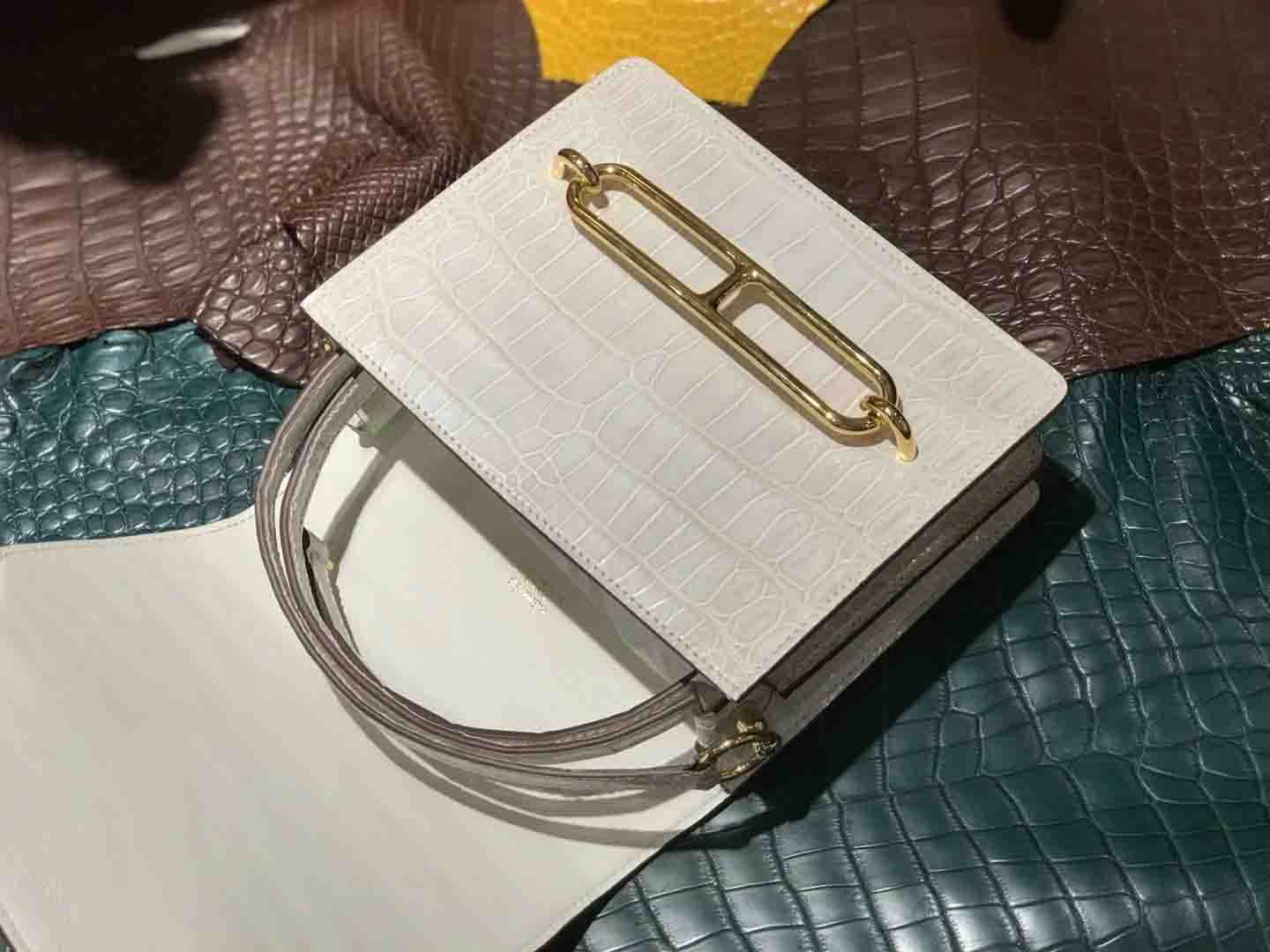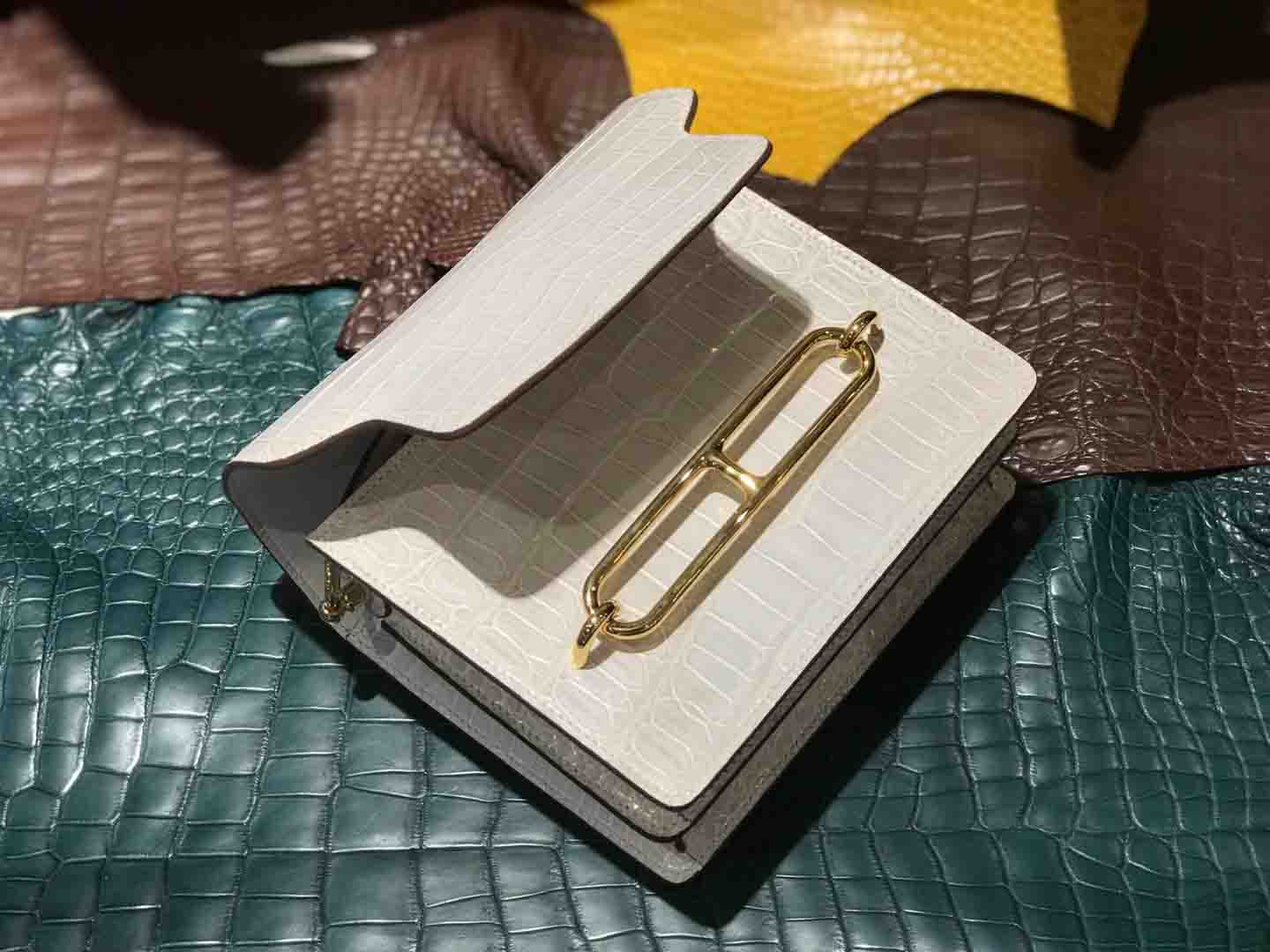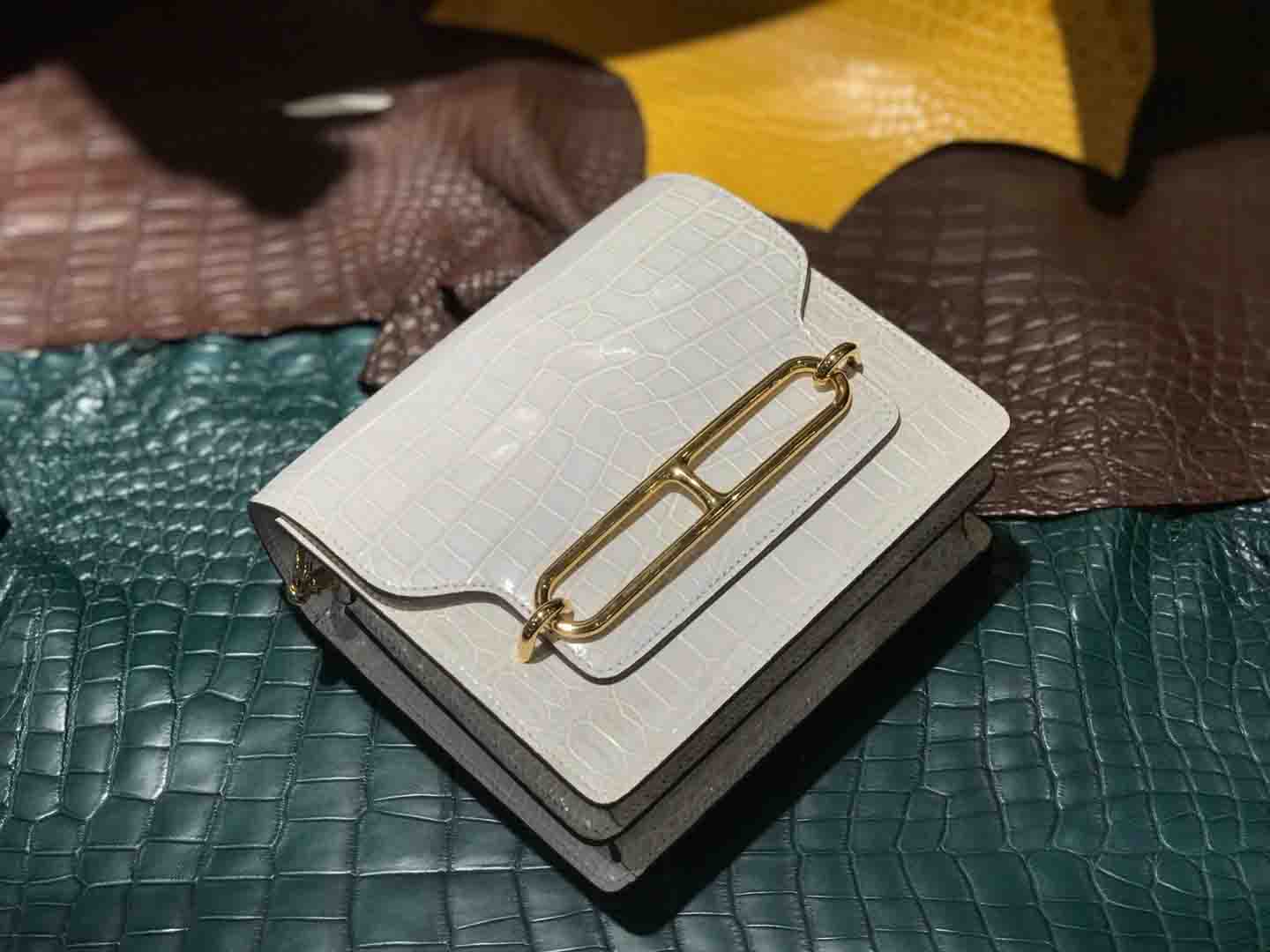roulis mini的尺寸和constance mini差不多,有些人会觉得constance的大H太显眼,但是roulis可以说是不带H明显标志。而且相比constance的H扣子,roulis会好用许多,包包内部也做了更多的隔层。肩带的长度也很合理,斜背单肩背都合适。