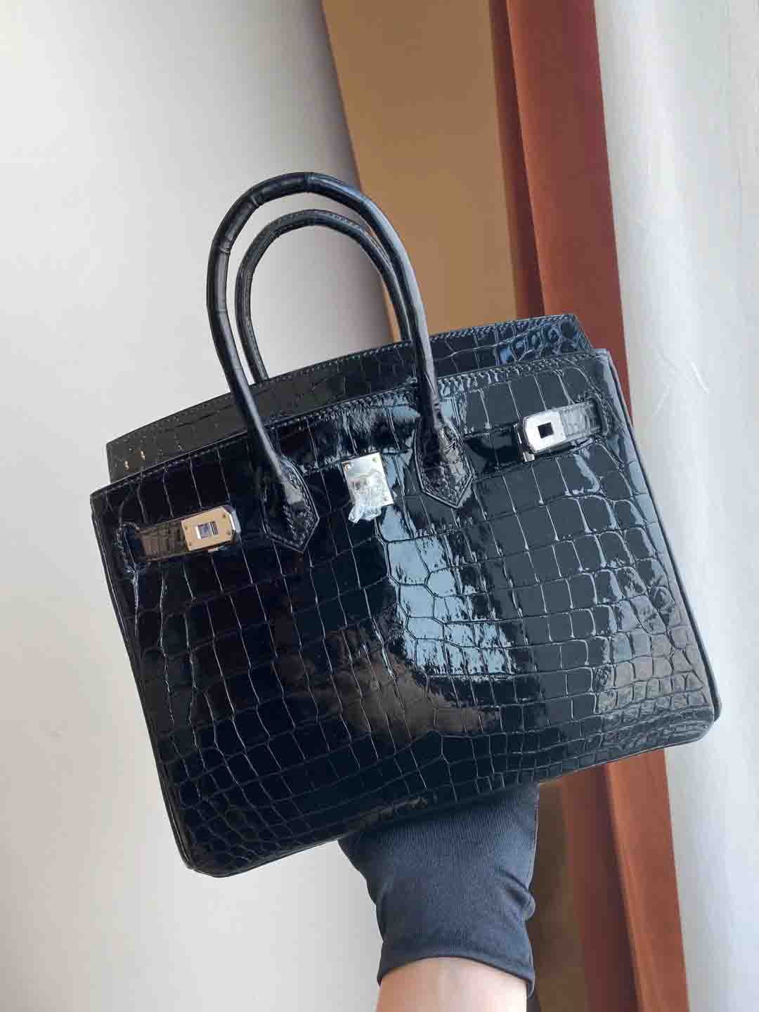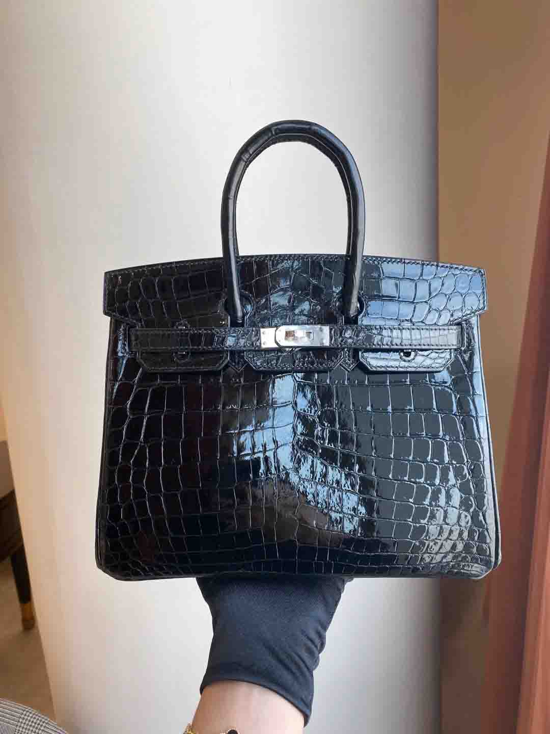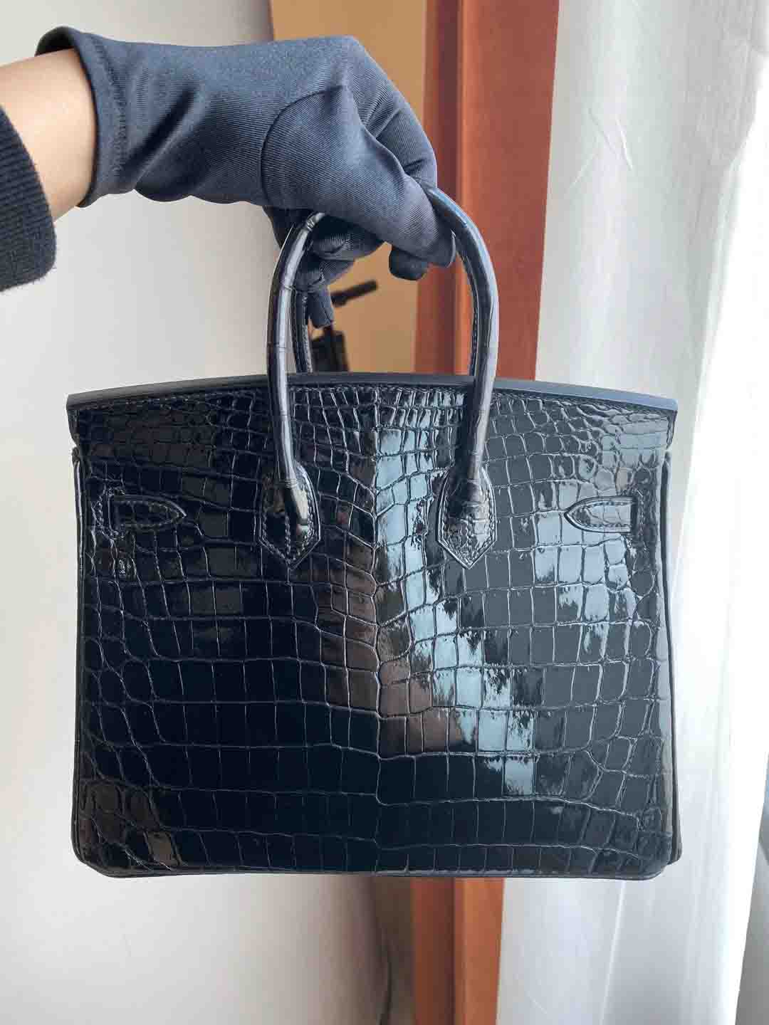 Bk25 亮面尼罗鳄女包,手提包 两点黑色 银扣 纯手工蜡线 现货一只 付款即发