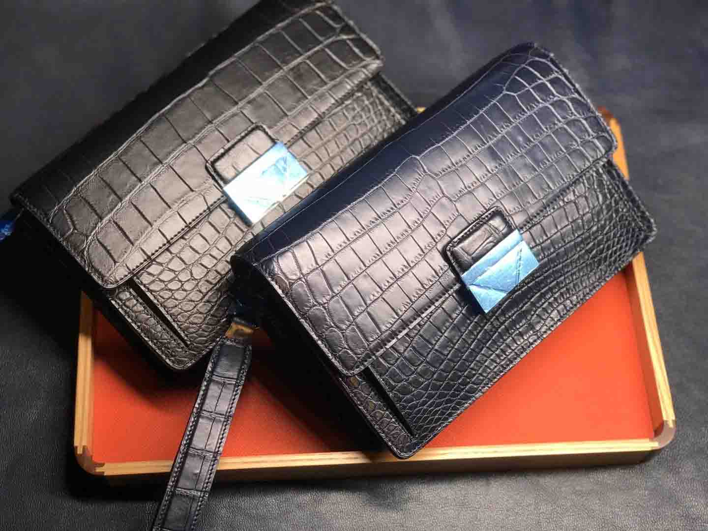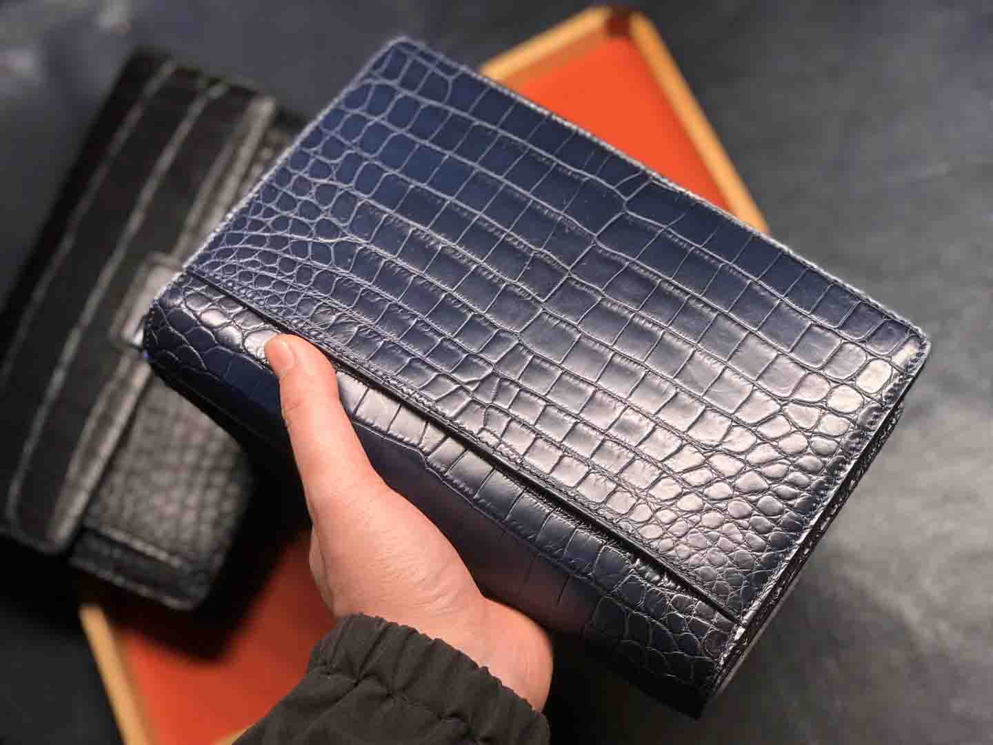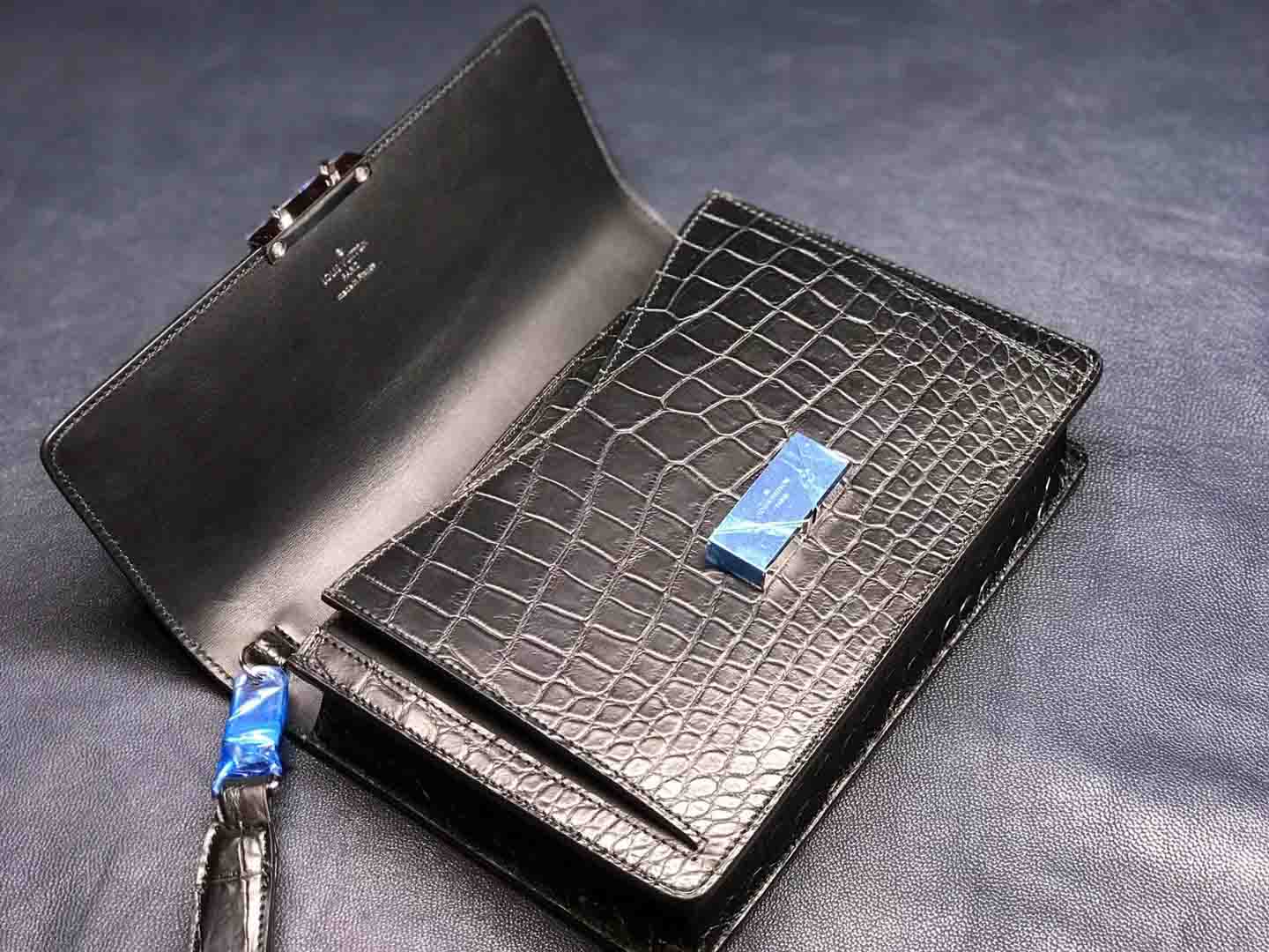 正品对版 哑光尼罗鳄lv夹包#深蓝 #黑色规格:24.5-16.5-5