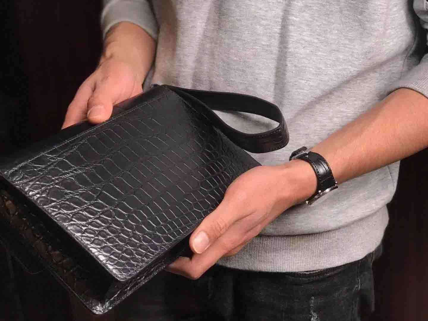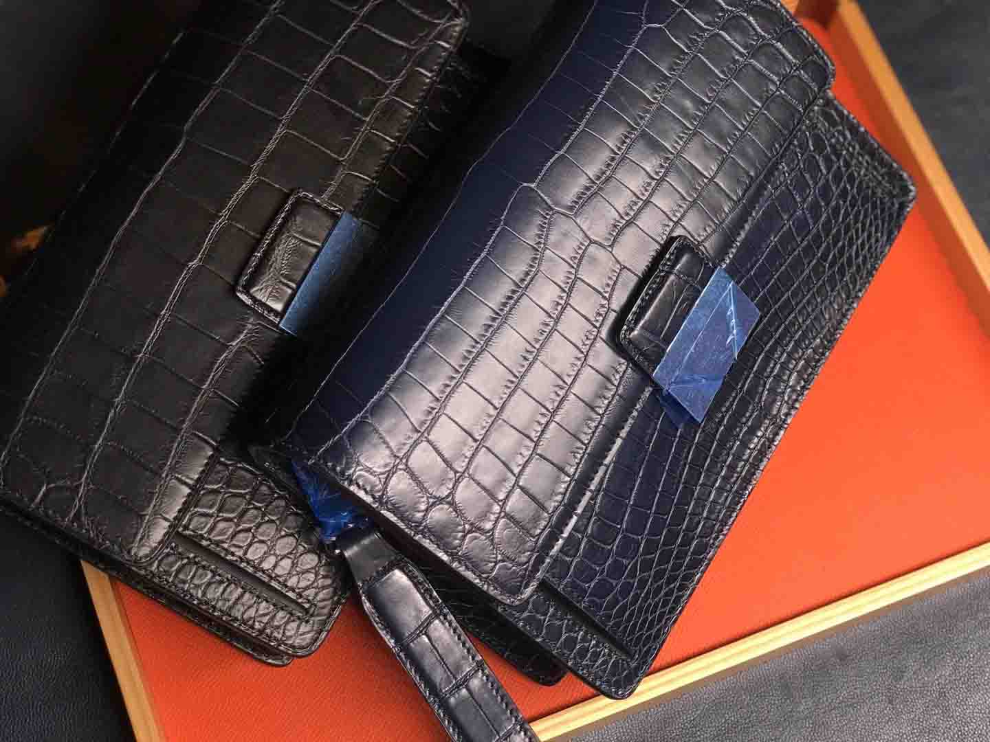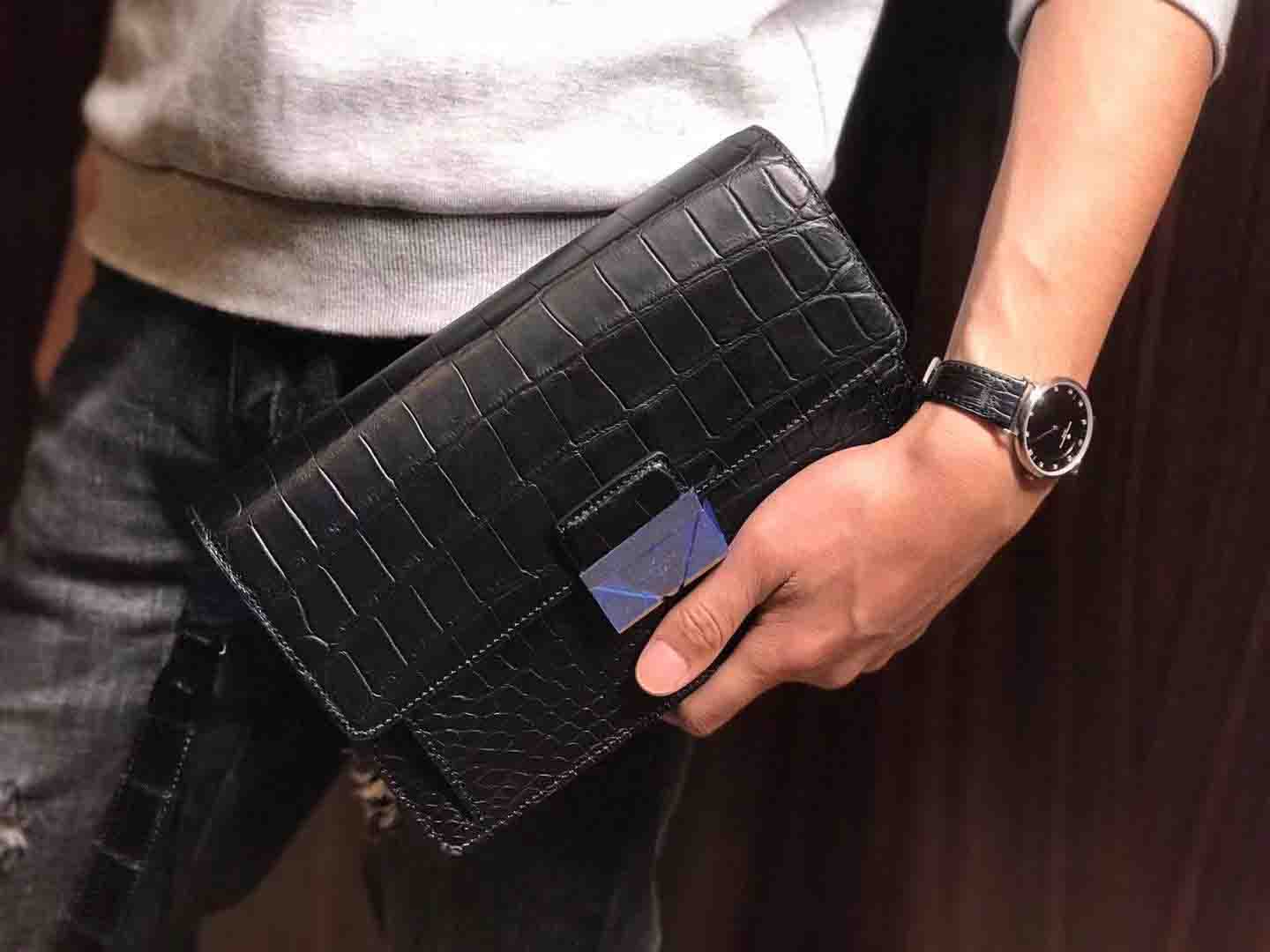 正品对版 哑光尼罗鳄lv夹包#深蓝 #黑色规格:24.5-16.5-5