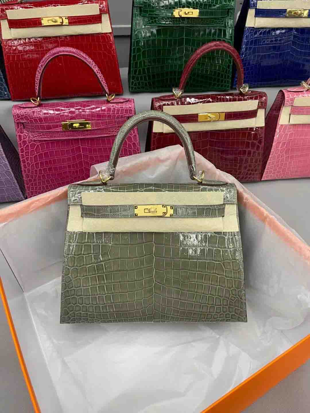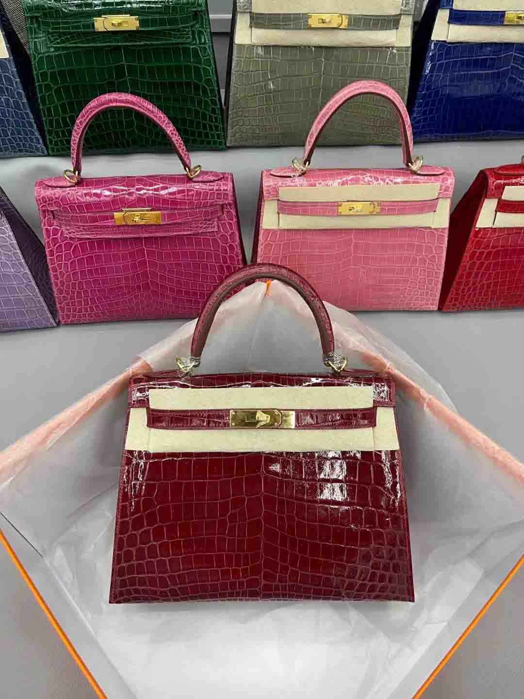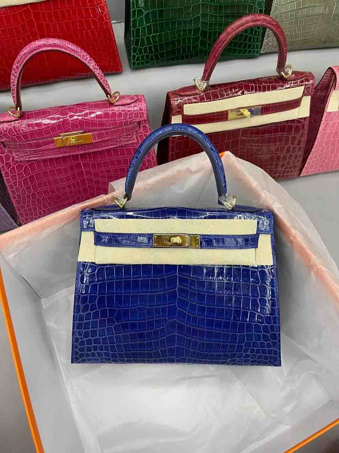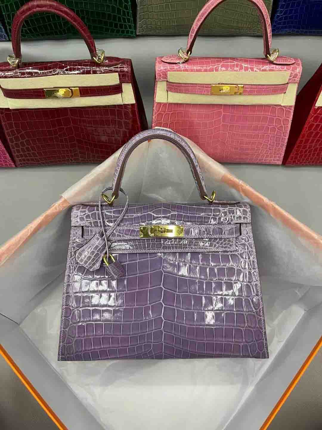 尼罗鳄 进口高光皮kelly28 金扣 9色现货 总有一个颜色适合您