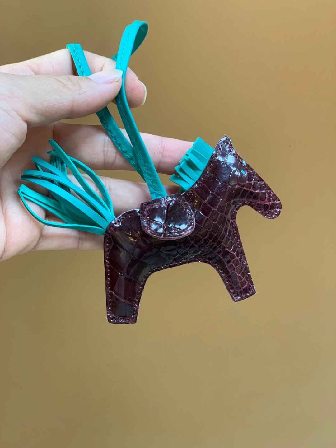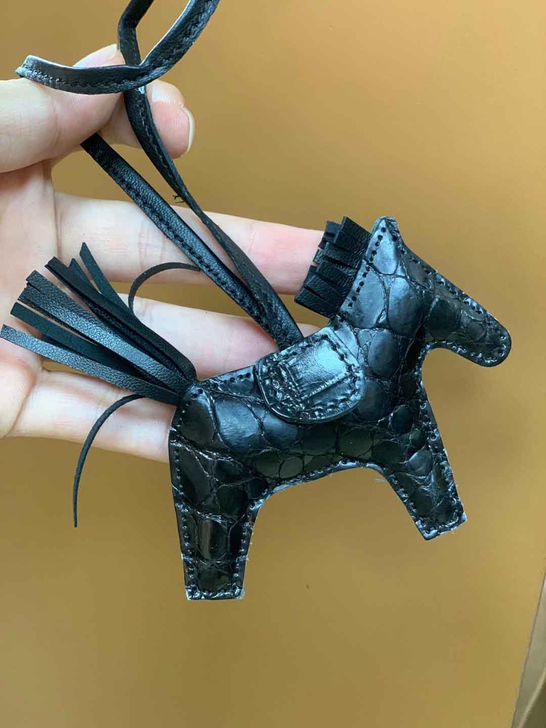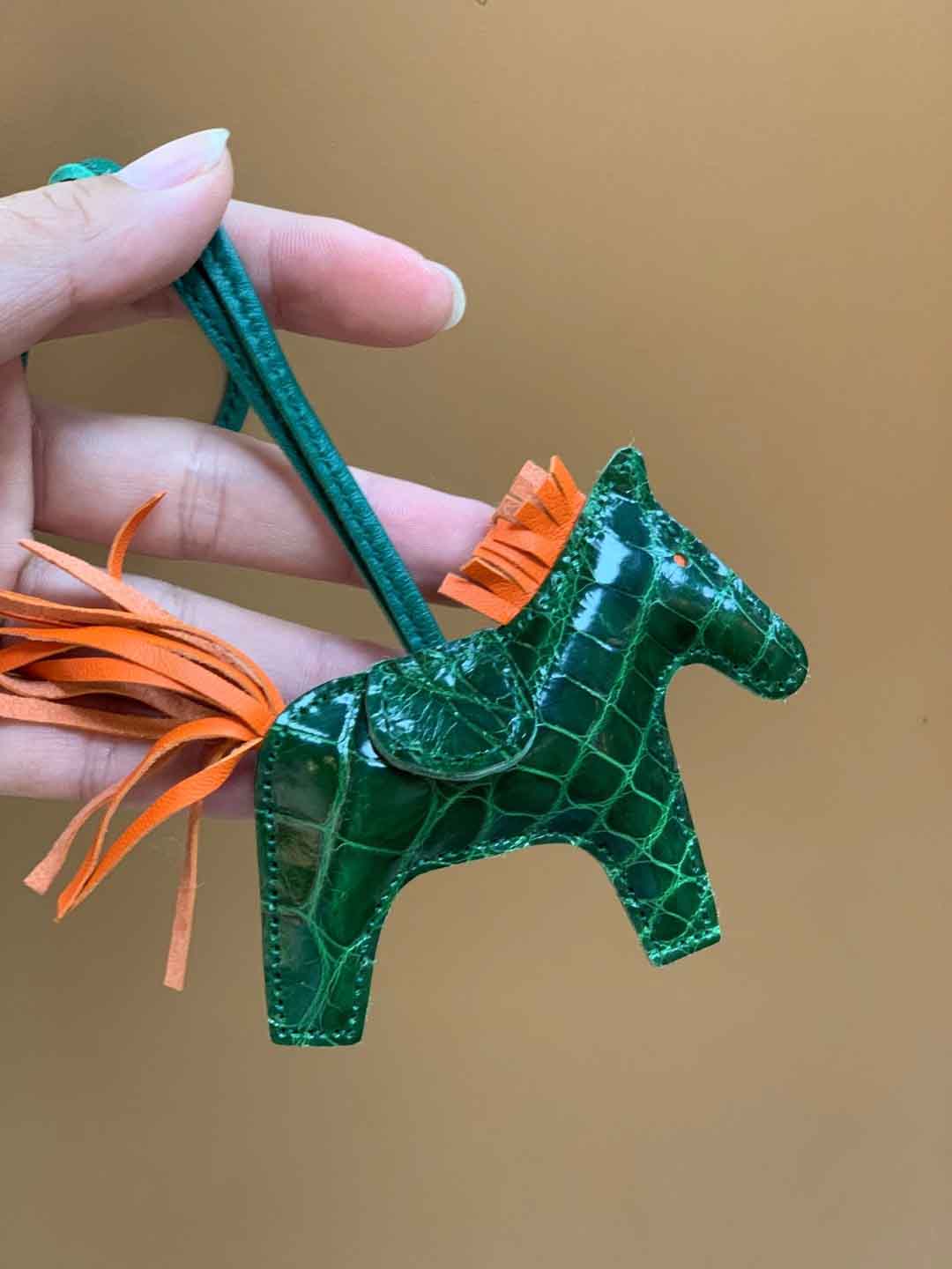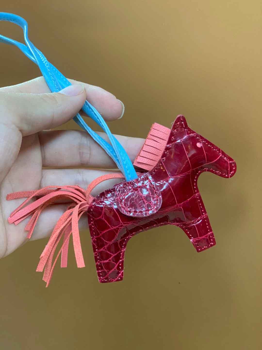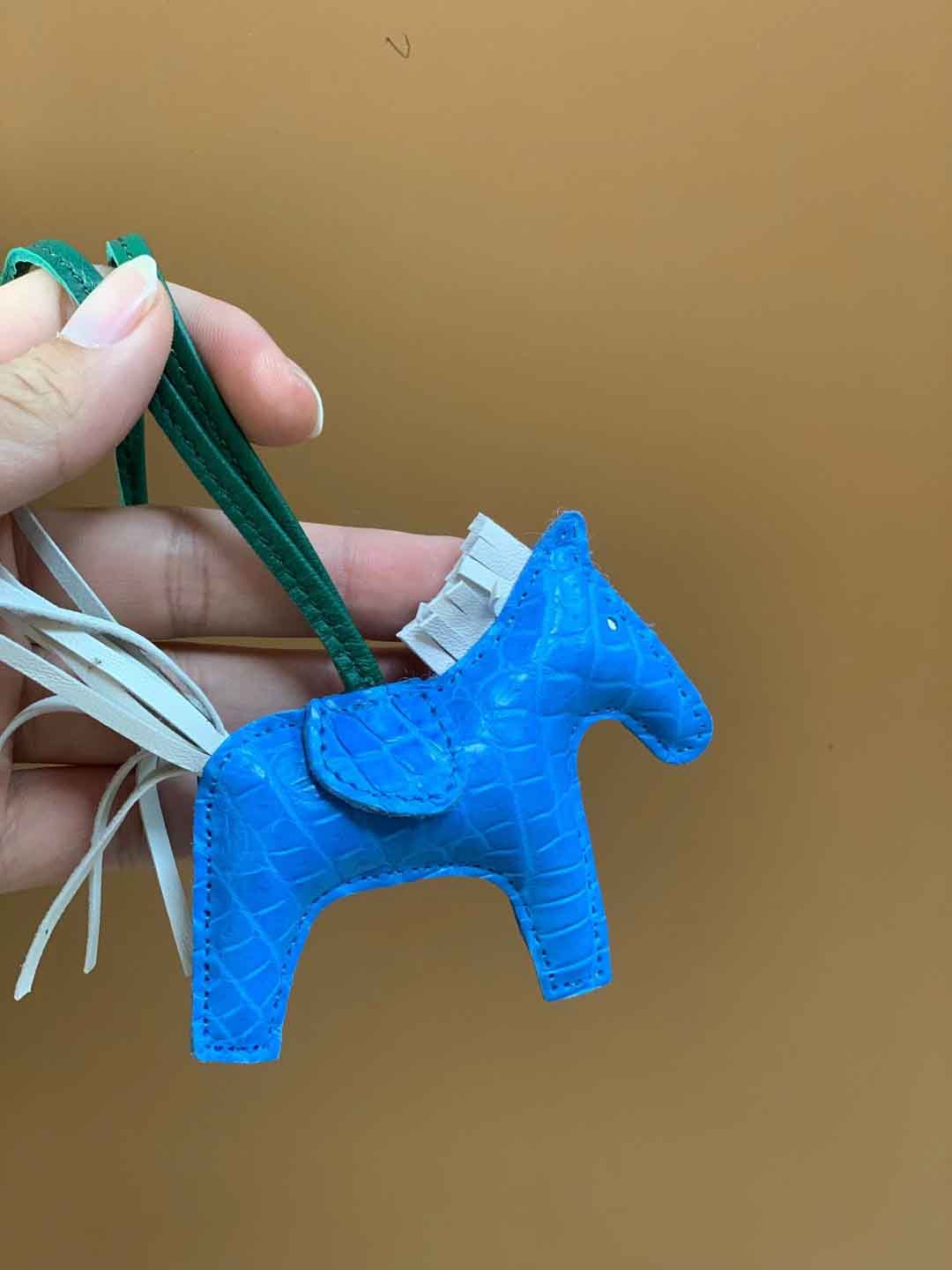 彩色鳄鱼小马,专户定做,小马挂件 原装H御用鳄鱼皮,全线手工加上原装麻线,完全和别家几百元的小马不在一个层次的好哇,颜色有限先到先得,这是GM大号,套起来一起用效果很好