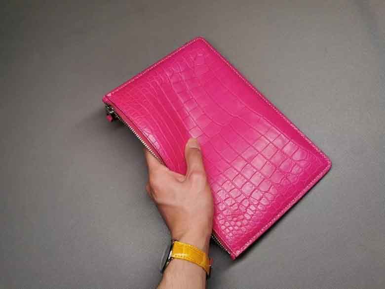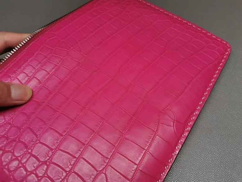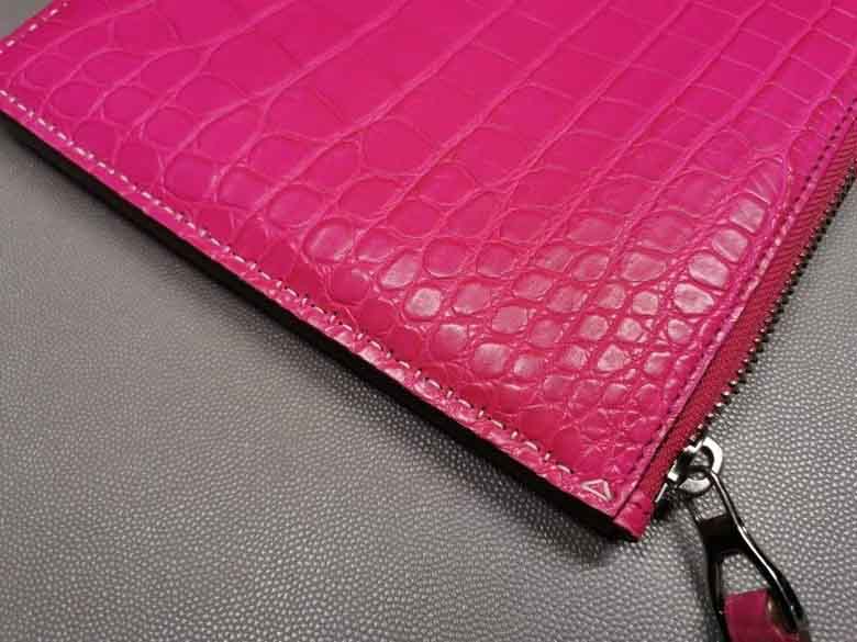 桃粉色女士信封包鳄鱼皮,哑光鳄鱼,全手缝。