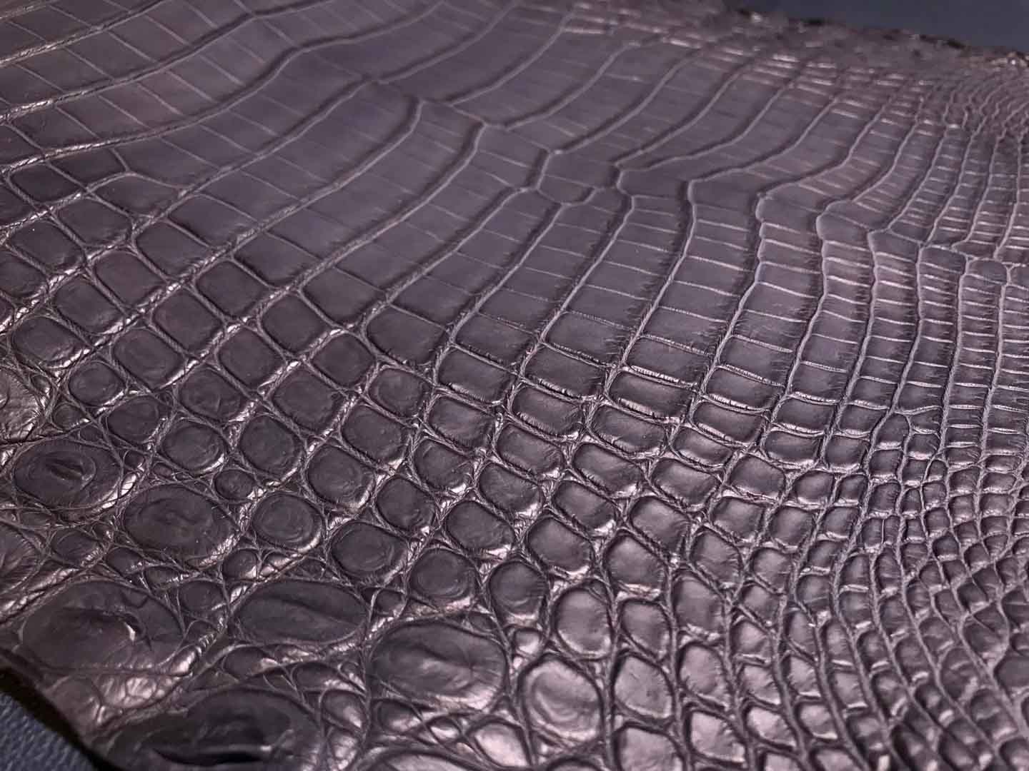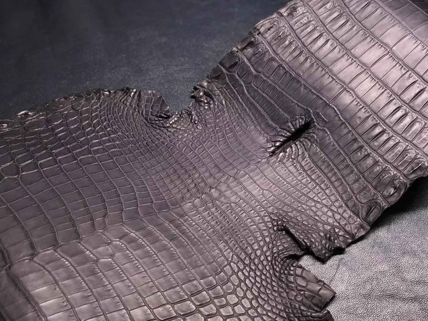 植物侵染出来的颜色,无修补抛光无涂料覆盖,鳄鱼皮的纹理细腻清晰鉴赏,雾面蓝色兴隆款鳄鱼皮定做