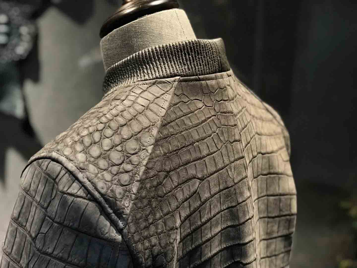 灰绿色鳄鱼皮夹克