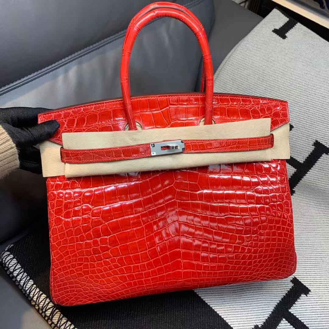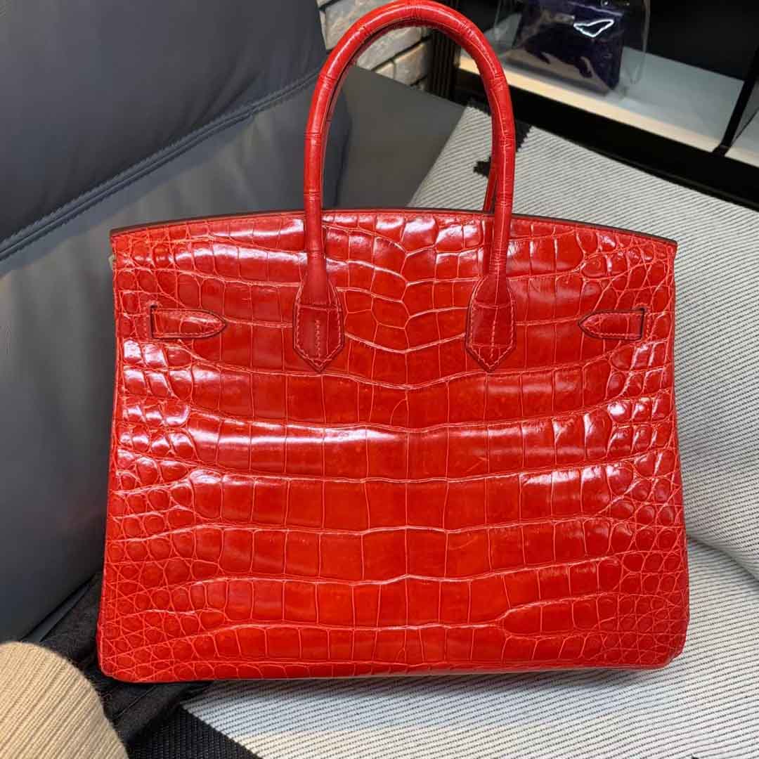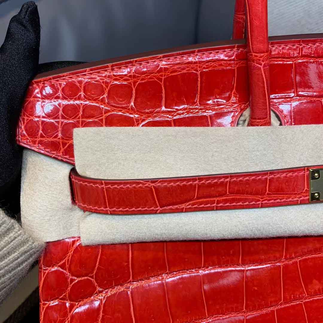 Birkin35cm 9M法拉利红亮面鳄鱼皮女手提包鳄鱼皮单肩包