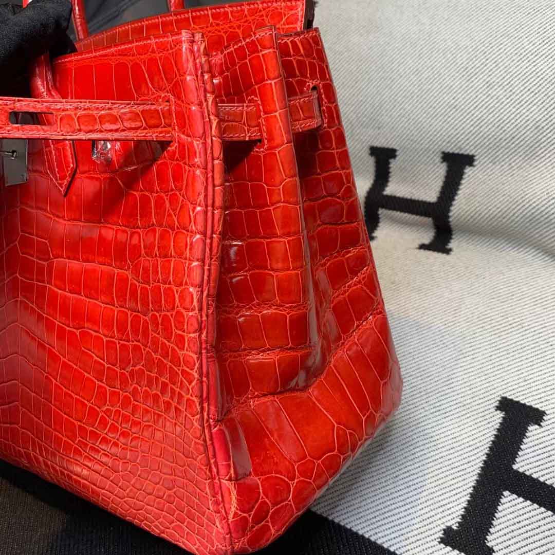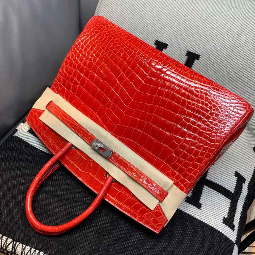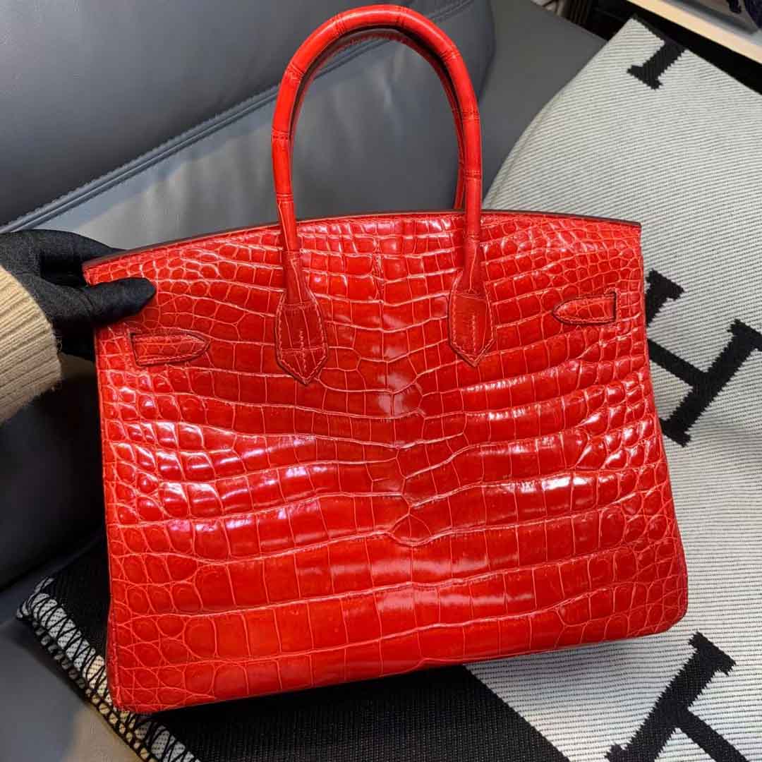 Birkin35cm 9M法拉利红亮面鳄鱼皮女手提包鳄鱼皮单肩包