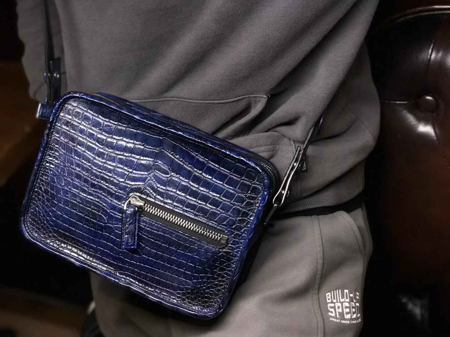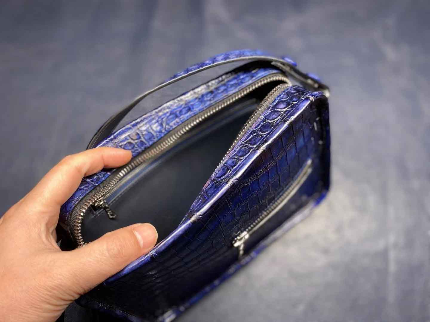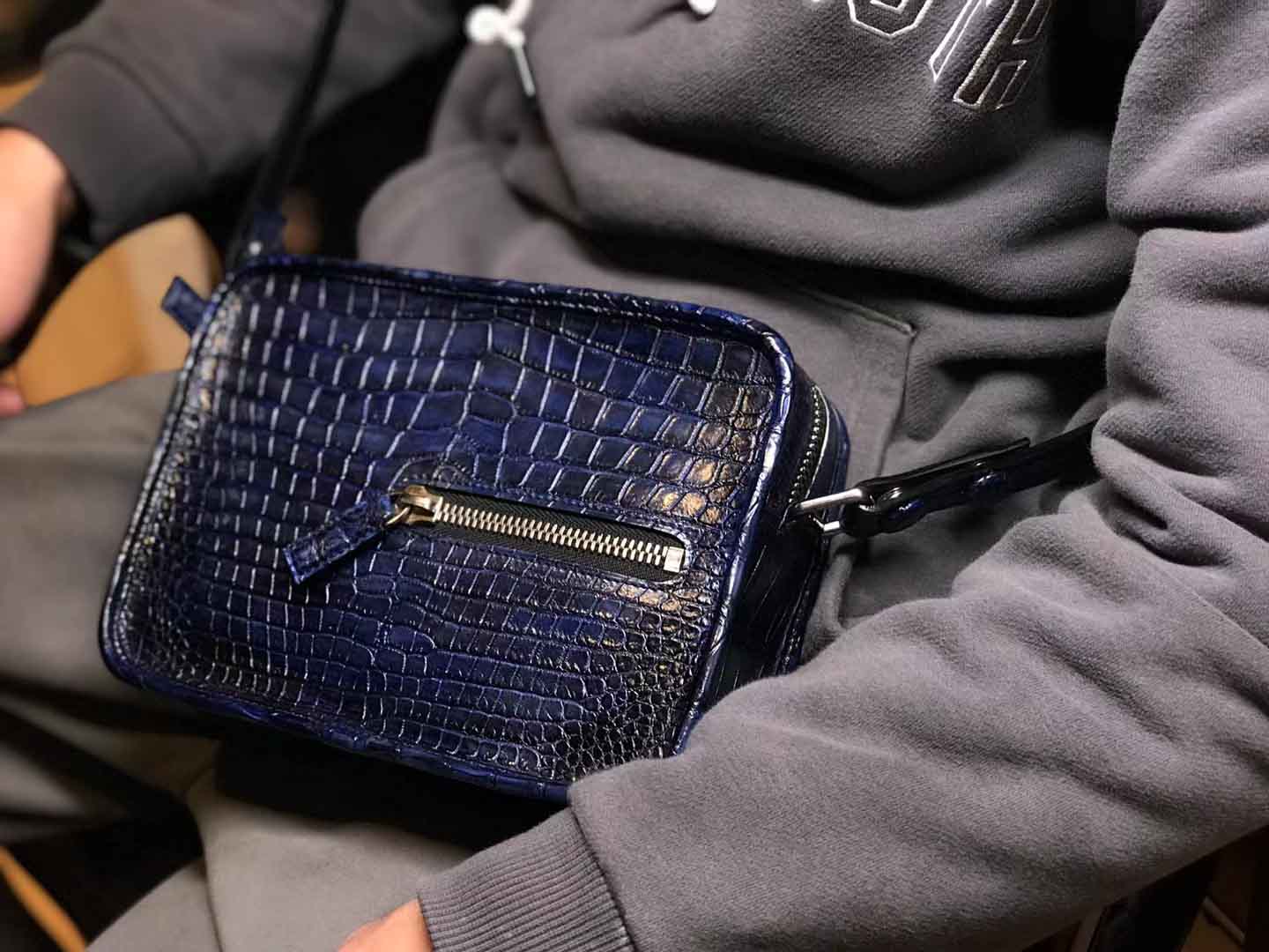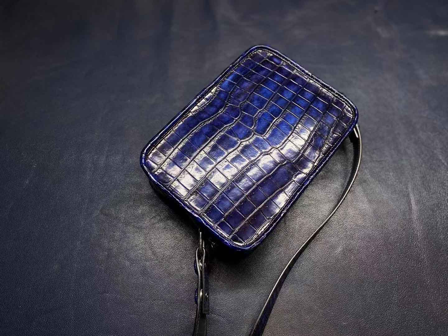 【新品】Berluti斜挎/夹包 两用途款。湾鳄 深蓝色 实物拍摄 现货供应。闪电寄出。