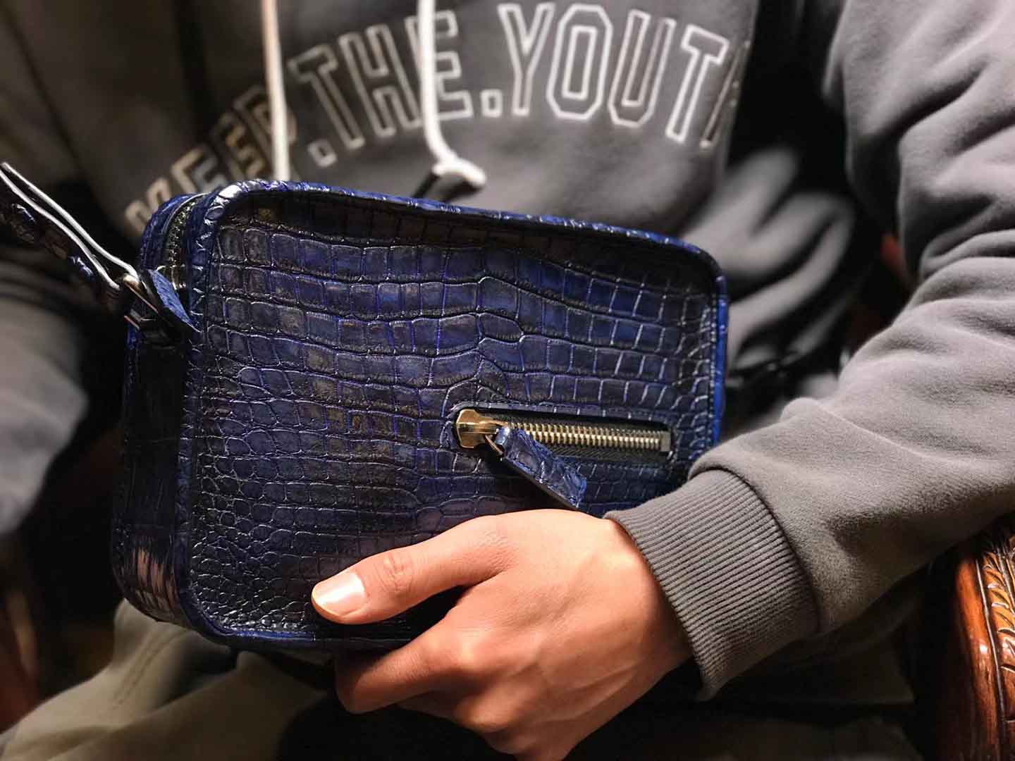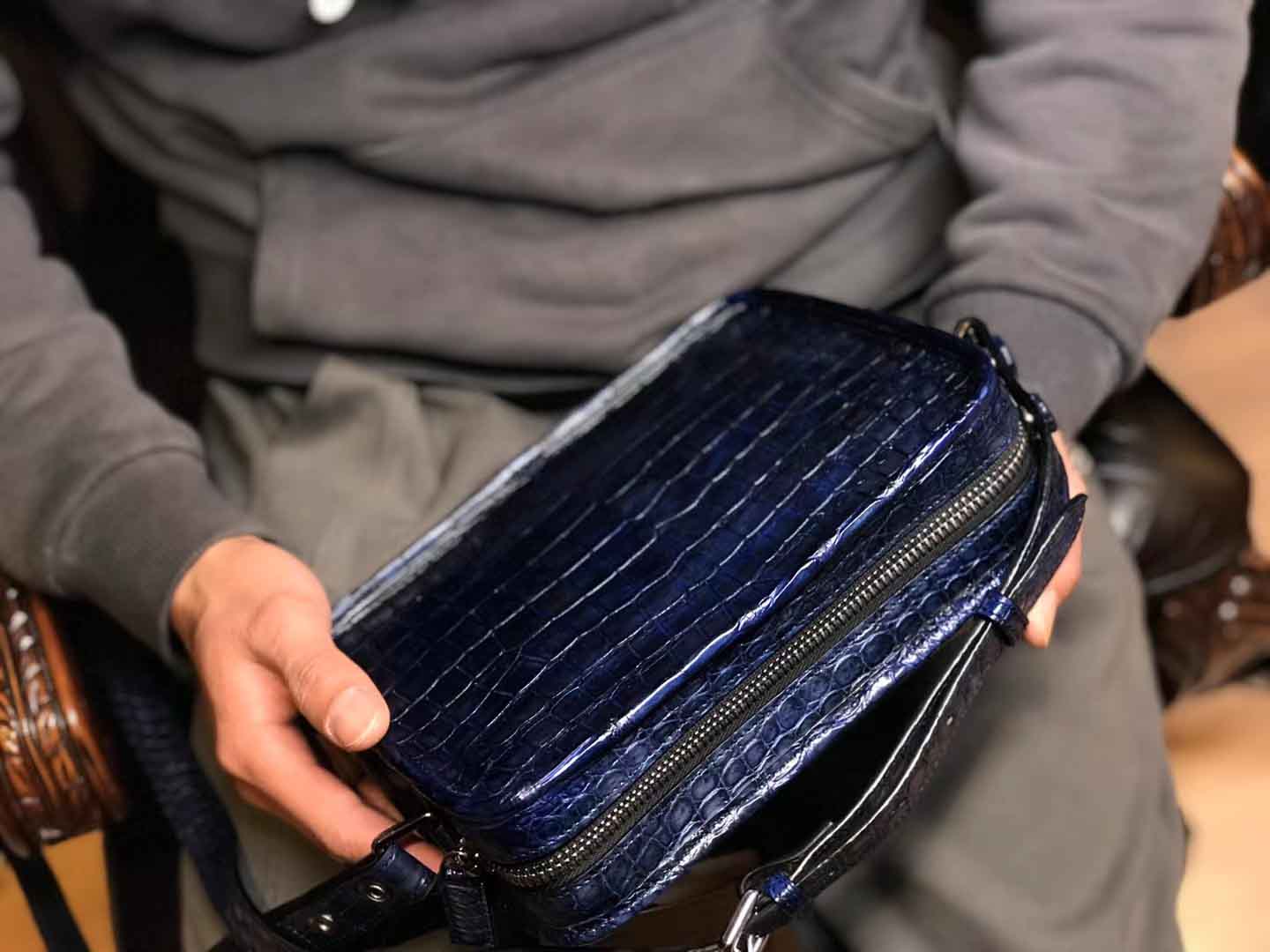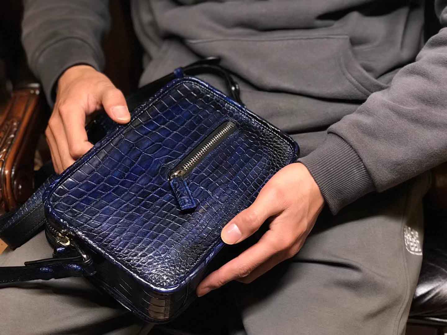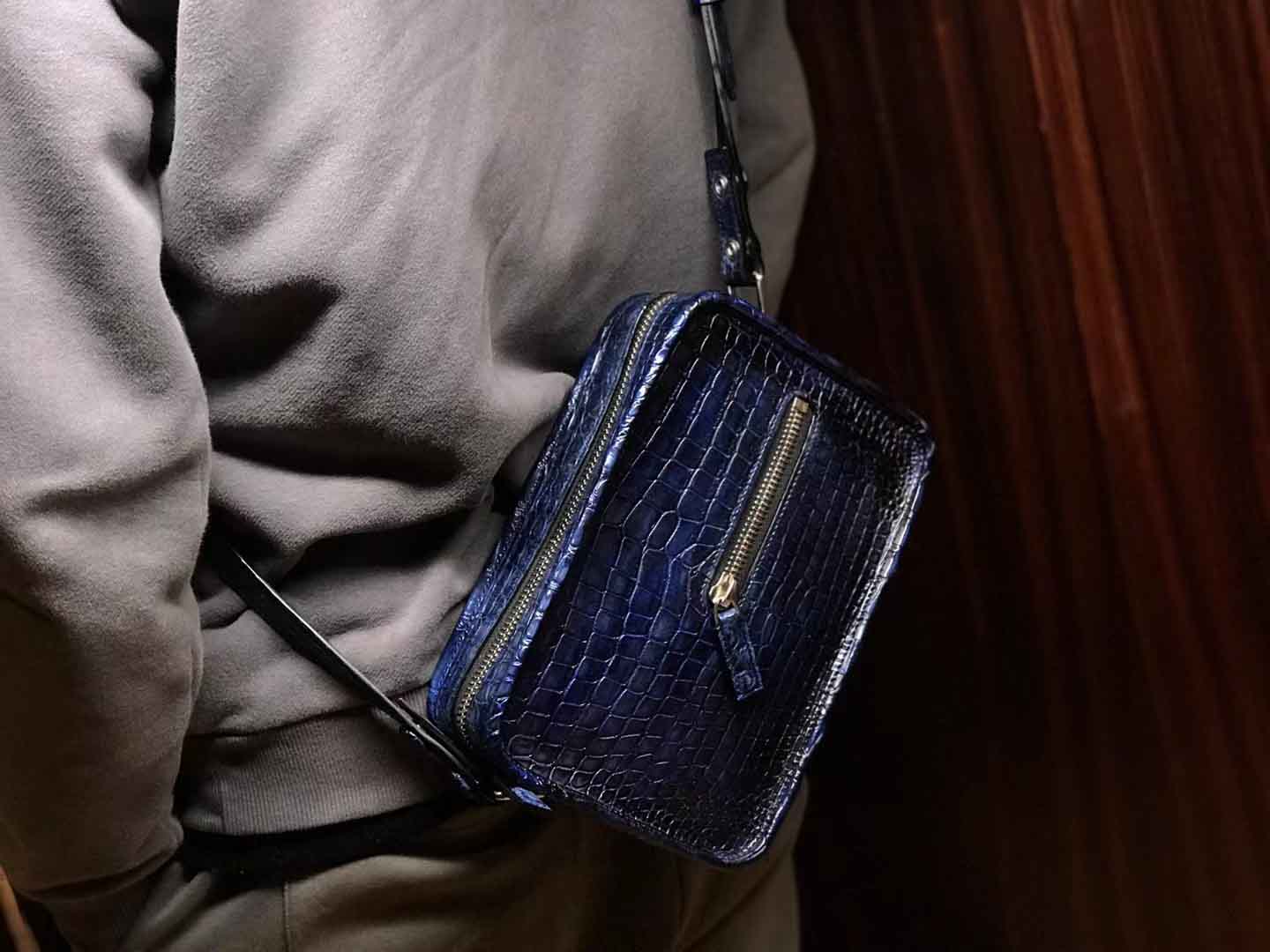 【新品】Berluti斜挎/夹包 两用途款。湾鳄 深蓝色 实物拍摄 现货供应。闪电寄出。