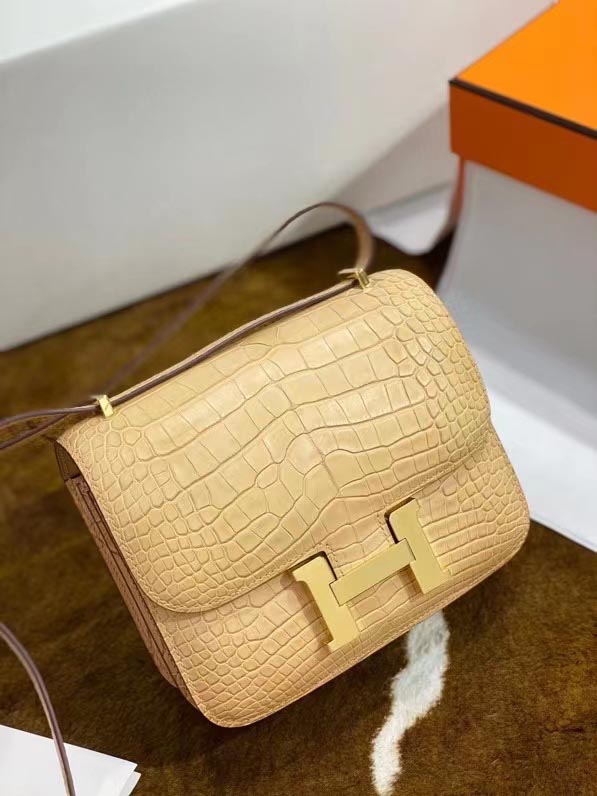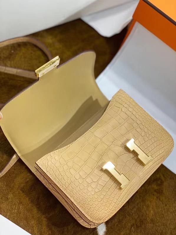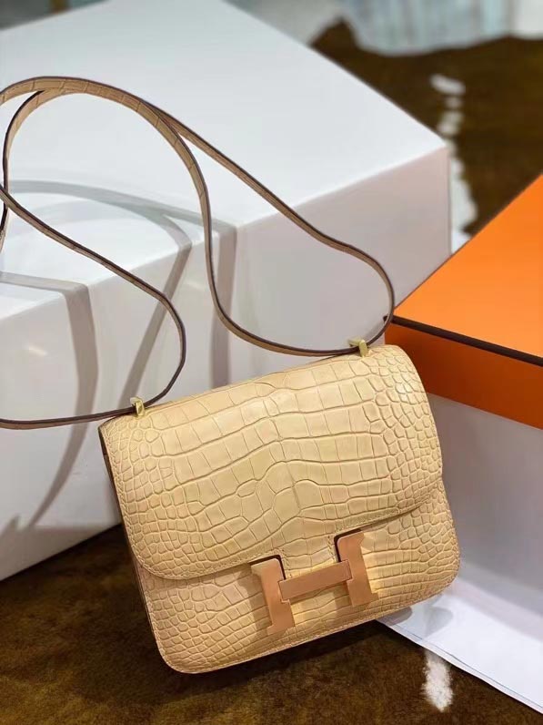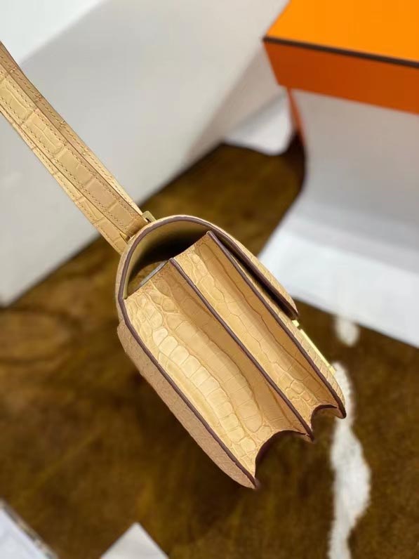 19cm Constance 康康鳄鱼皮 雾面美洲鳄 全手工蜜蜡线缝制 。雾面美洲鳄空姐包浅蛋黄色定做