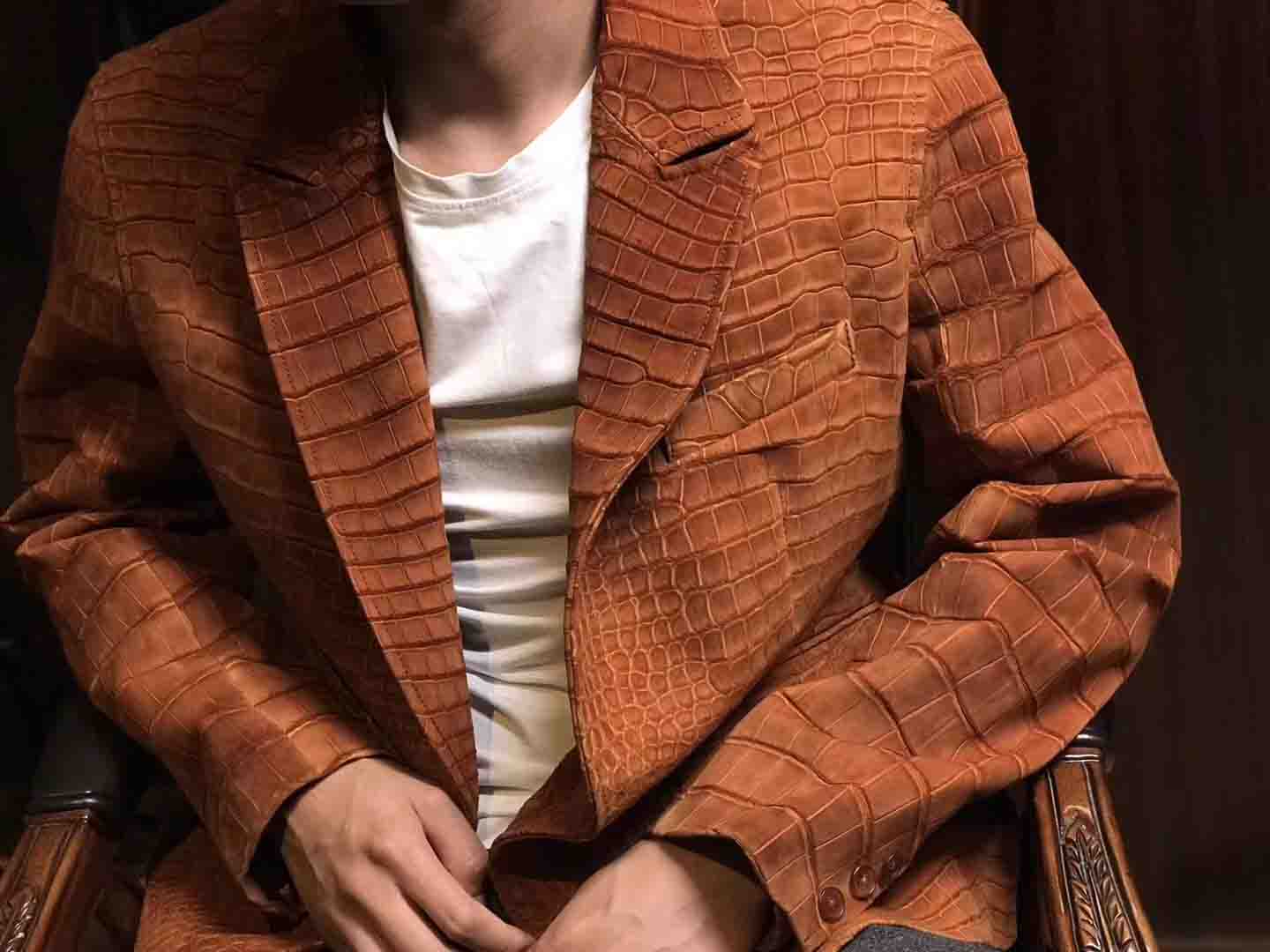 湾鳄/磨砂鳄鱼皮西服现货50码,