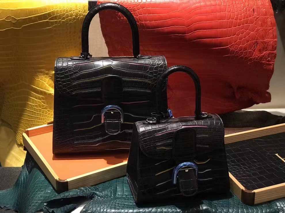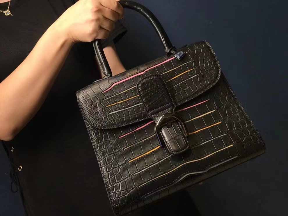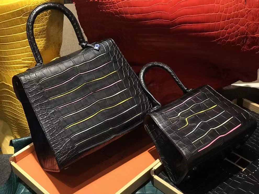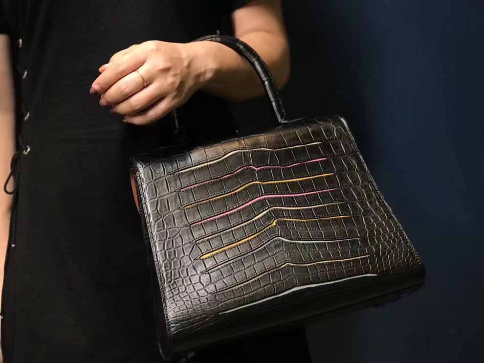 【客订】美洲鳄 黑色哑光德尔沃 28/20cm私人定做美洲鳄鱼皮包