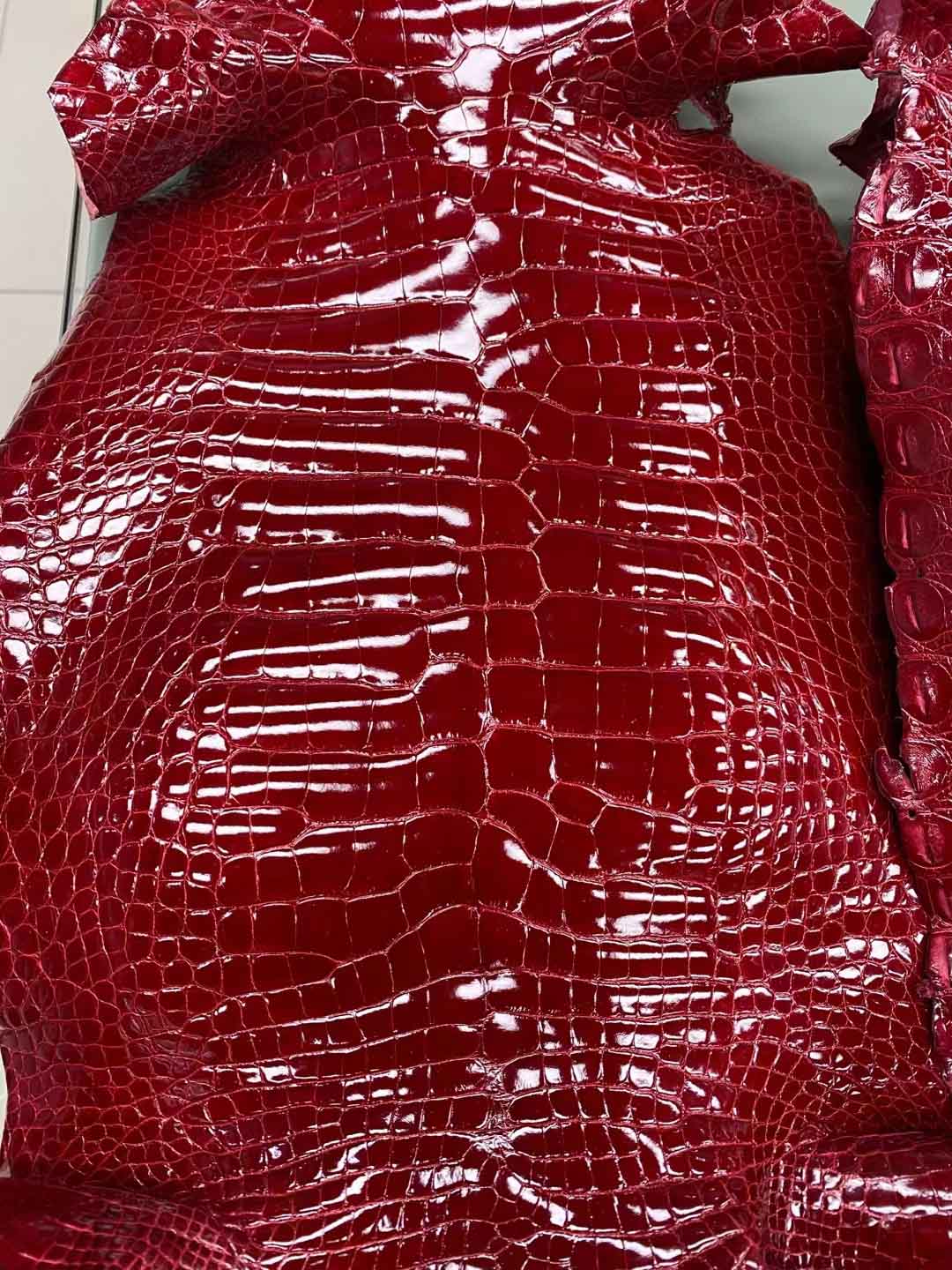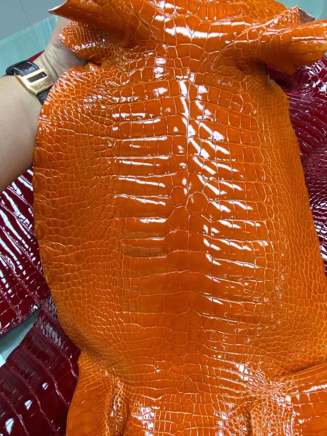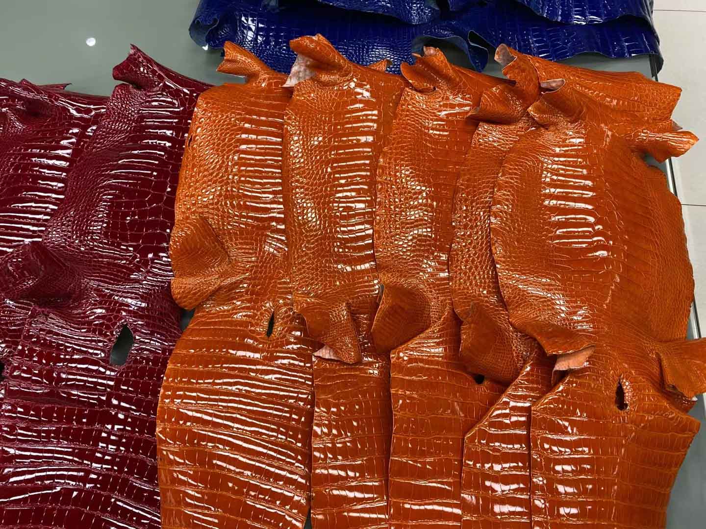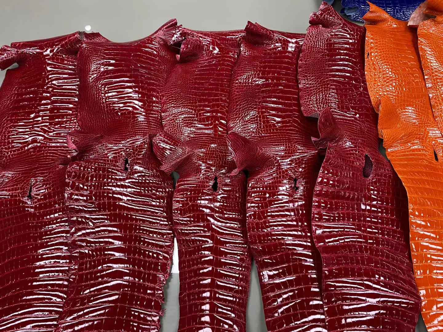 高光美洲鳄鱼皮料到货了,亮面美洲鳄鱼皮订做工厂。