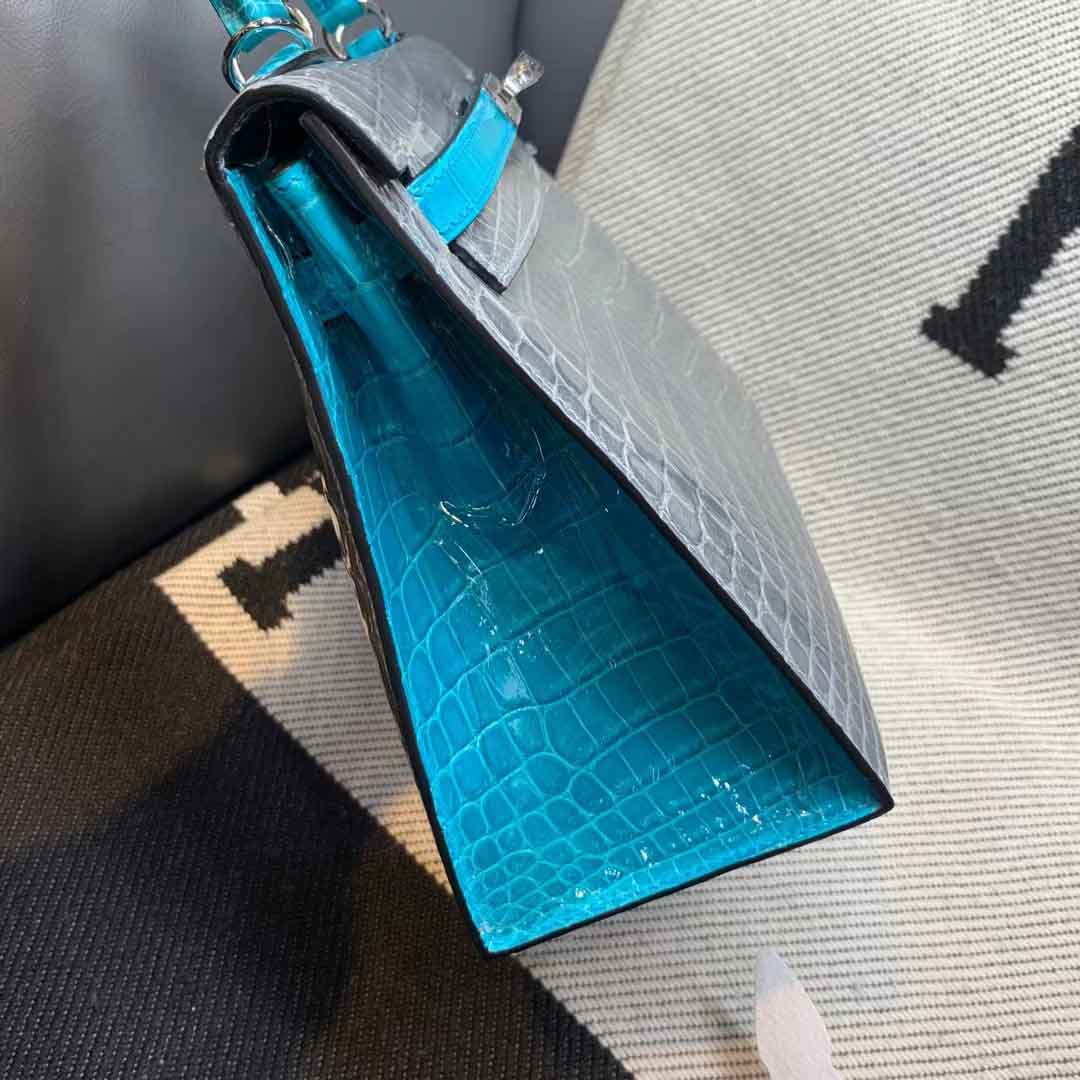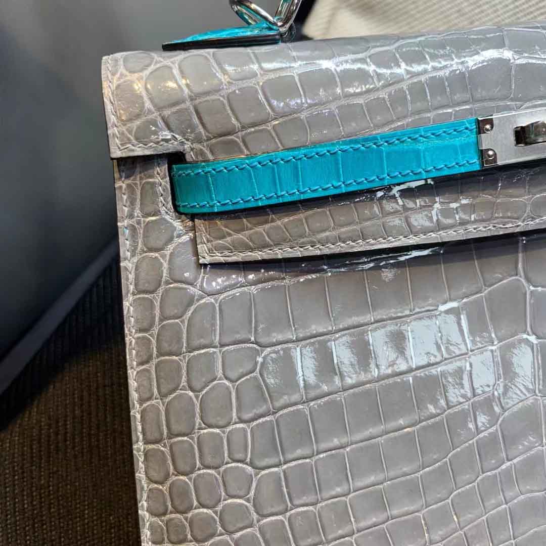 客订kelly25兴隆亮光尼罗鳄 特殊定制,拼色凯丽25鳄鱼皮订做。