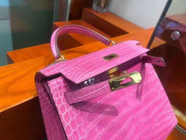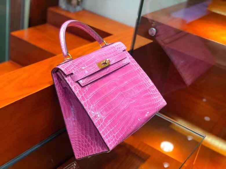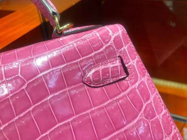 Kelly 28cm 鳄鱼皮女手提包 桃粉色 顶级手工!
