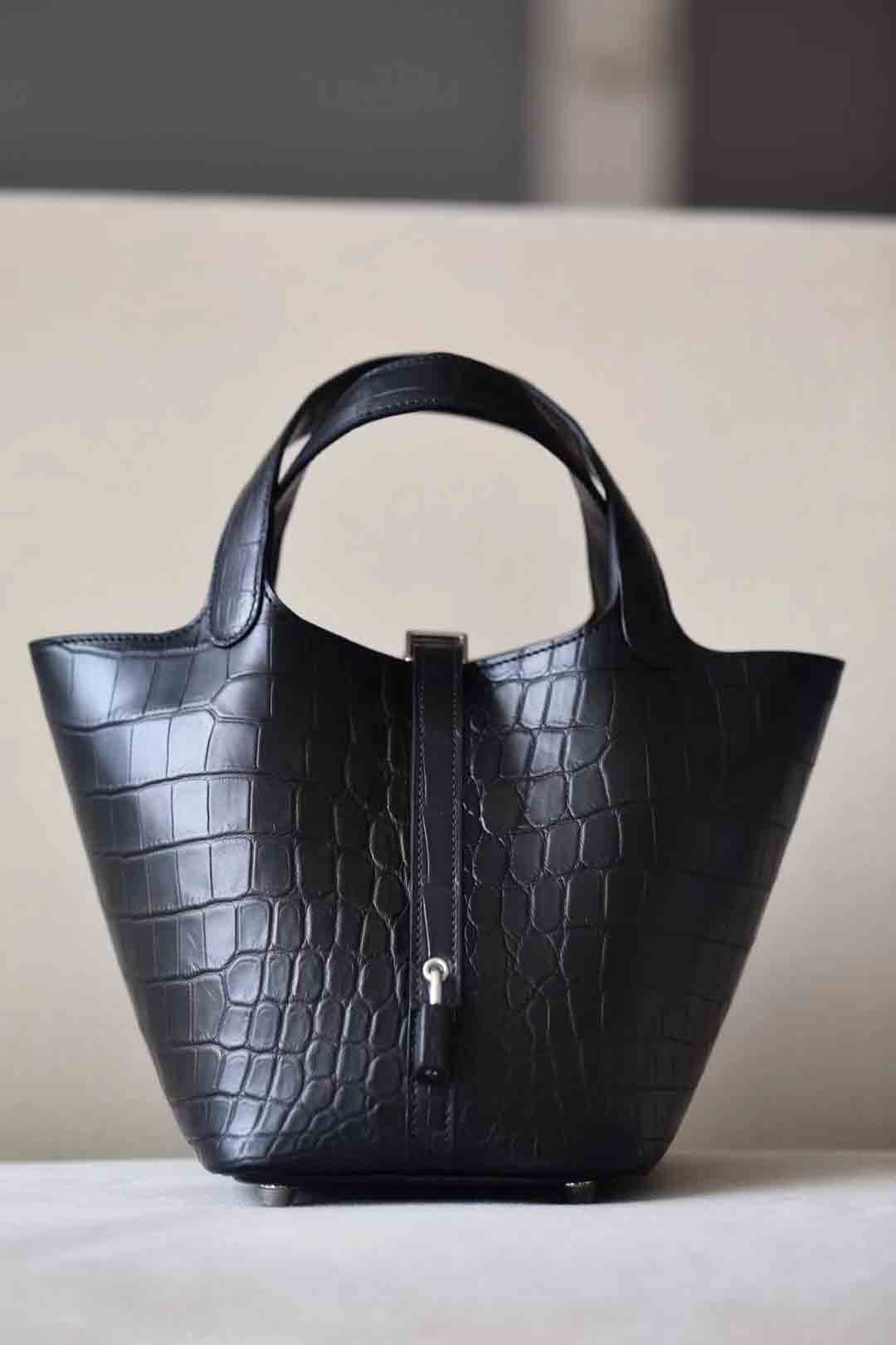 高定款 纯进口尼罗哑光鳄鱼皮菜篮子18cm,哑光尼罗鳄女包订做工厂