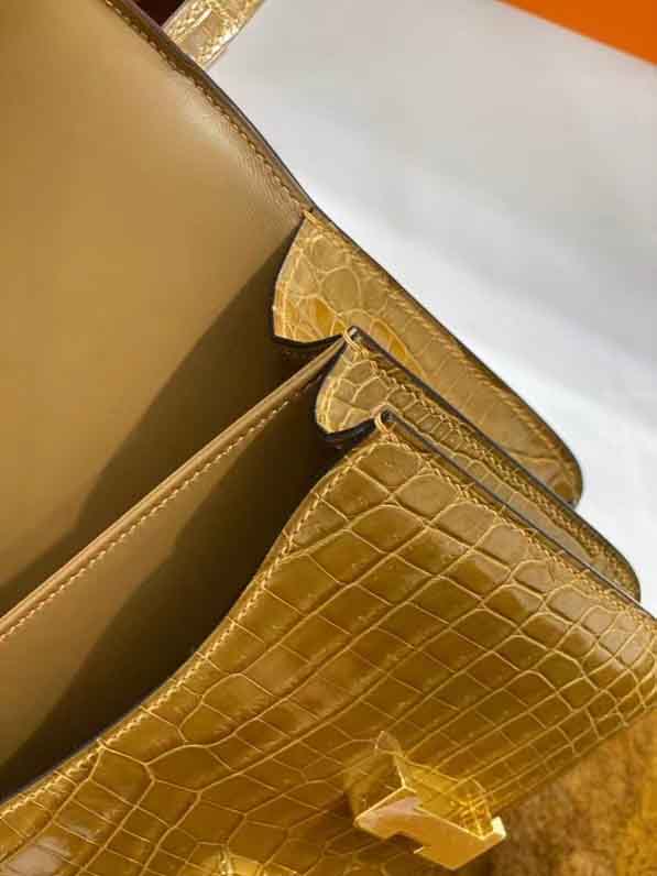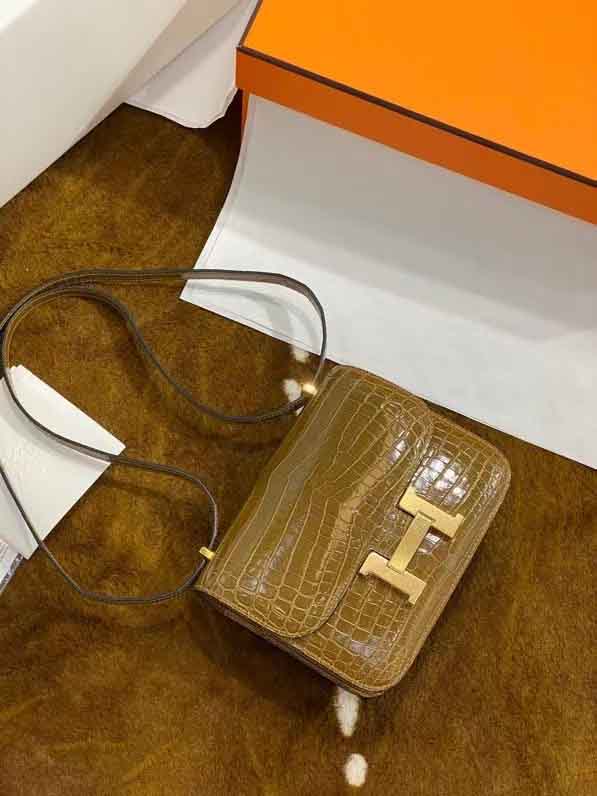 高光尼罗鳄烟草色空姐单肩包定做厂家,奢侈品鳄鱼皮女包设计工作