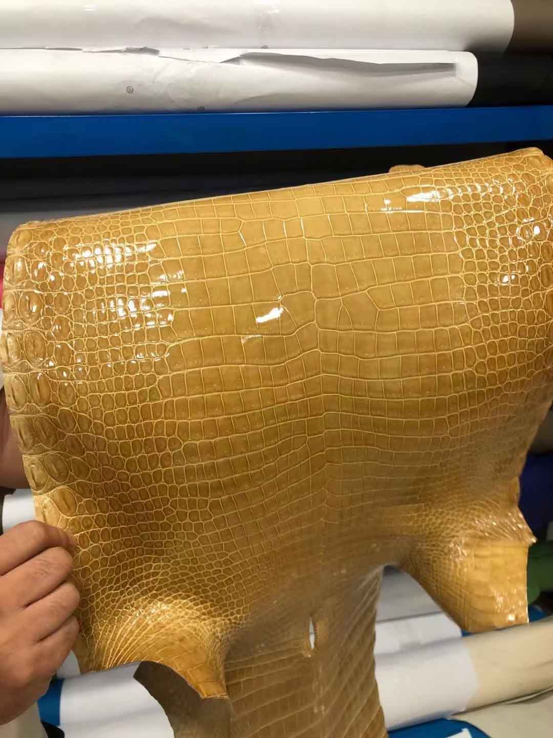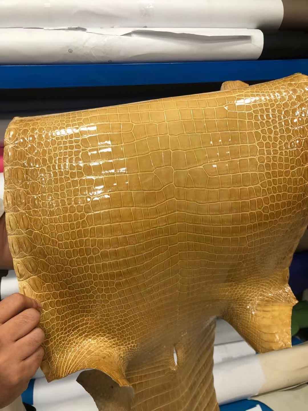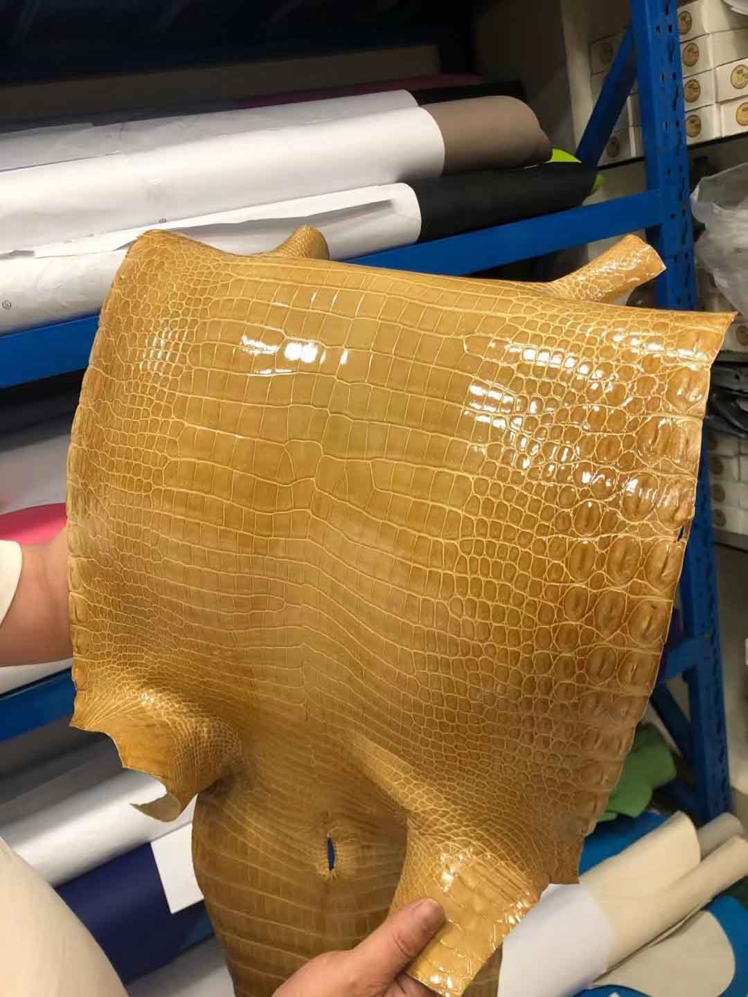 烟草色湾鳄高光皮料预定。微信:95506803
