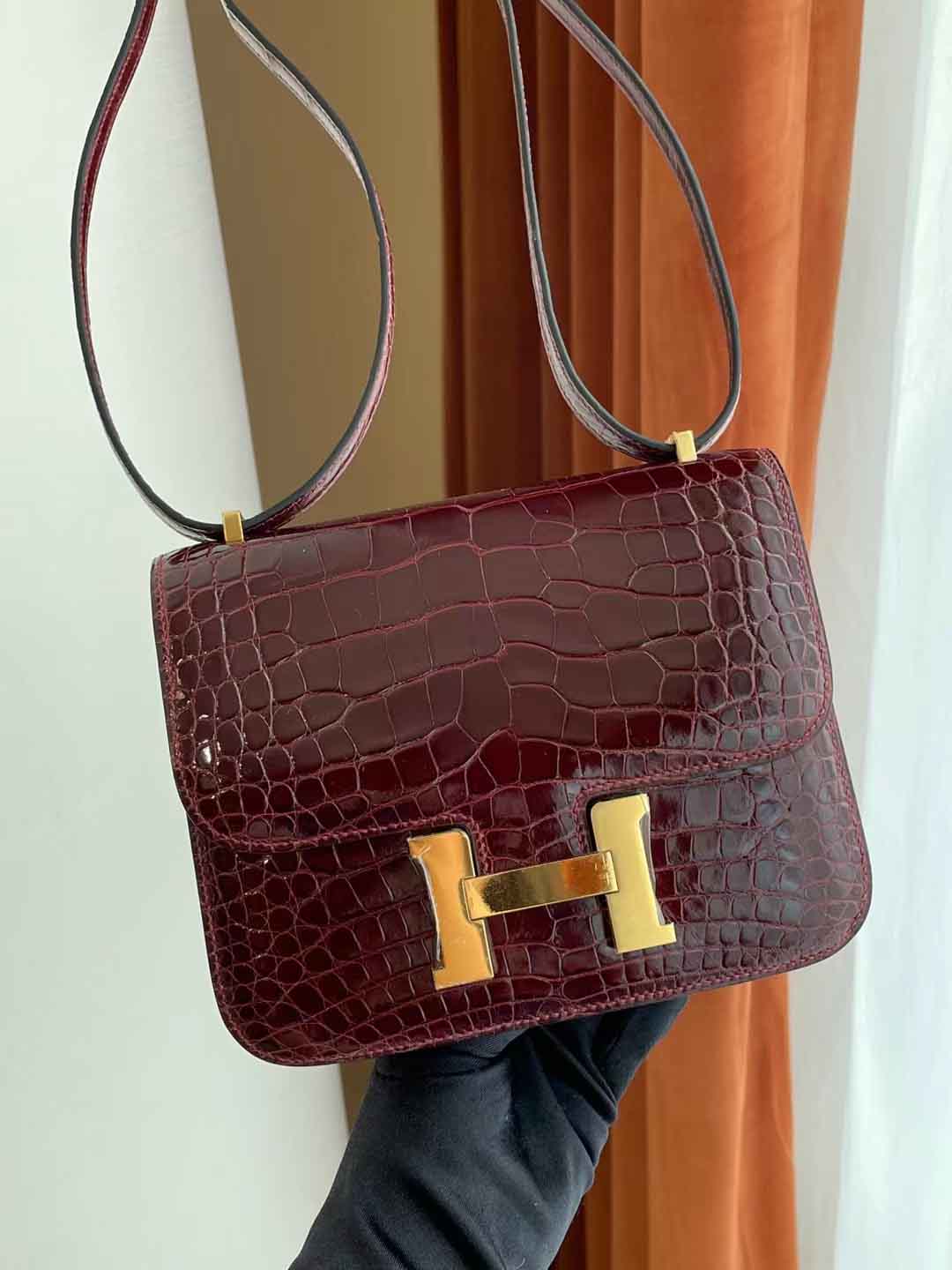 constance 新到现货 美洲Bordeaux 18cm 鳄鱼皮高光女包私人订做厂家