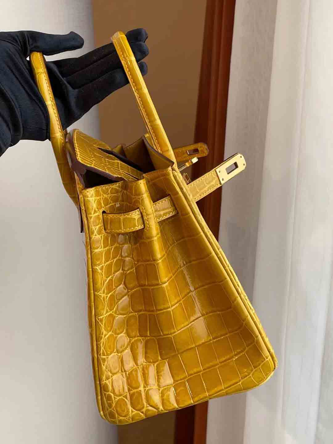 Bk 9D 琥珀黄 Amber 25cm 鳄鱼 金扣,