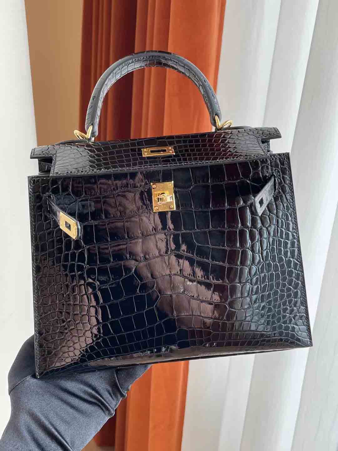 Kelly25 黑色亮面美洲鳄金扣 纯手工蜡线 新到现货一只 in stock....