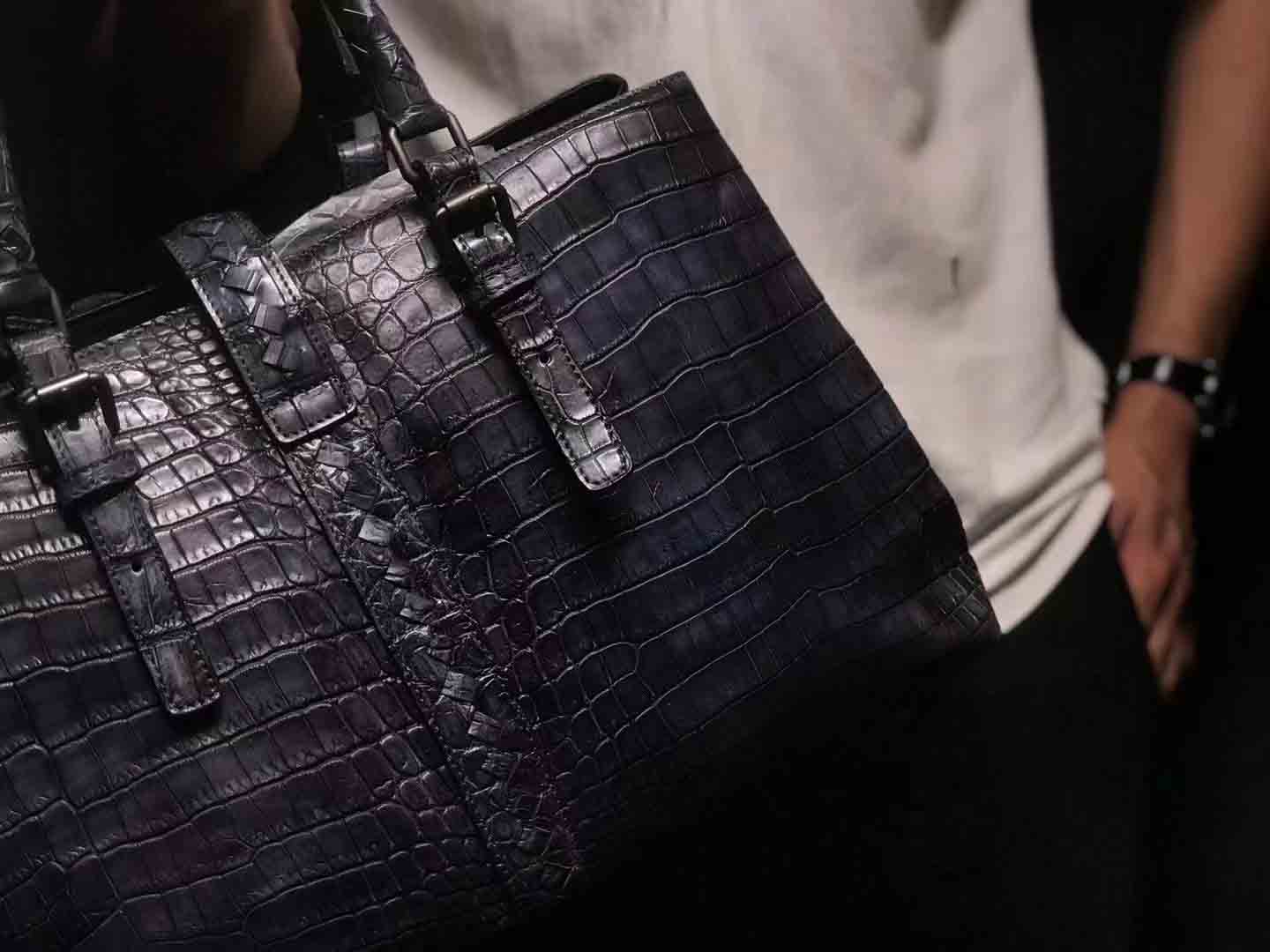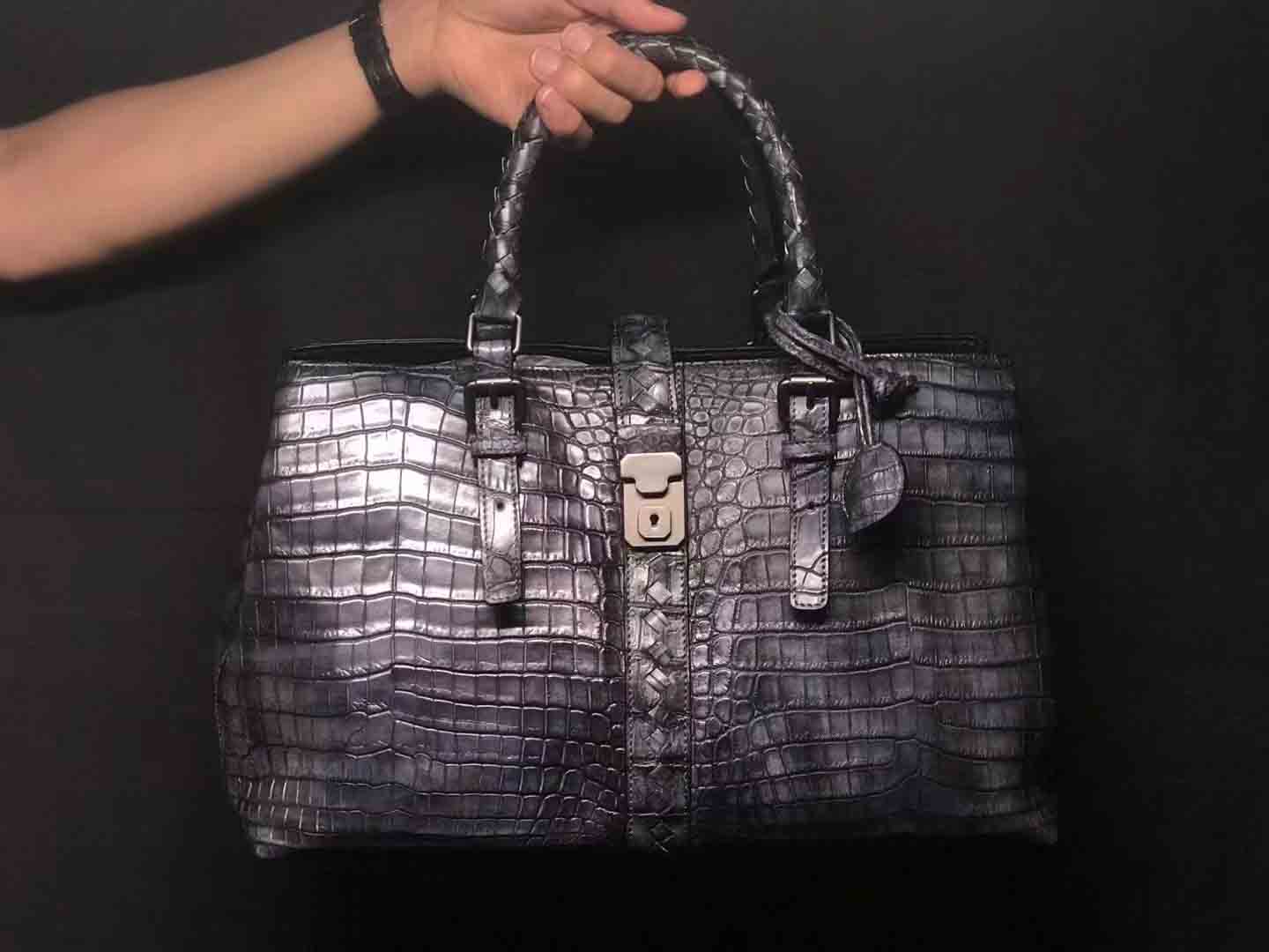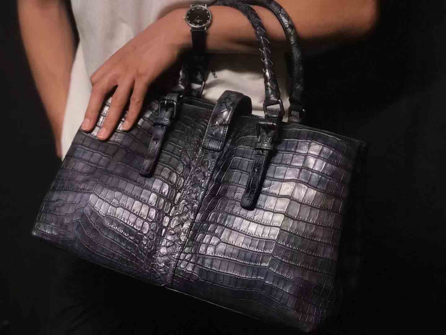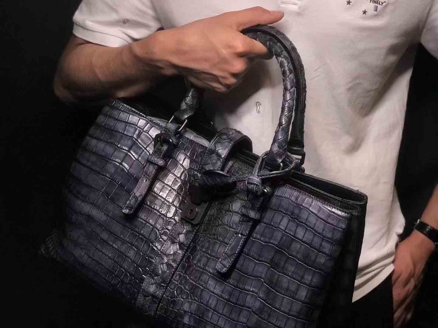 bv鳄鱼手工编织手提袋