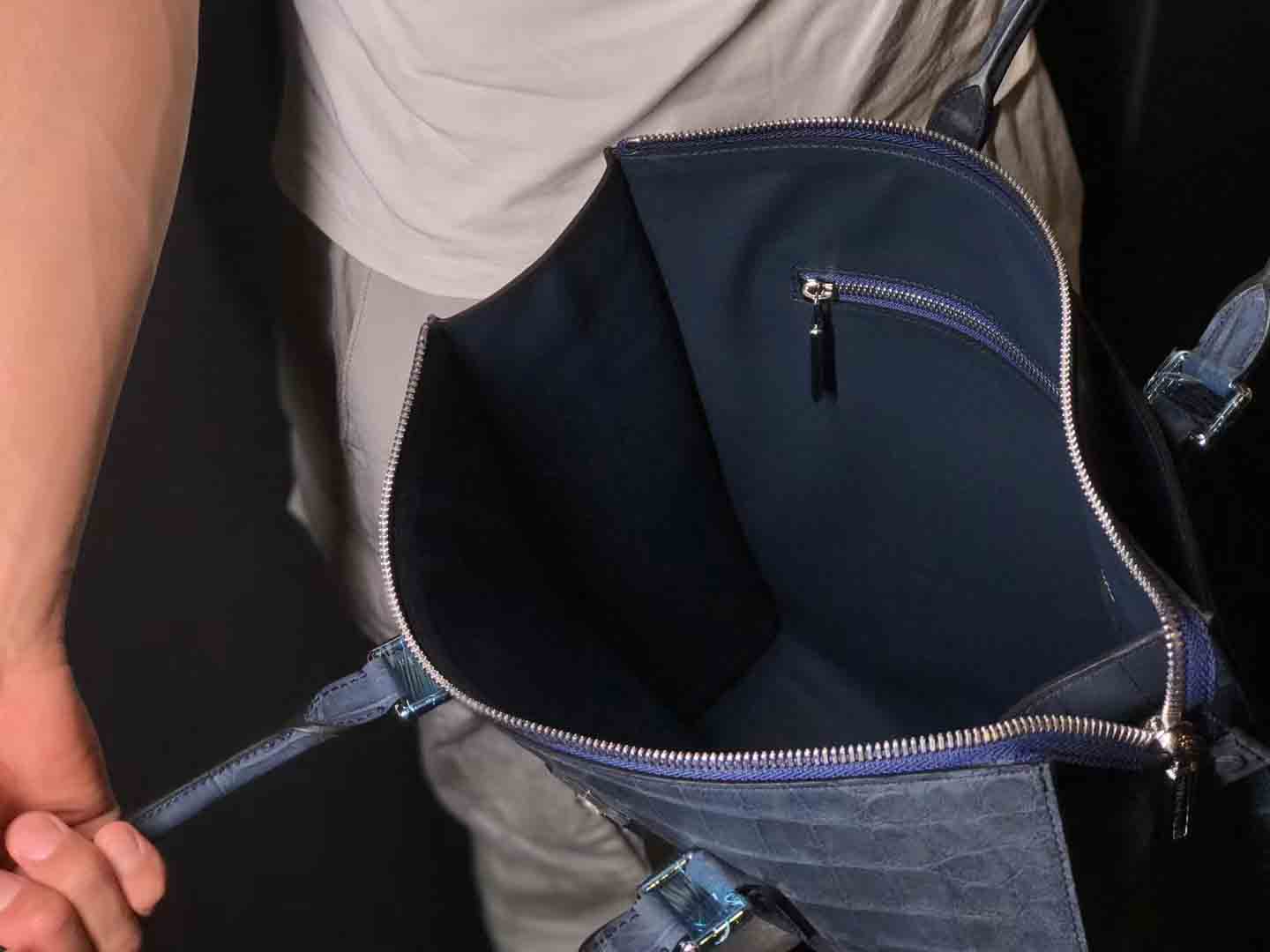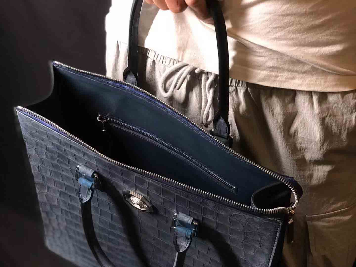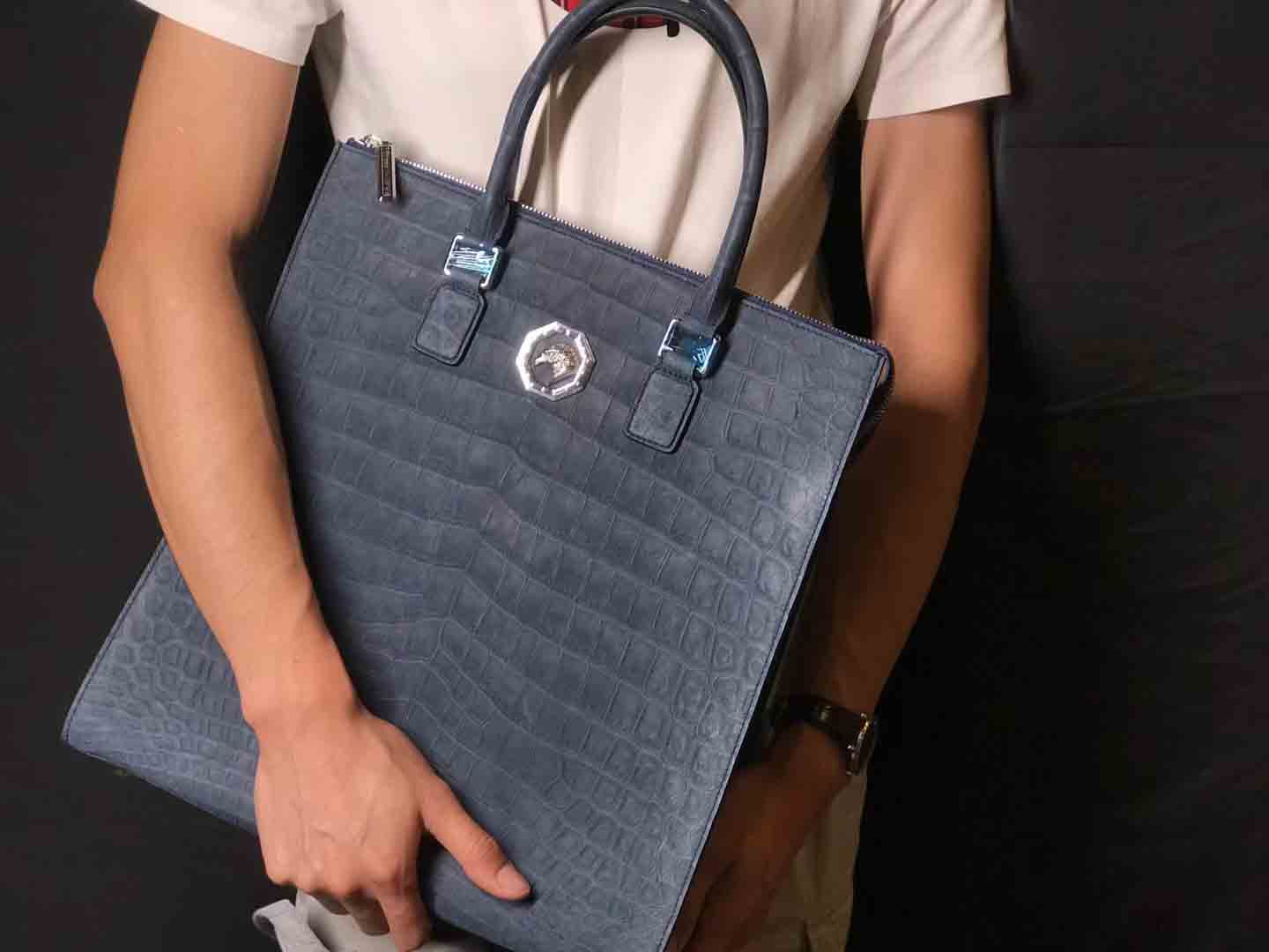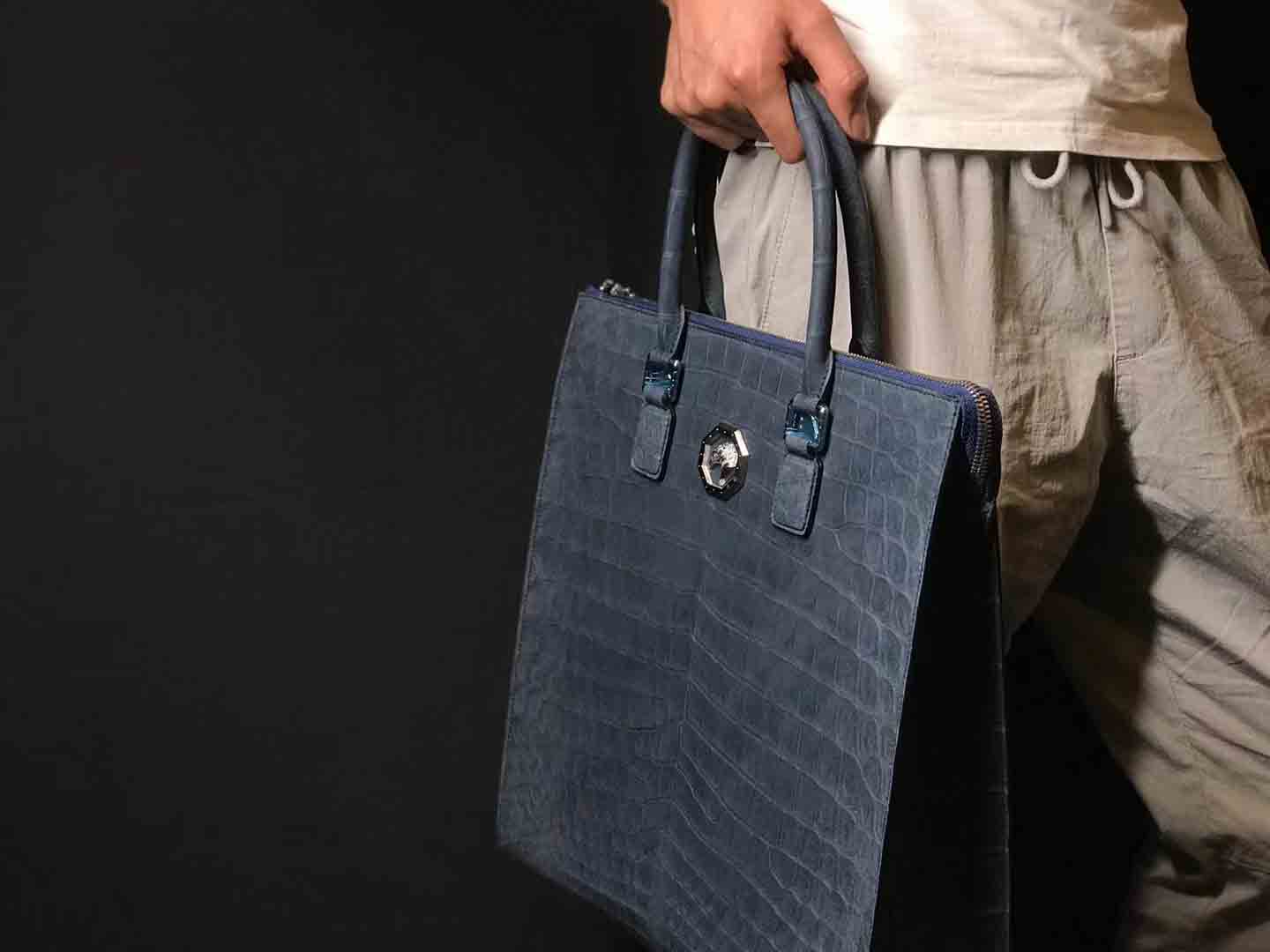SR.系列|进口尼罗鳄磨砂服装革 蓝色 男款手提。