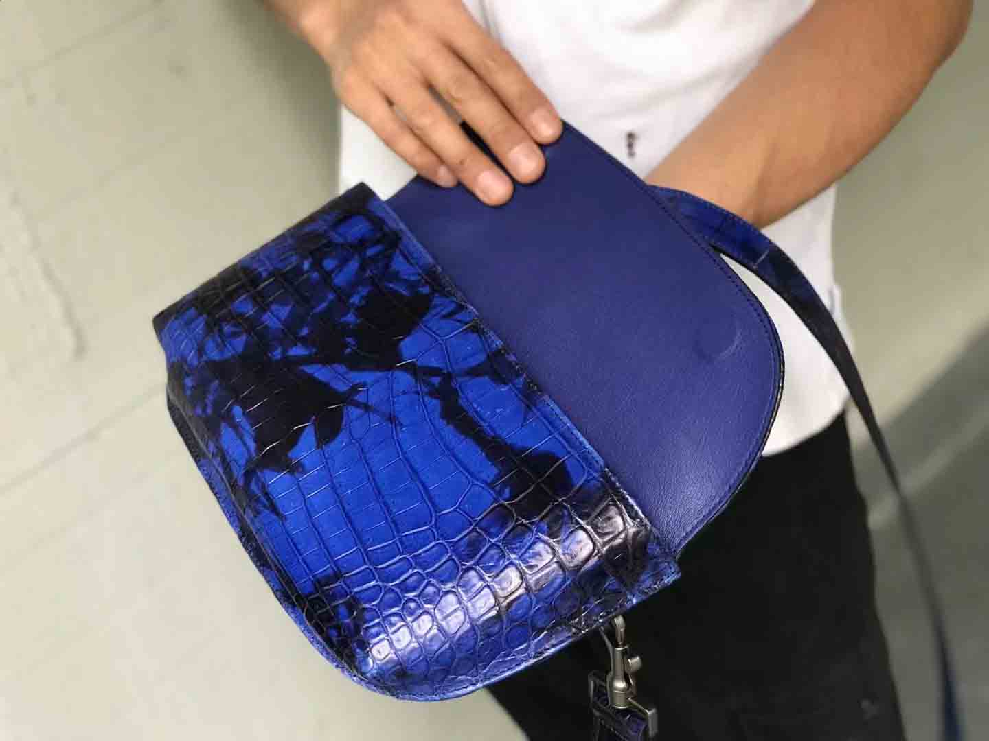 手工擦色尼罗鳄新款胸包定制厂家,客订diy手工鳄鱼皮具工厂。