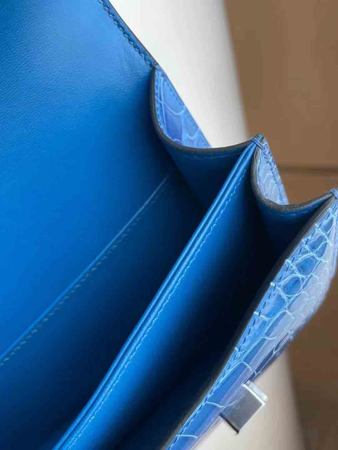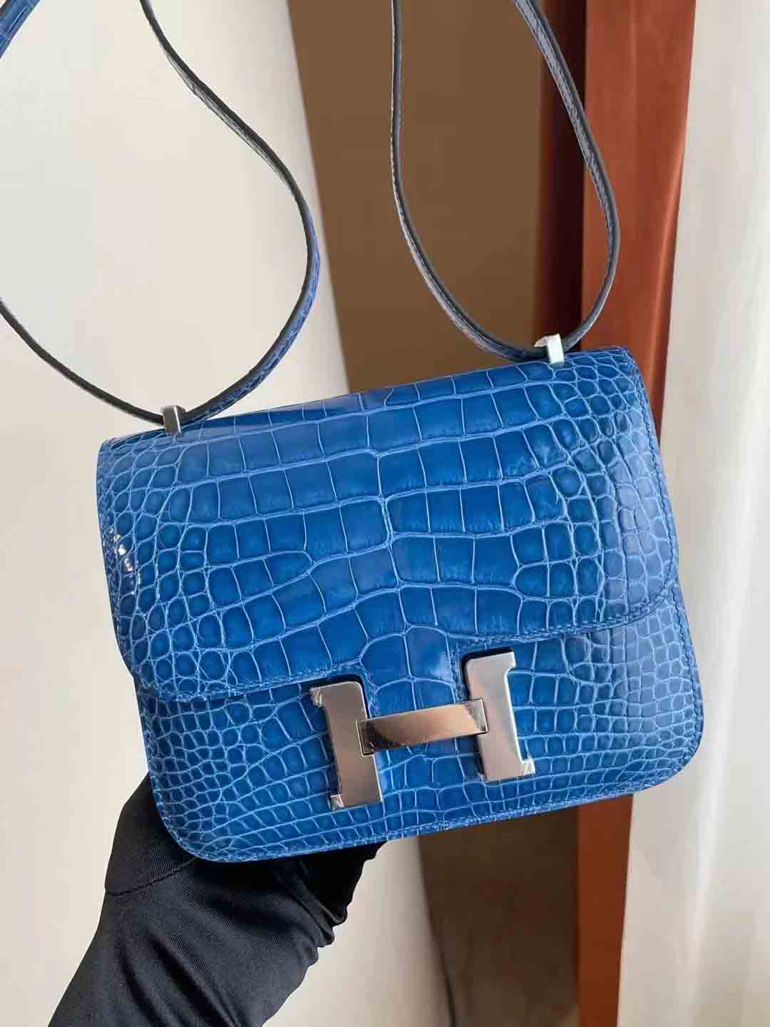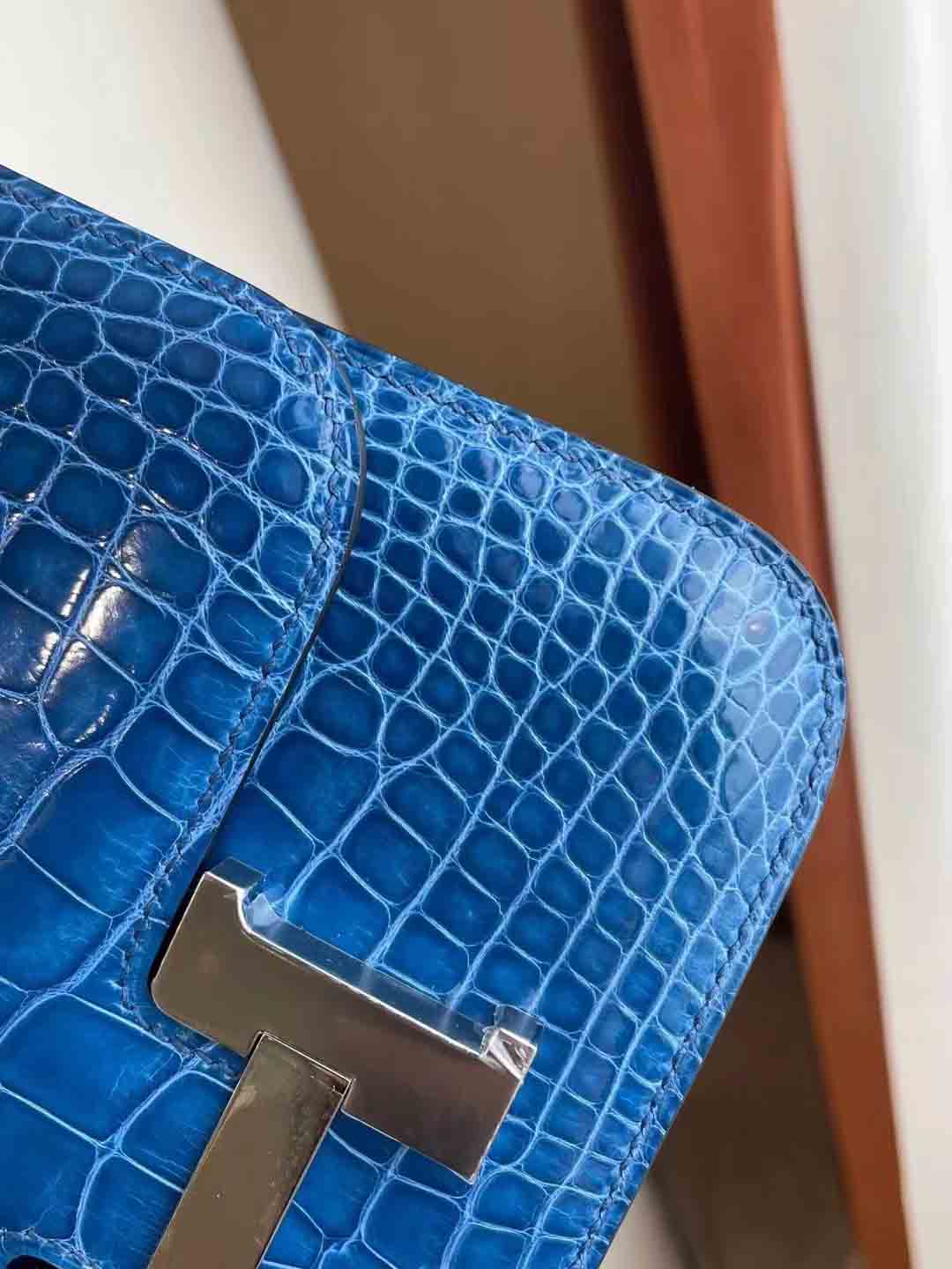 Constance 鳄鱼皮 7Q 希腊蓝 银扣 静谧的蓝色调,宁静的气质,大方简约中透着淡淡的优雅~你一定会爱不释手滴,高端私人定做厂家。