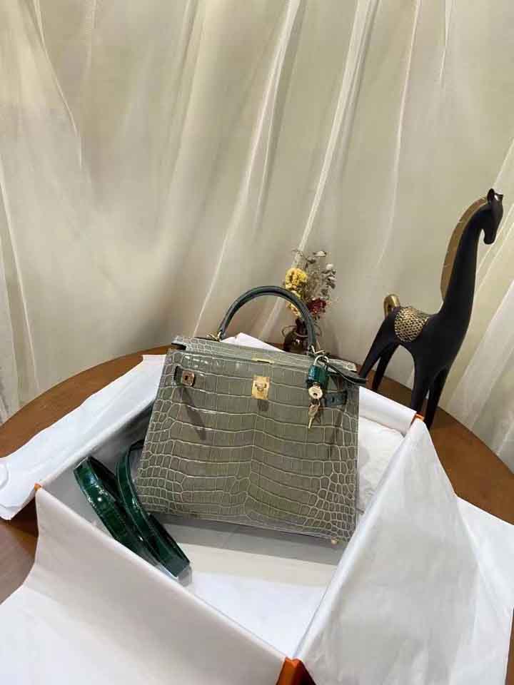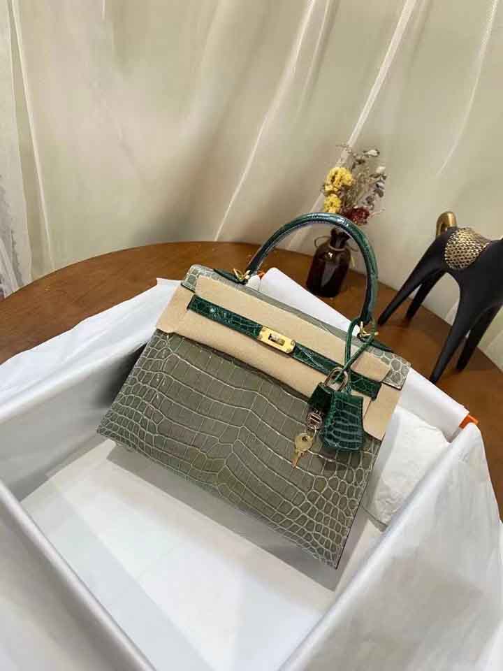 Kelly25斑鸠灰拼祖母绿 进口尼罗 全手工 极品