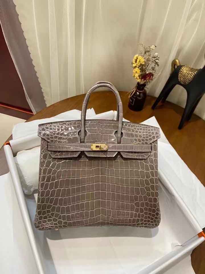极品!birkin25 进口亮面鳄鱼皮 大象灰有皮 定制