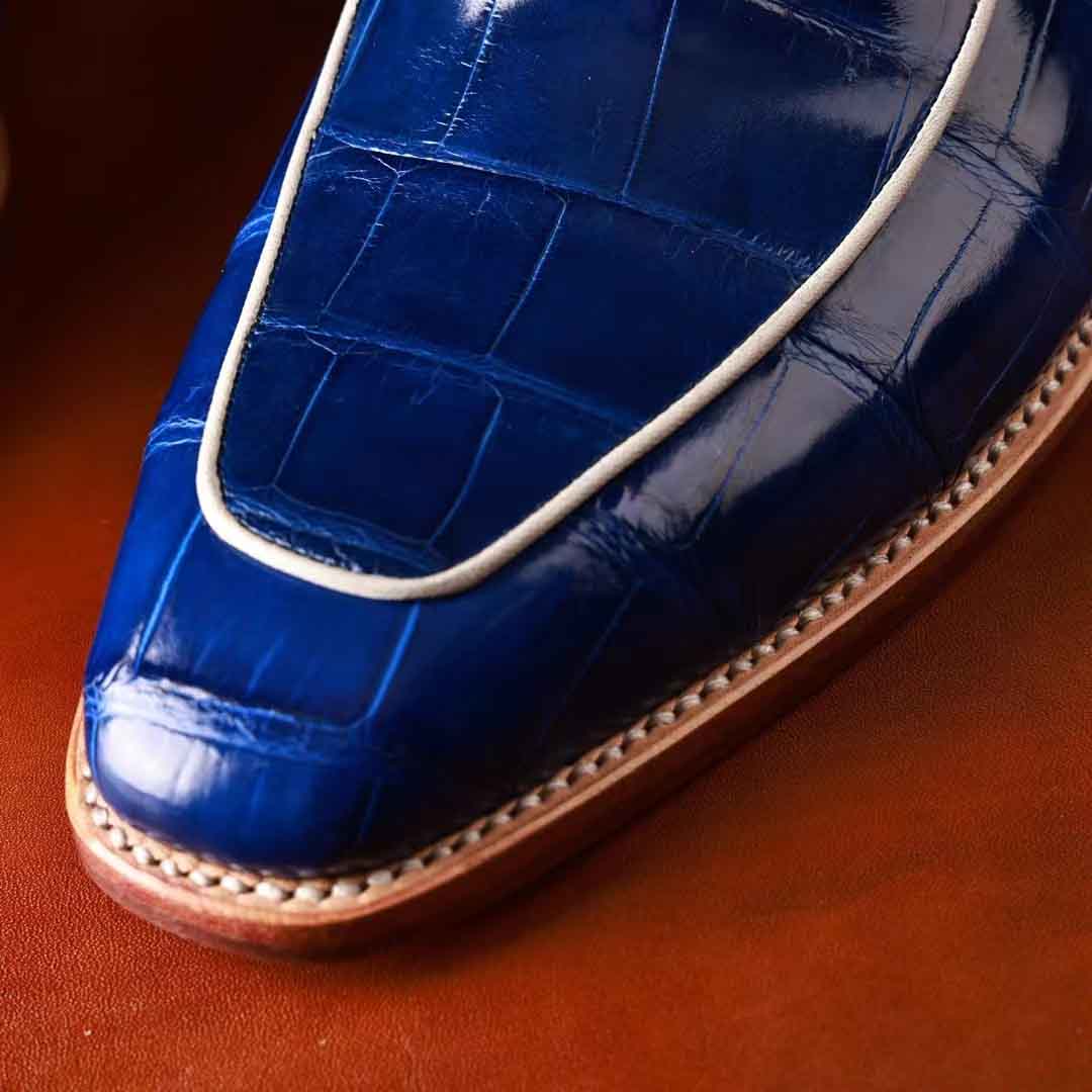 专业定制高档商务男士鳄鱼皮鞋!适用于普通皮革原料产生亮光效果。鳄鱼皮打磨在技术上非常小心!