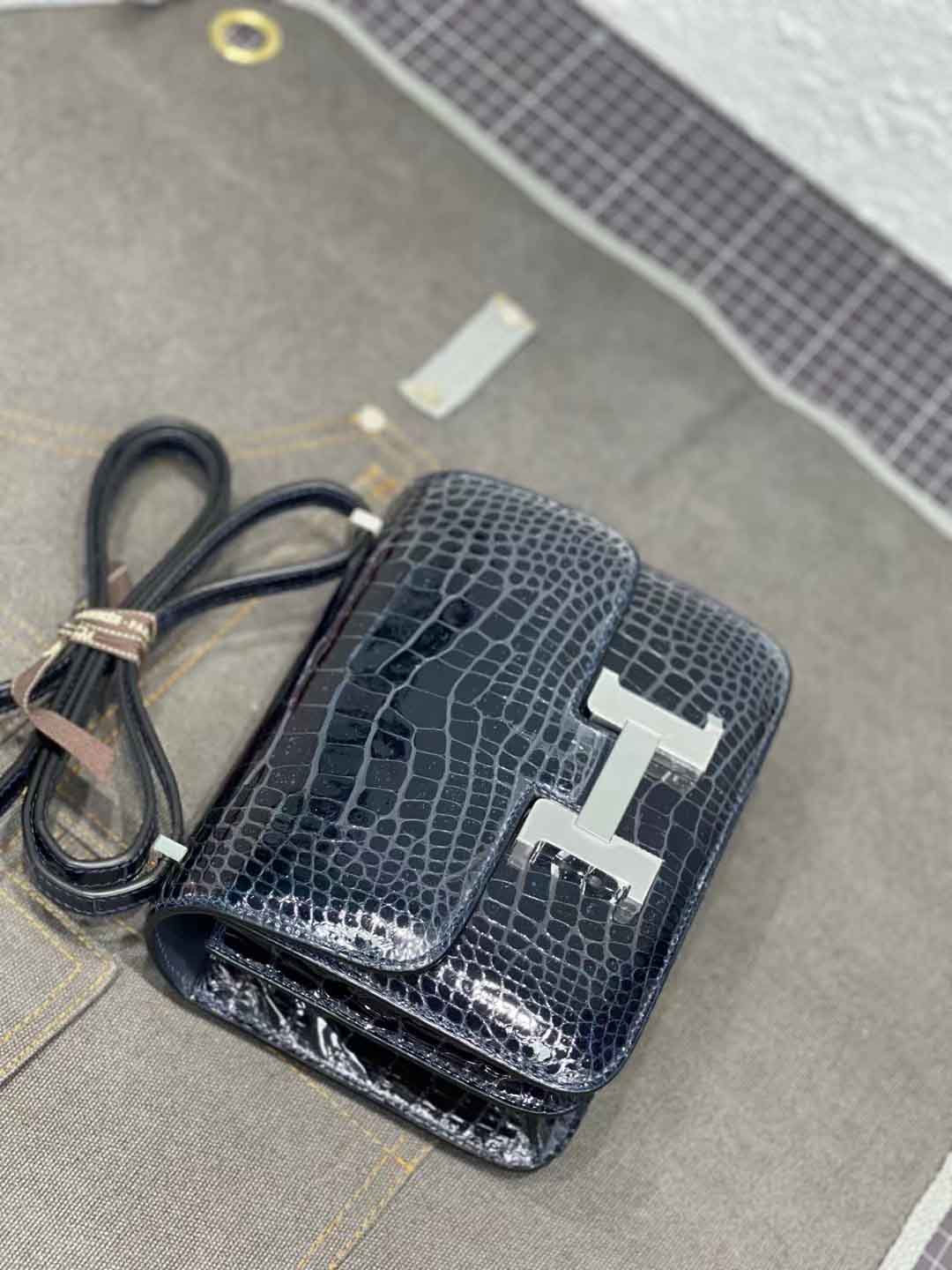 18cm午夜蓝鳄鱼皮女士私人订制,constance亮面鳄鱼皮女士私人订做工作室