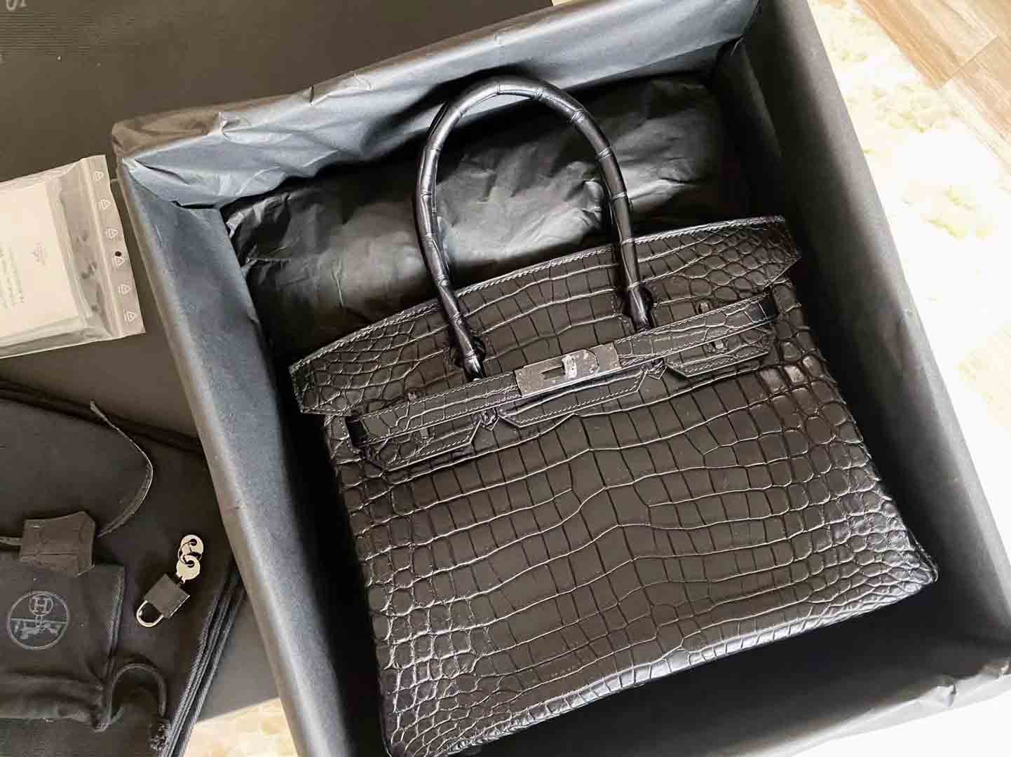 必不可少的经典款 亮面尼罗鳄铂金包。现货 黑色 crocodile 鳄鱼尼罗鳄 ~两点 亚亮面 黑金字 老工匠顶级工艺~纯手缝蜡线缝制
