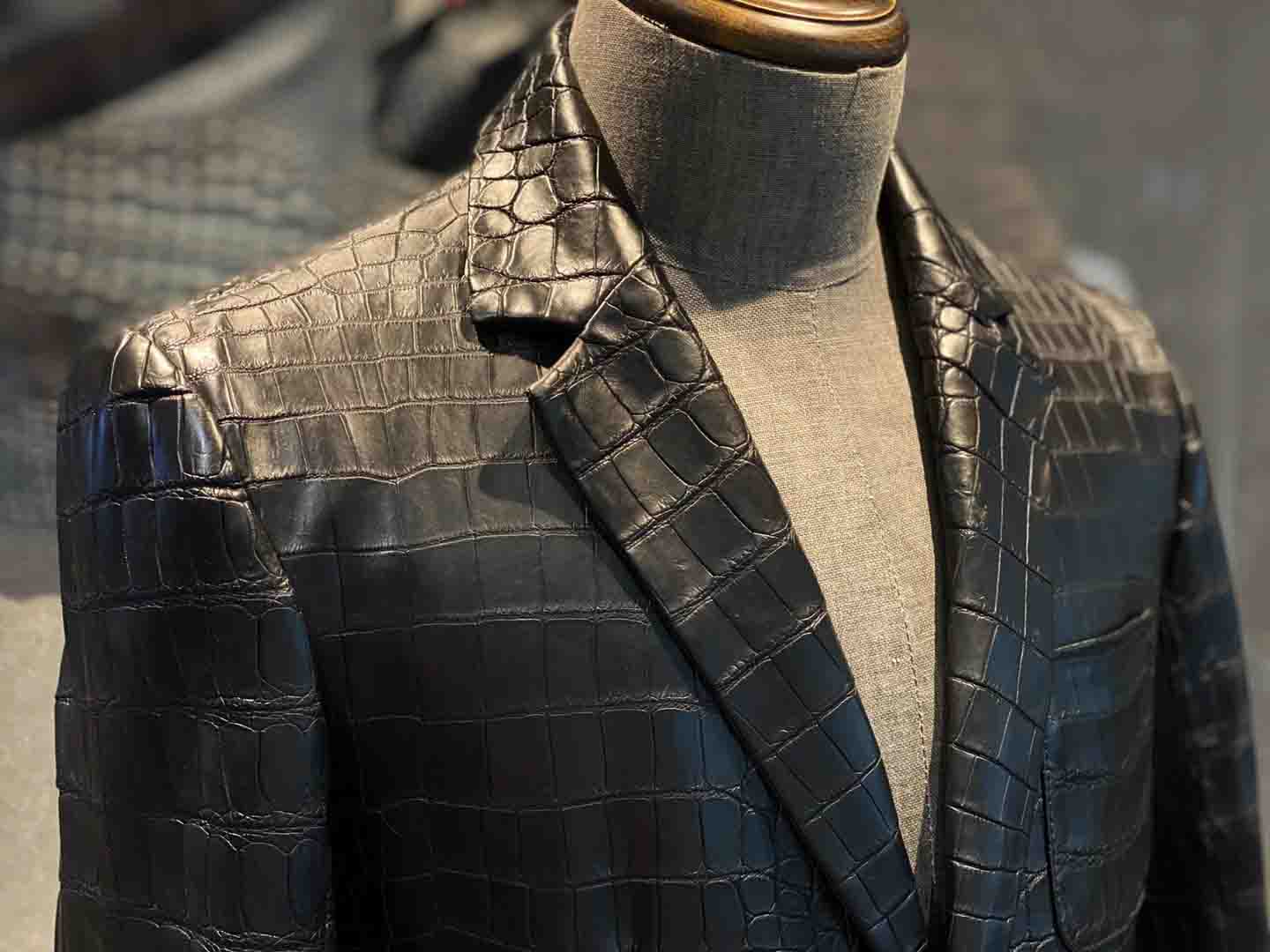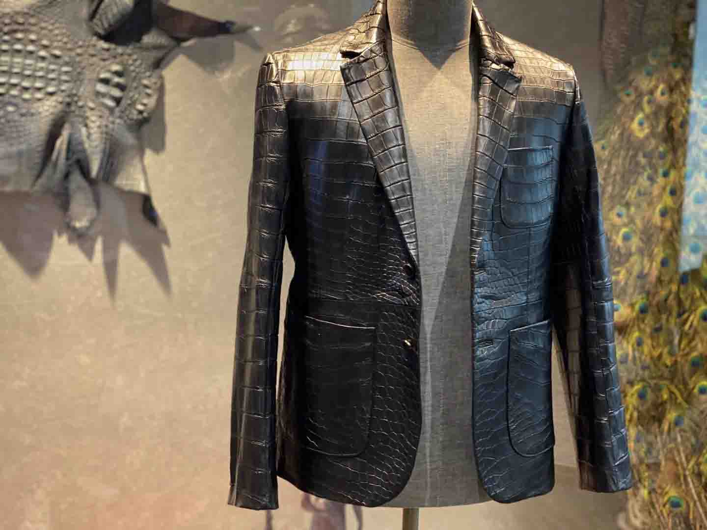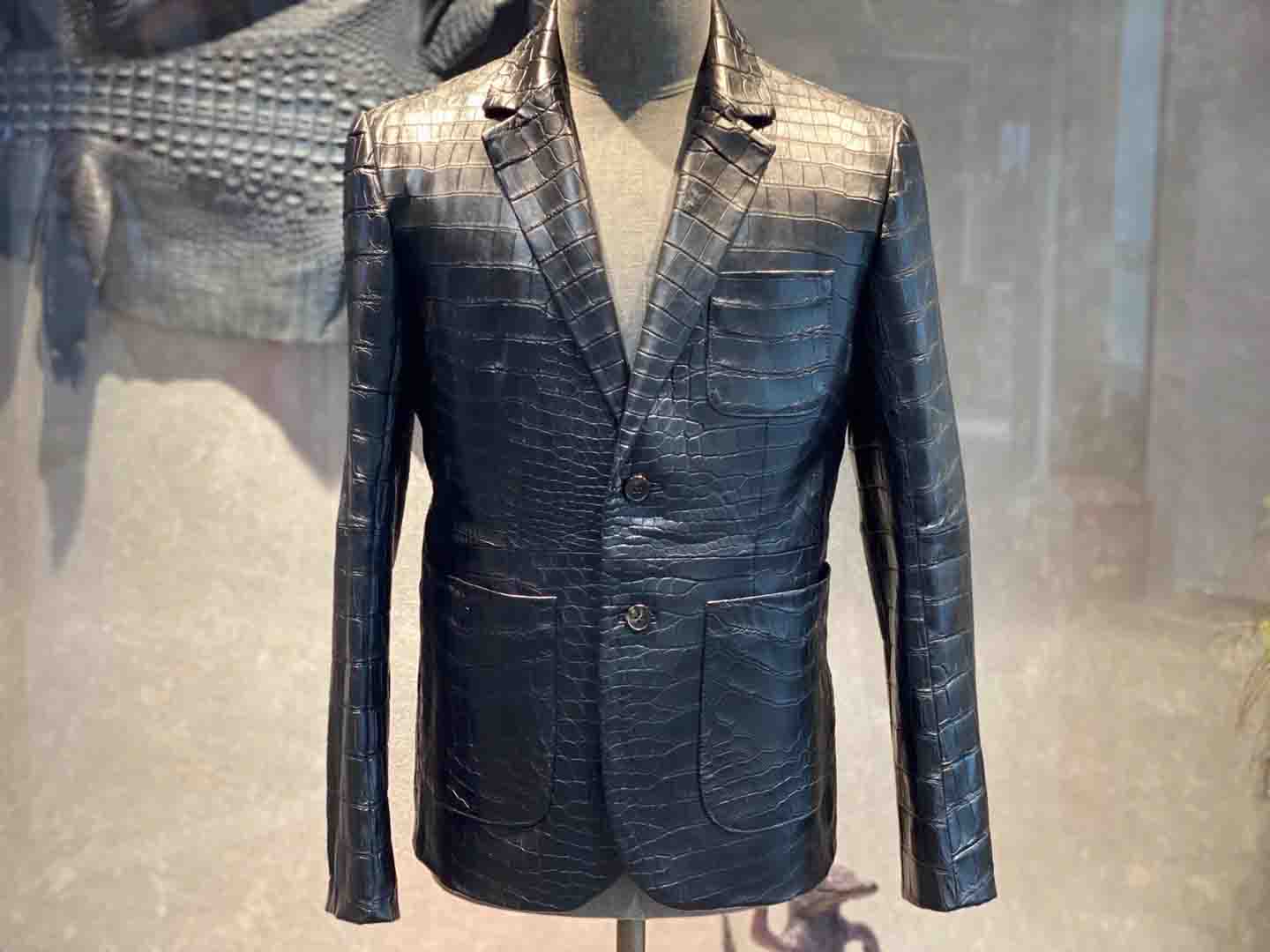 鳄鱼皮#休闲西服 2粒扣 现货50码 修身版,美洲鳄鱼皮西装衣定做联系微信 95506803