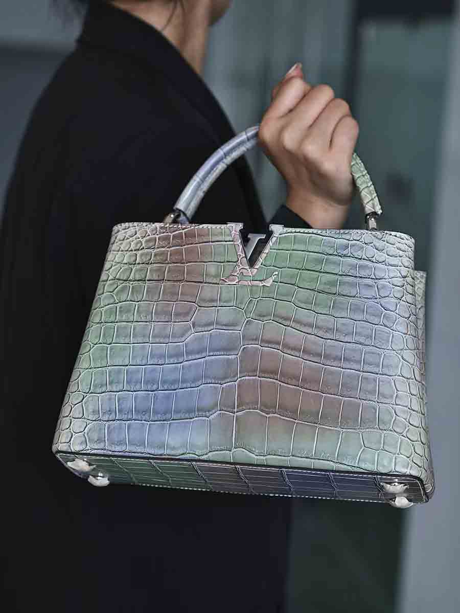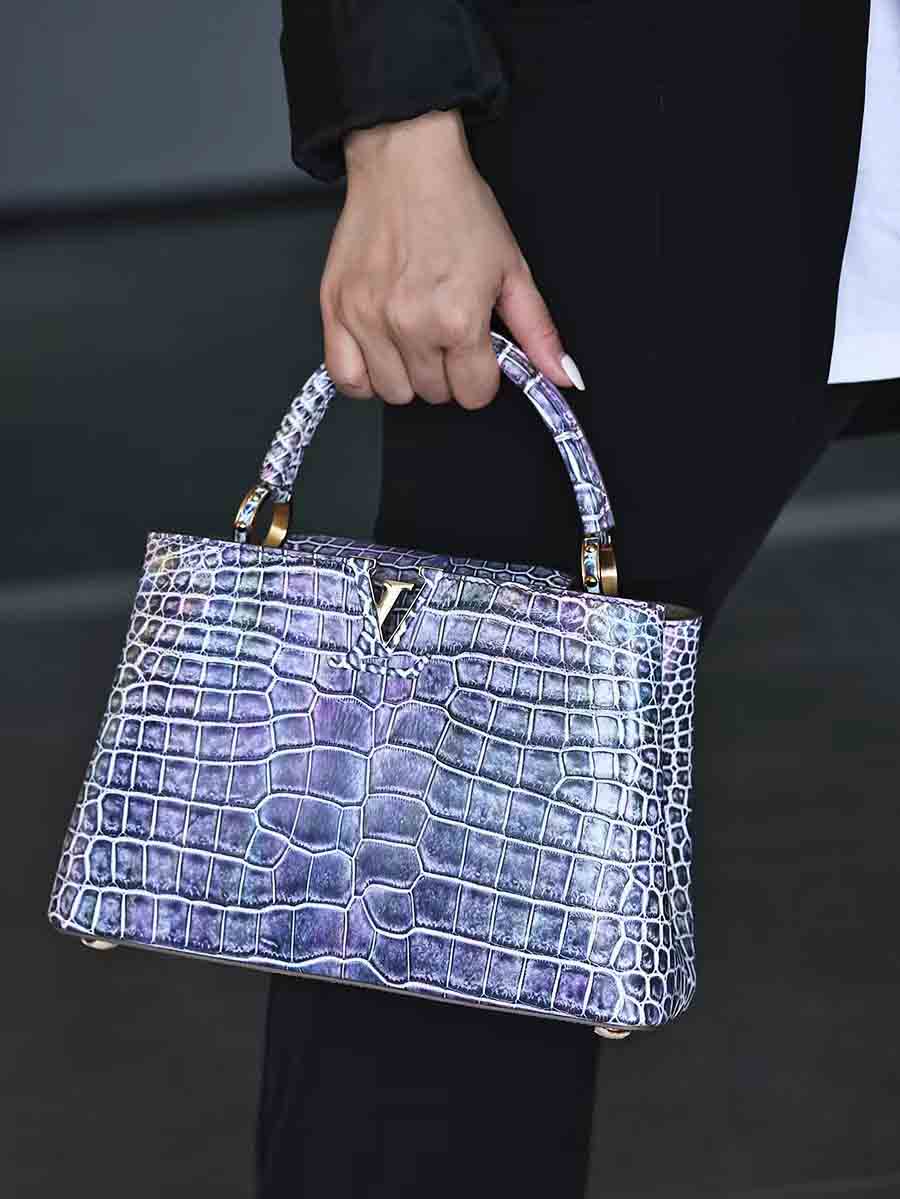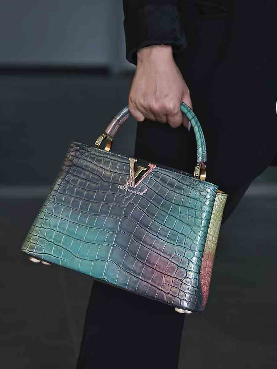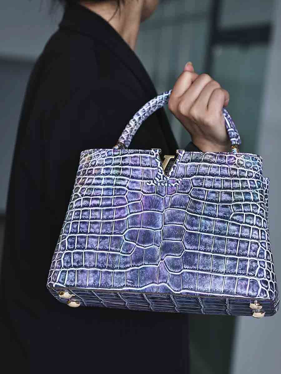 幻彩色湾鳄女手提包订做预约工厂 微信联系 95506803