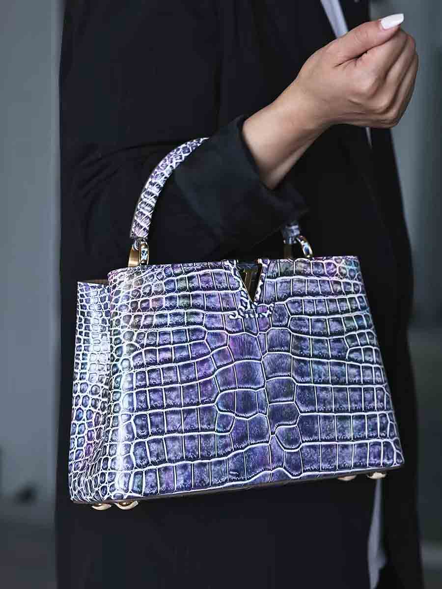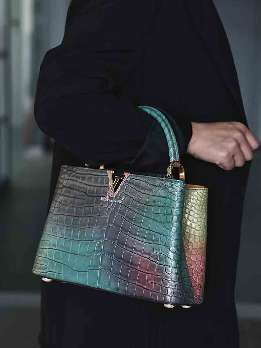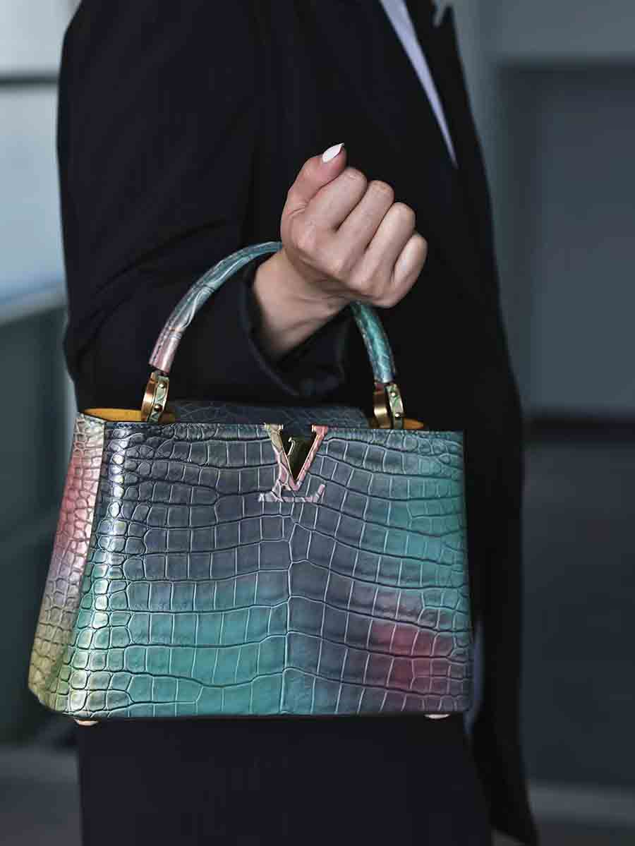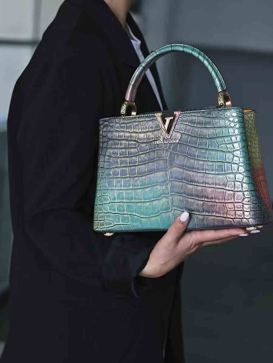 幻彩色湾鳄女手提包订做预约工厂 微信联系 95506803