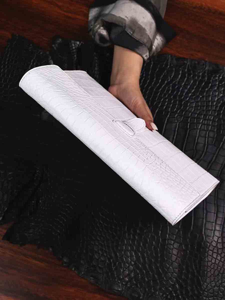 纯白色鳄鱼皮手包 大号夹包zilli同款