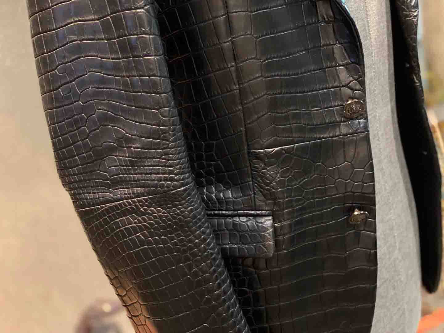 鳄鱼皮西服韩式#修身版,现货48码13条鳄鱼制作,高品休闲鳄鱼皮西装定制厂家微信联系 95506803