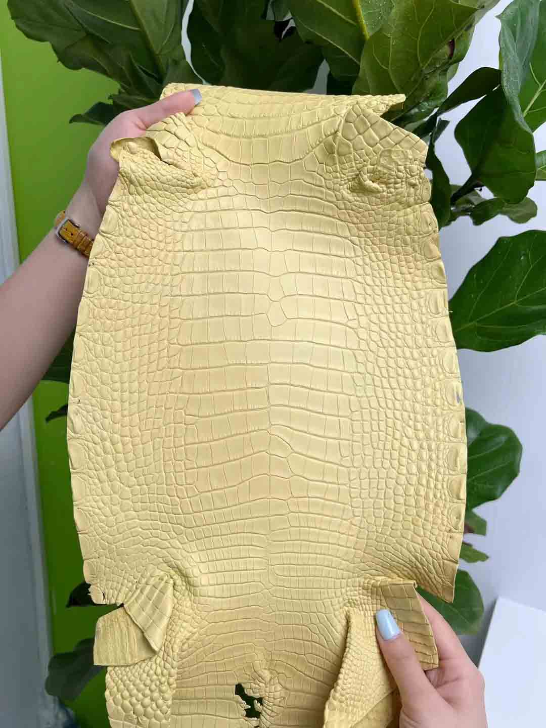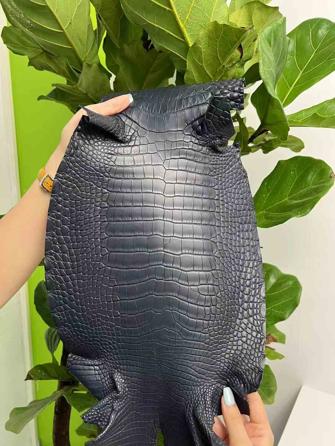 除了瑕疵少的皮胚难得,制皮工艺难度也非常大,鳄鱼皮的鞣制过程包括浸泡清洗、化学处理、再次清洗、双重漂白、酸浴处理、铬鞣制、切割厚度、二次鞣制、干燥、染色等。